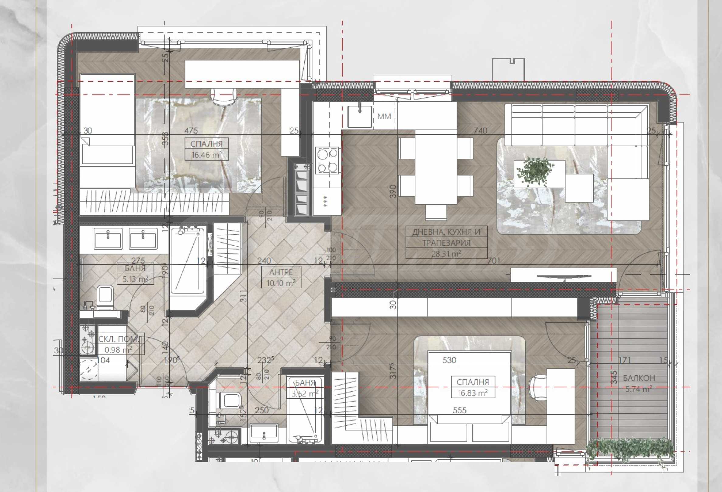 Jede Etage des Synerga Premium Complex bietet eine einzigartige Auswahl von sieben verschiedenen Wohnungen, alle nach Süden ausgerichtet und mit beeindruckendem Panoramablick auf das Witoschagebirge. Die Grundrisse sind auf den modernen Menschen zugeschnitten – funktionale Räume, optimale Flächen und natürliches Licht in jeder Wohnung. Hier gibt es keine Verschwendung, aber auch keine Kompromisse – jede Wohnung bietet Platz und Komfort.