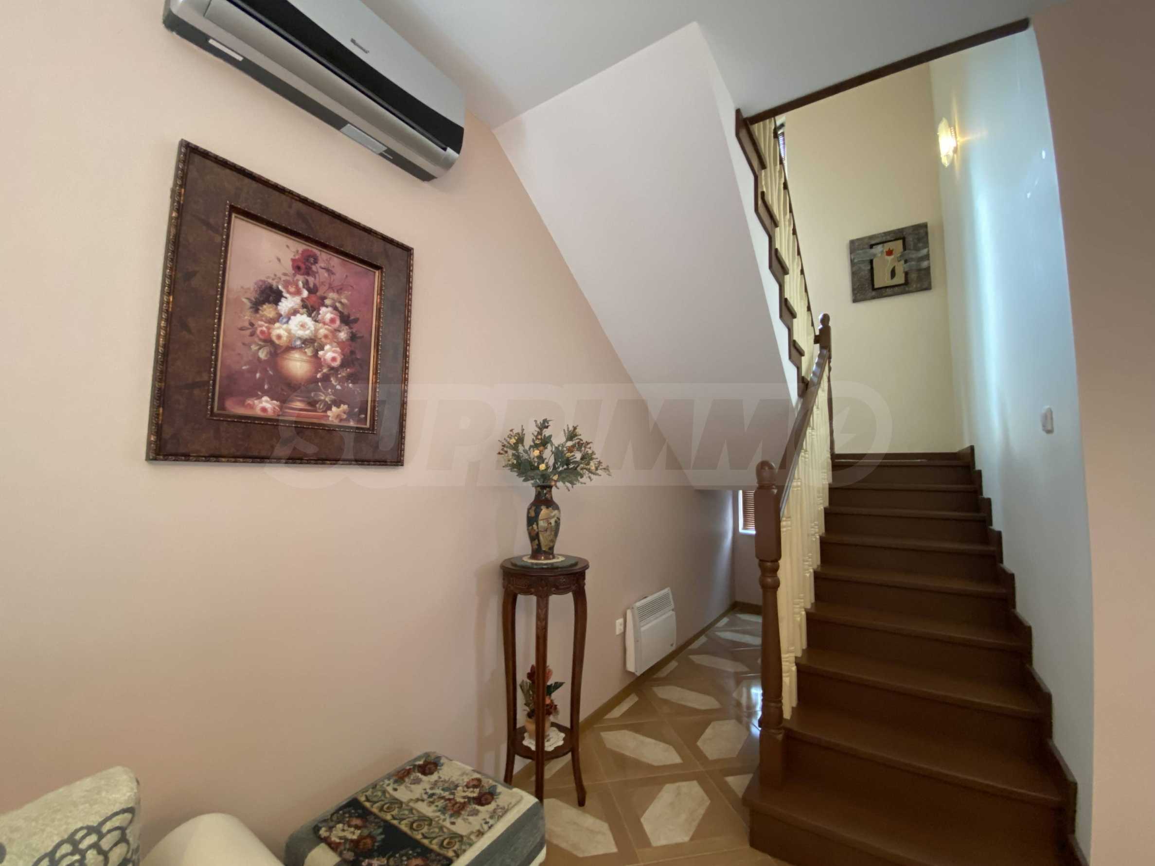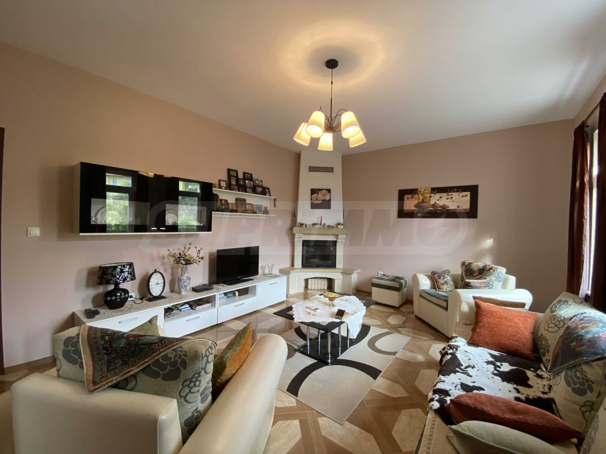 Das Haus ist geschmackvoll und wohnlich eingerichtet und ausgestattet, mit Einbaugeräten, einem Kamin im Wohnzimmer, der für Gemütlichkeit sorgt, sowie installierten Klimaanlagen für ganzjährigen Komfort.