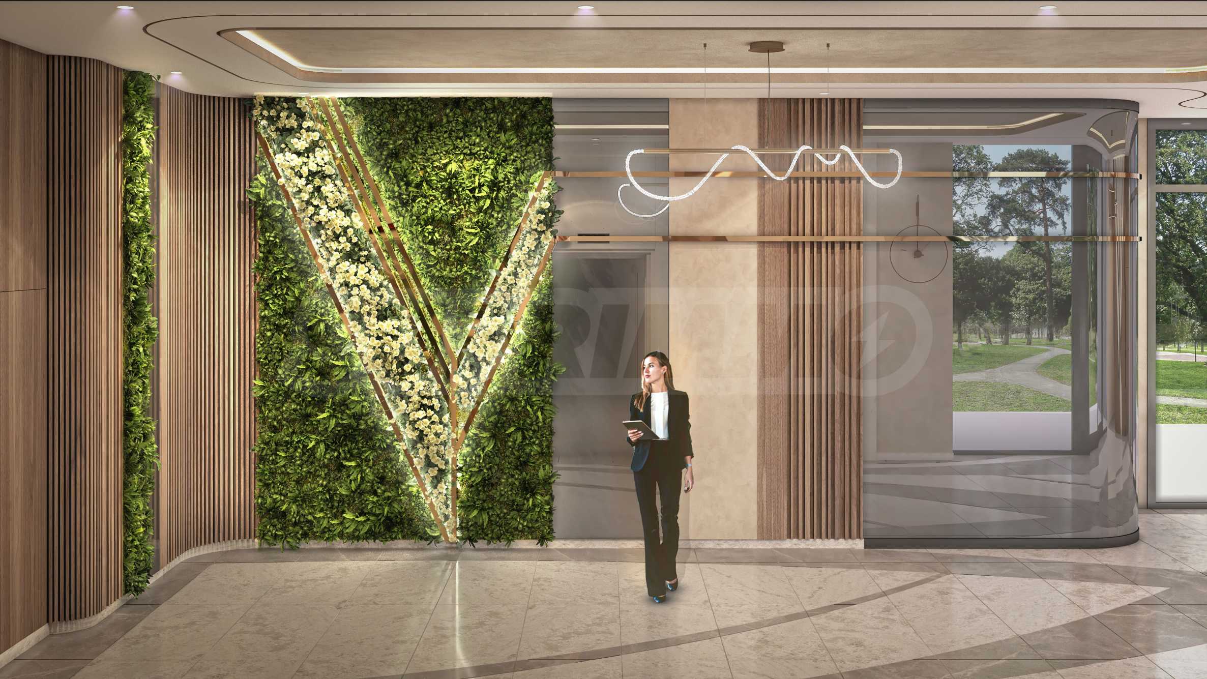 Synerga erwartet Sie mit geräumigen Lobbys und Fluren mit Granit- und Natursteinböden, die nach einem Innendesign gestaltet sind. Dekorative Beleuchtung betont die architektonischen Linien und sorgt bereits am Eingang für Eleganz. Für eine sichere, komfortable und stilvolle Fortbewegung in allen Bereichen des Gebäudes sorgen drei schnelle, geräuscharme und zuverlässige Aufzüge, die alle Ebenen schnell und bequem erreichen.