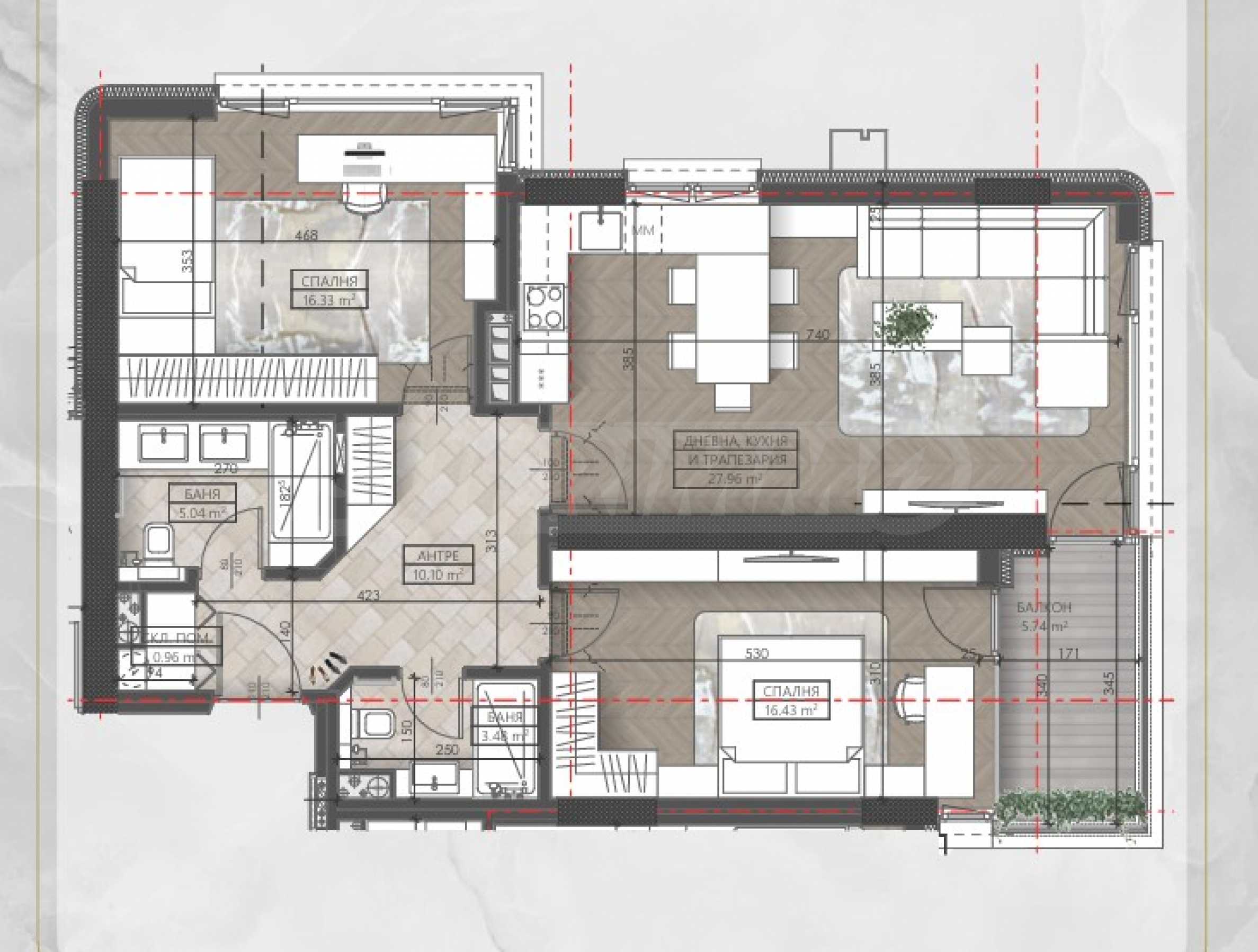 Wir präsentieren eine Zwei-Zimmer-Wohnung im Synerga Premium Complex, einem Projekt, das den Rhythmus der dynamischen Stadt mit der Gemütlichkeit grüner Flächen verbindet. Im Herzen des Stadtteils „Mladost“ und nur wenige Schritte von der U-Bahn-Station „Alexander Malinov“ entfernt, direkt neben einem malerischen Park gelegen, bietet der Komplex Ruhe und Frieden sowie eine Balance zwischen Stadtleben und Nähe zur Natur – ein seltenes Privileg im modernen Sofia.