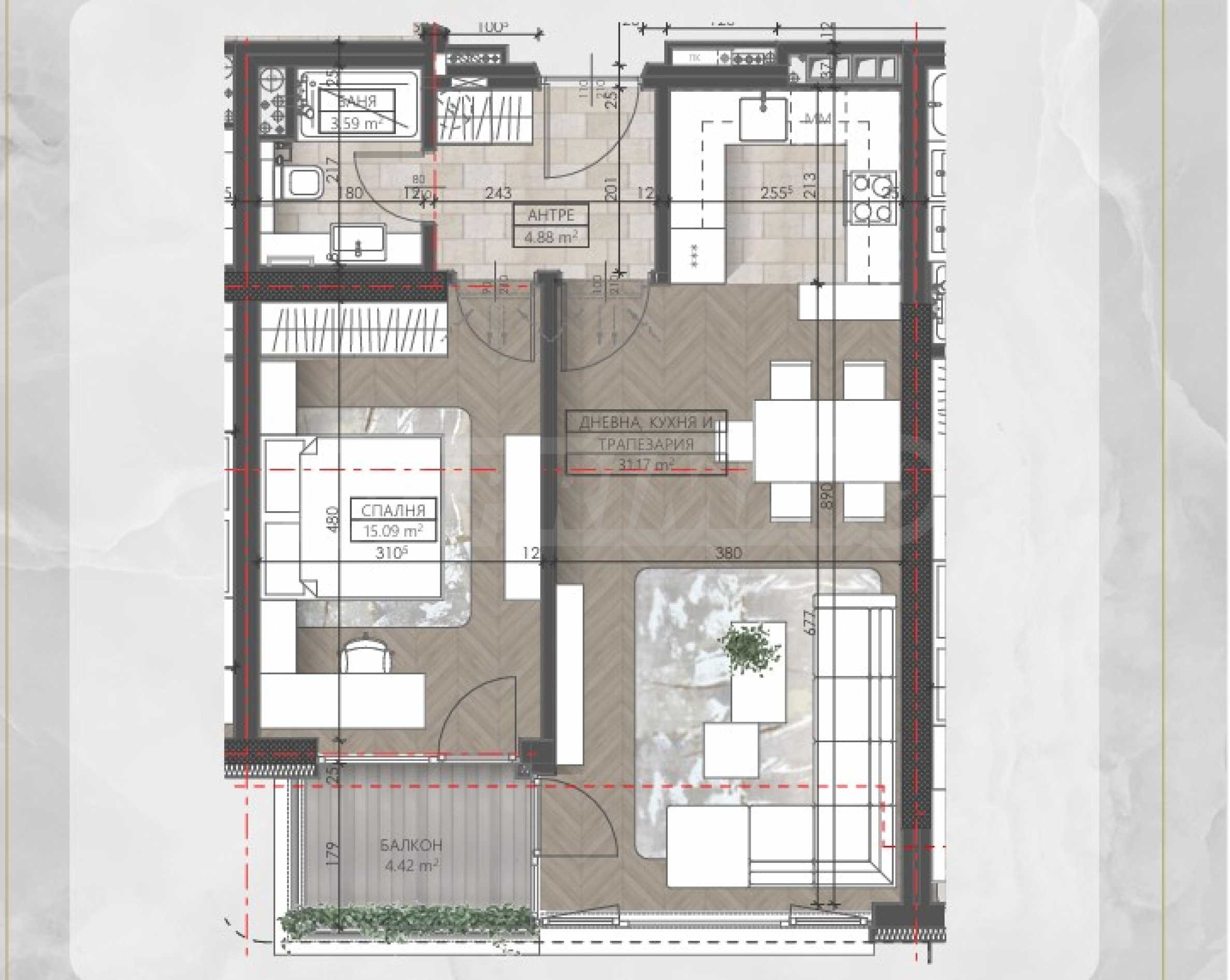 Wir präsentieren Ihnen ein Ein-Zimmer-Apartment im Synerga Premium Komplex, einem Projekt, das den Rhythmus der dynamischen Stadt mit der Ruhe grüner Oasen verbindet. Im Herzen des Stadtteils „Mladost“ und nur wenige Schritte von der Metrostation „Alexander Malinov“ entfernt, direkt neben einem malerischen Park gelegen, bietet der Komplex Ruhe und Erholung – ein seltenes Privileg im modernen Sofia.
