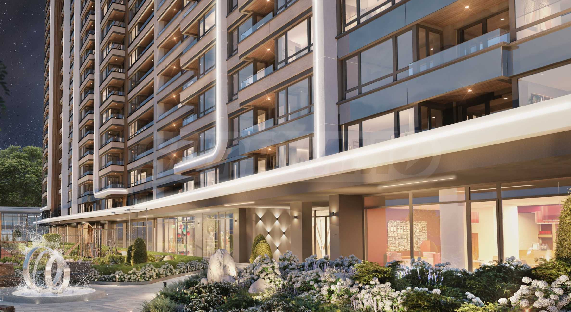 Synerga Premium Complex – ein Wohnraum, inspiriert von Natur und Stadt. Der Komplex bietet eine eigene, üppig gestaltete Parkanlage mit Spazierwegen, ruhigen Ecken zum Entspannen und Bereichen für gemeinsame Familienzeit in der Natur. Diese Grünfläche schafft Ruhe und Sicherheit und macht das Zuhause so zu einem Ort der Harmonie mit der Natur.