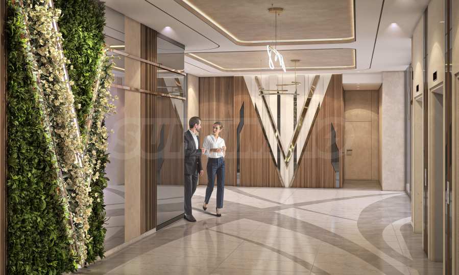Synerga erwartet Sie mit geräumigen Lobbys und Fluren mit Granit- und Natursteinböden, die nach einem Innendesign gestaltet sind. Dekorative Beleuchtung betont die architektonischen Linien und sorgt bereits am Eingang für Eleganz. Für eine sichere, komfortable und stilvolle Fortbewegung in allen Bereichen des Gebäudes sorgen drei schnelle, geräuscharme und zuverlässige Aufzüge, die alle Ebenen schnell und bequem erreichen.