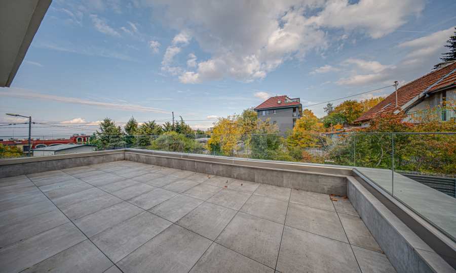 • Große Terrasse ~ 60 m², mit Stromanschluss, mit der Möglichkeit zur Umwandlung in einen Wintergarten;