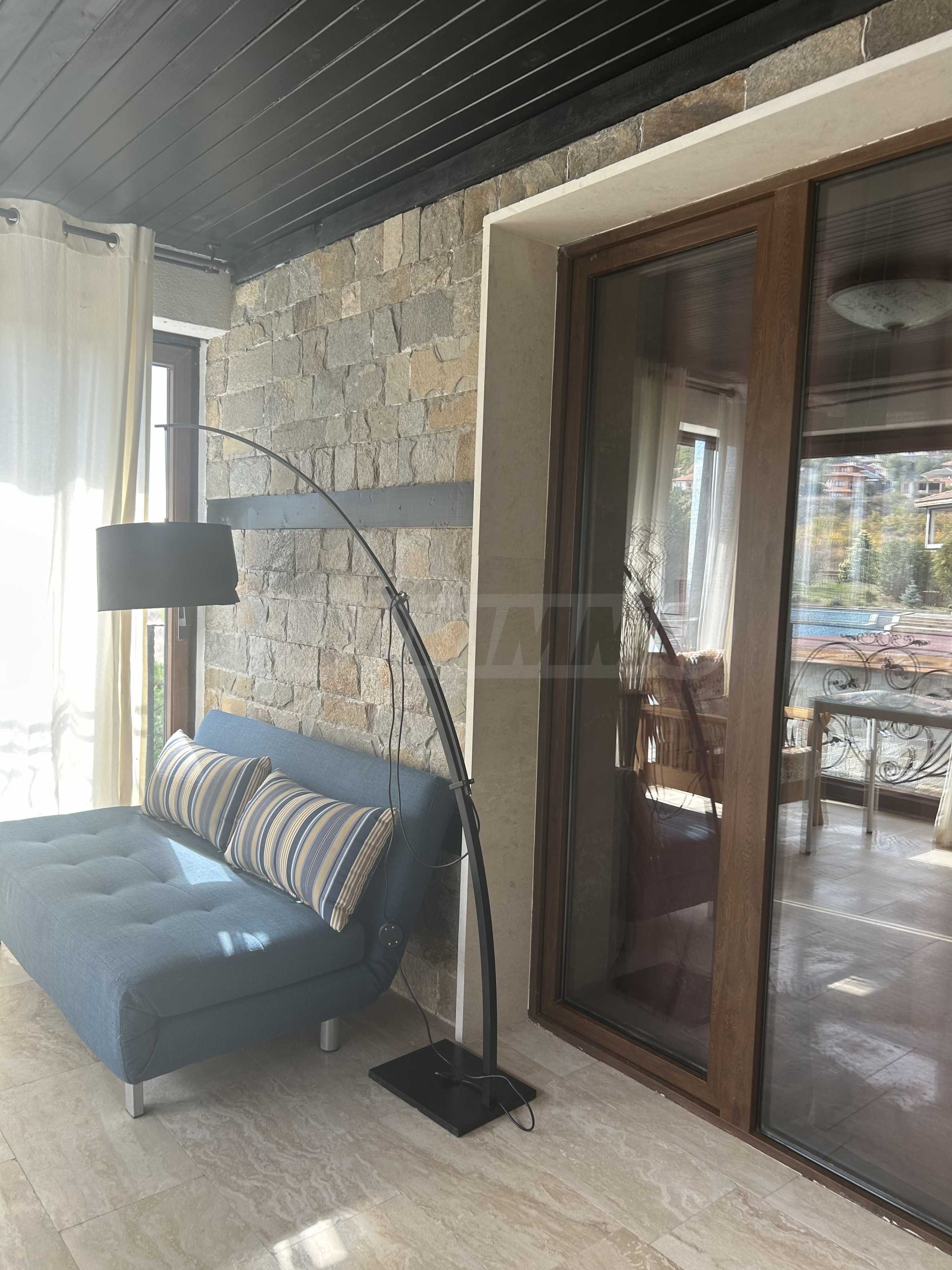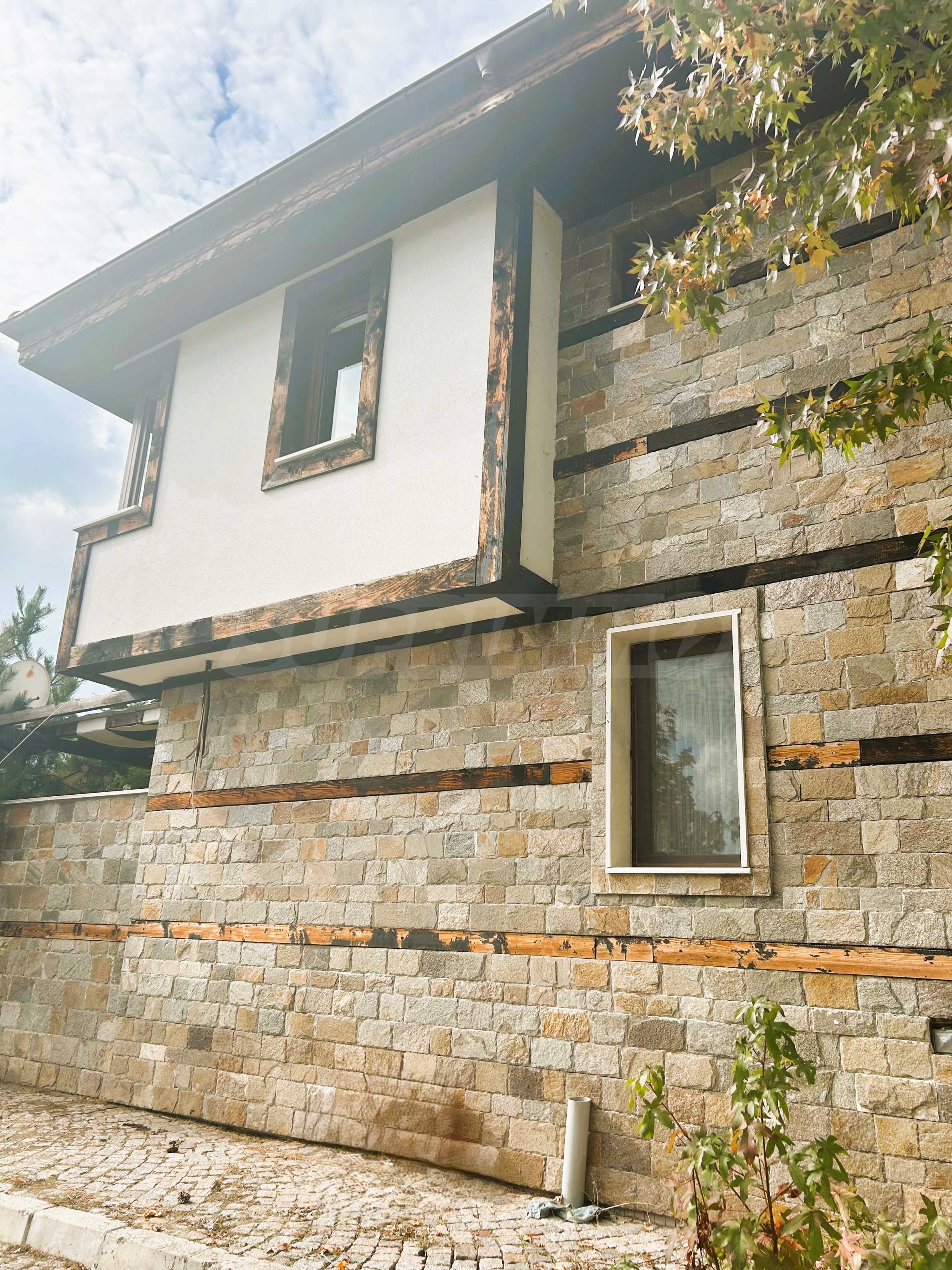Wir präsentieren zum Verkauf ein zweistöckiges Haus im bulgarischen Renaissancestil aus Stein und Holz in einem geschlossenen Villenkomplex im Villenviertel Kosharitsa. Das Haus liegt im Grünen einer ökologisch sauberen Gegend, neben den Hügeln des Balkangebirges, 10 Autominuten von den Stränden von Sonnenstrand entfernt.