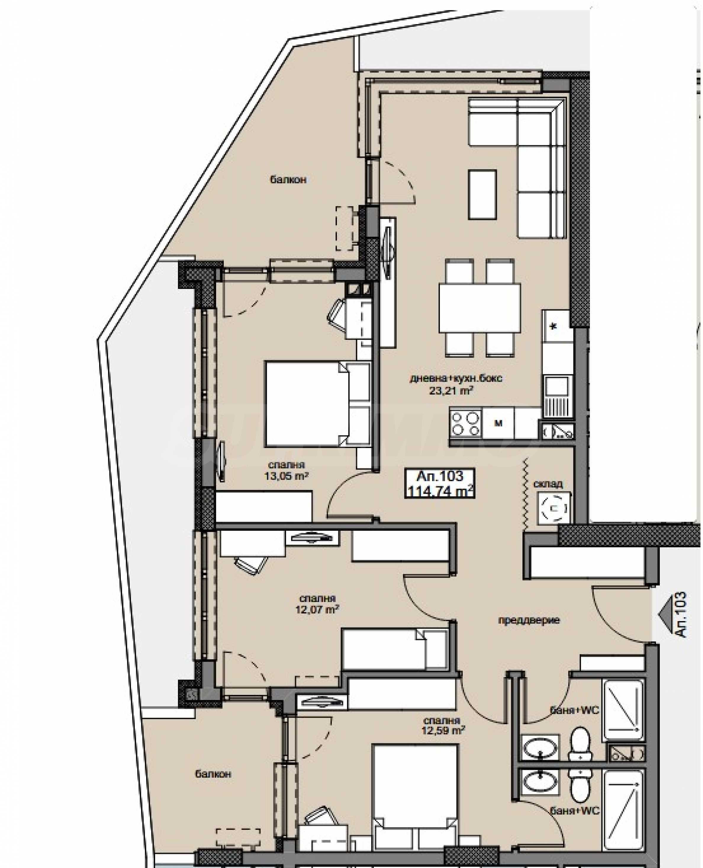 Die Wohnung wird in einem Zustand vermietet, der den bulgarischen Baunormen entspricht, mit Putz und Estrich, hochwertige Bauausführung. Auf Kundenwunsch besteht die Möglichkeit, Abschlussarbeiten durchzuführen.