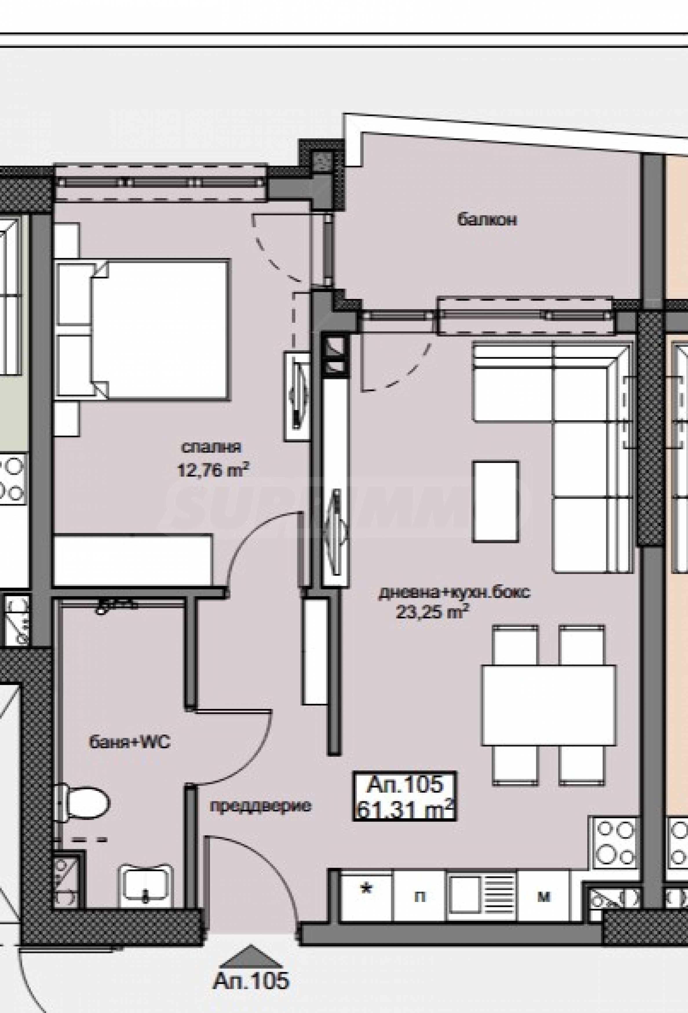 Die Wohnung wird in einem Zustand vermietet, der den bulgarischen Baunormen entspricht, mit Putz und Estrich, hochwertige Bauausführung. Auf Kundenwunsch besteht die Möglichkeit, Abschlussarbeiten durchzuführen.