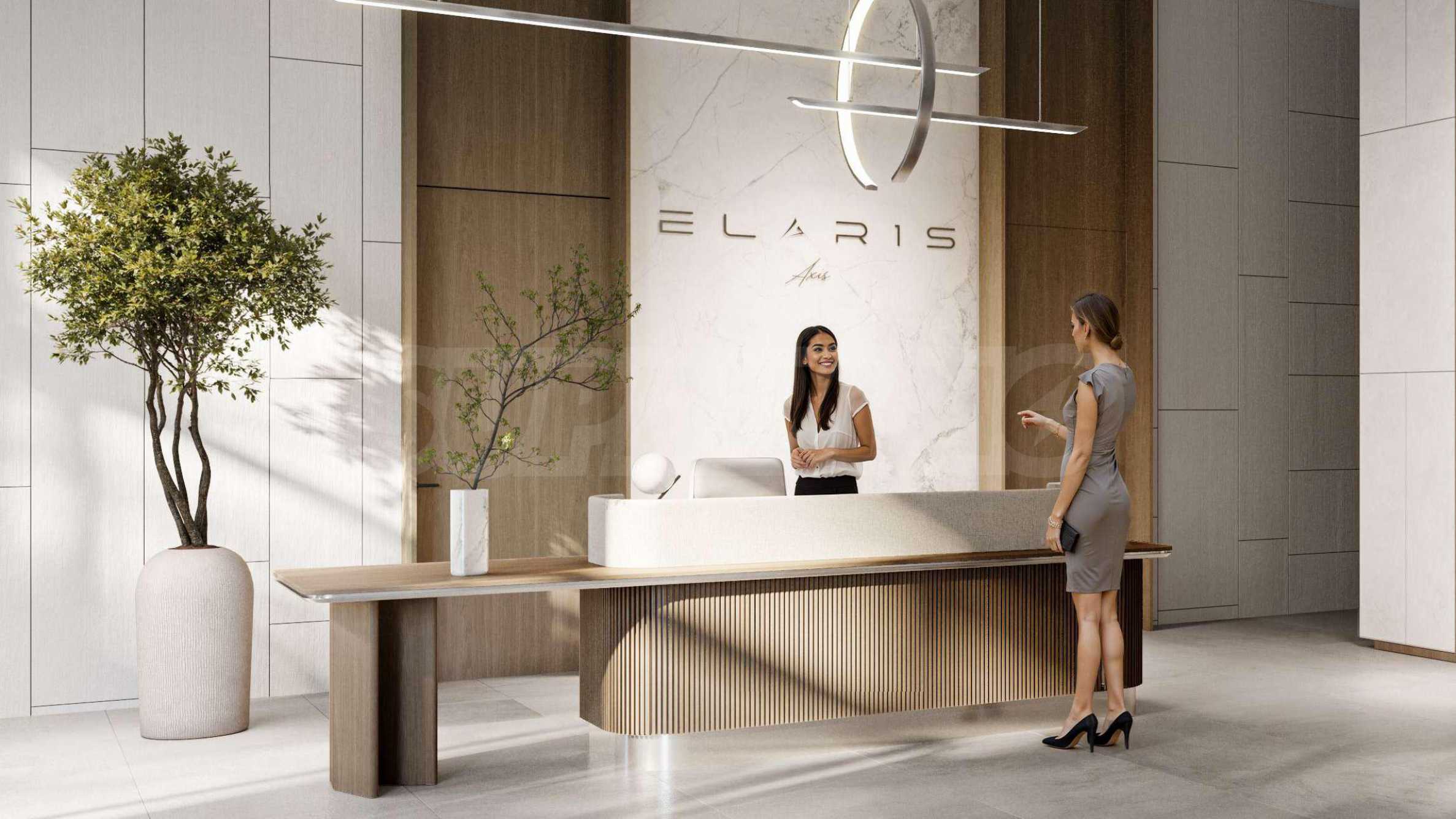Das 24-stöckige Gebäude besticht durch architektonische Präzision und klare Linien und setzt damit einen markanten Akzent in der Skyline von Dubai. Die Fassade zeugt von Liebe zum Detail – von den klaren geometrischen Formen bis hin zu den modernen Materialien, die das Licht reflektieren und ein Gefühl von Leichtigkeit und Harmonie vermitteln. Das Konzept vereint Nachhaltigkeit und Eleganz und macht ELAR1S Axis zu einem Symbol zeitgenössischer Architektur.
