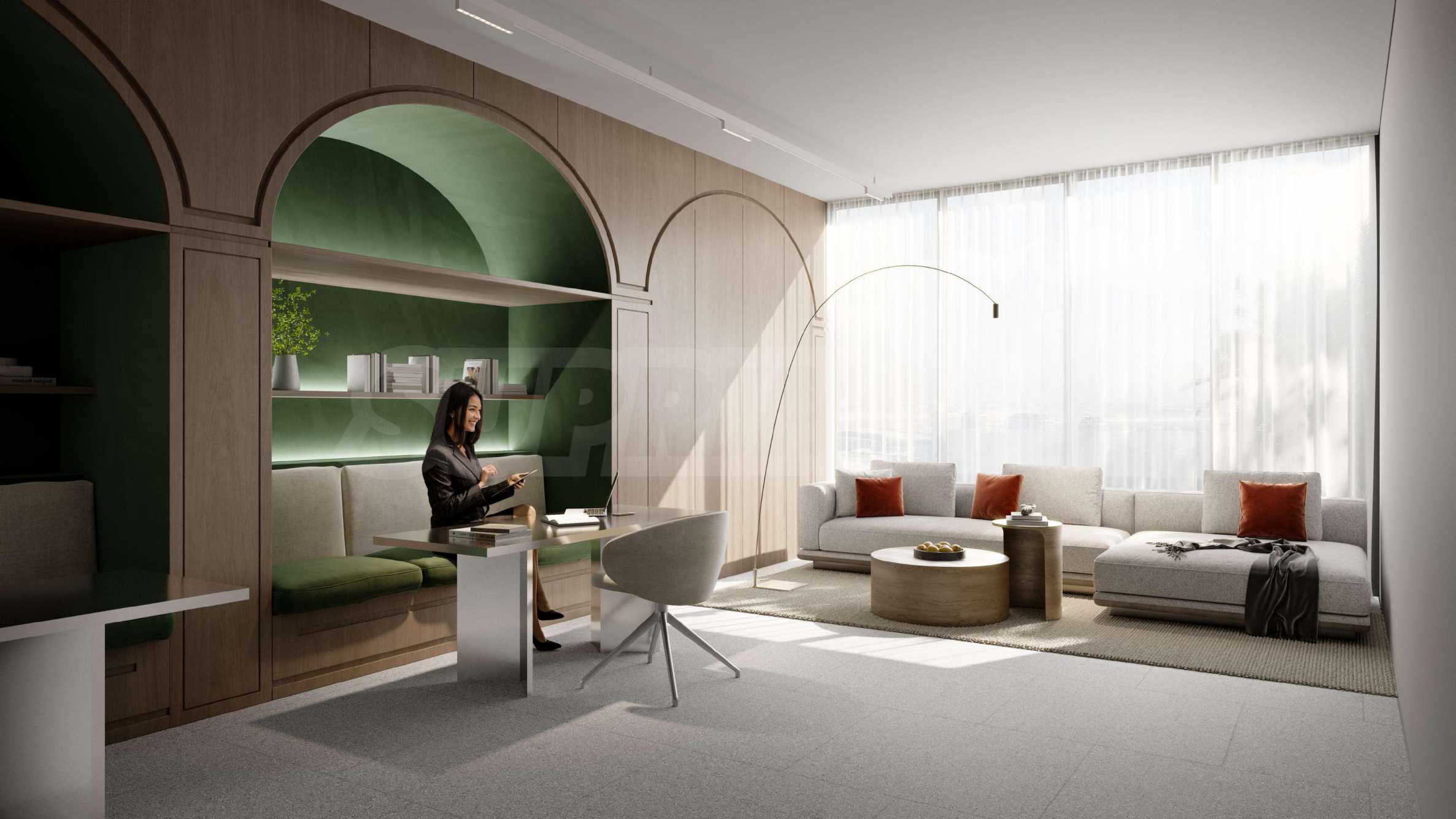 Die Vision der Architekten geht weit über das herkömmliche Wohnkonzept hinaus – es ist ein Ort, an dem Komfort, Bewegung und Geselligkeit harmonisch ineinanderfließen. Die Bewohner genießen einen Swimmingpool mit Panoramablick, ein separates Kinderbecken und einen modernen Spielplatz. Für alle, die einen aktiven Lebensstil lieben, gibt es Indoor- und Outdoor-Fitnessstudios, und für alle, die es gemütlich mögen, einen einzigartigen Grillplatz auf der Dachterrasse mit atemberaubendem Blick über die Stadt. Auch Büroräume wurden eingerichtet, in denen die zukünftigen Bewohner an der frischen Luft und in Gesellschaft ihrer Nachbarn arbeiten können. Der elegante Lounge-Bereich bietet Platz für Treffen mit Nachbarn oder für private Veranstaltungen in stilvollem Ambiente.