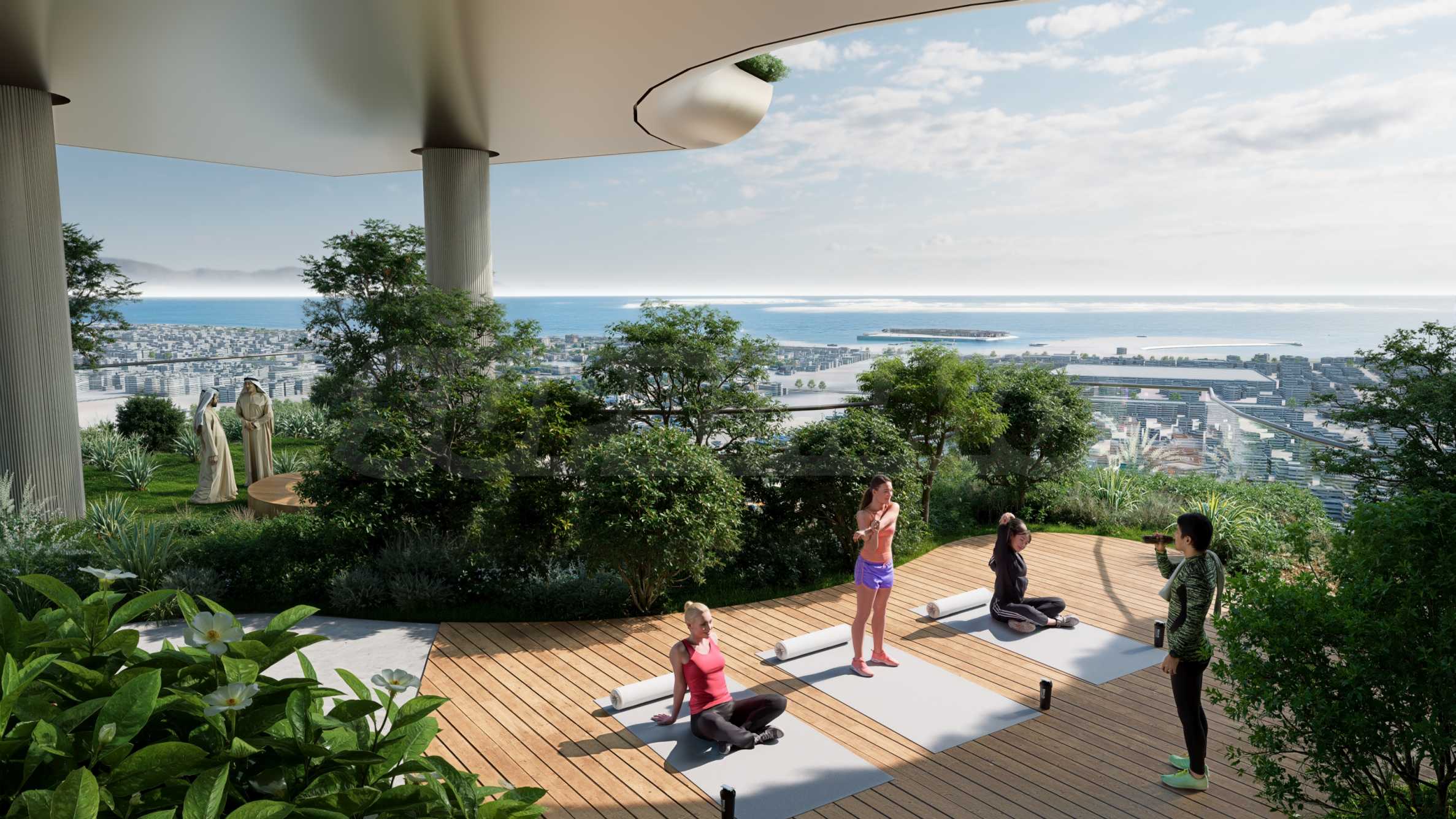 Dieser Bereich inspiriert zu Bewegung und Vitalität – ein voll ausgestattetes Fitnessstudio, Calisthenics-Anlagen, Laufstrecken, Yoga- und Parkour-Bereiche – alles, was Sie für ein Gleichgewicht zwischen Kraft und Harmonie benötigen.