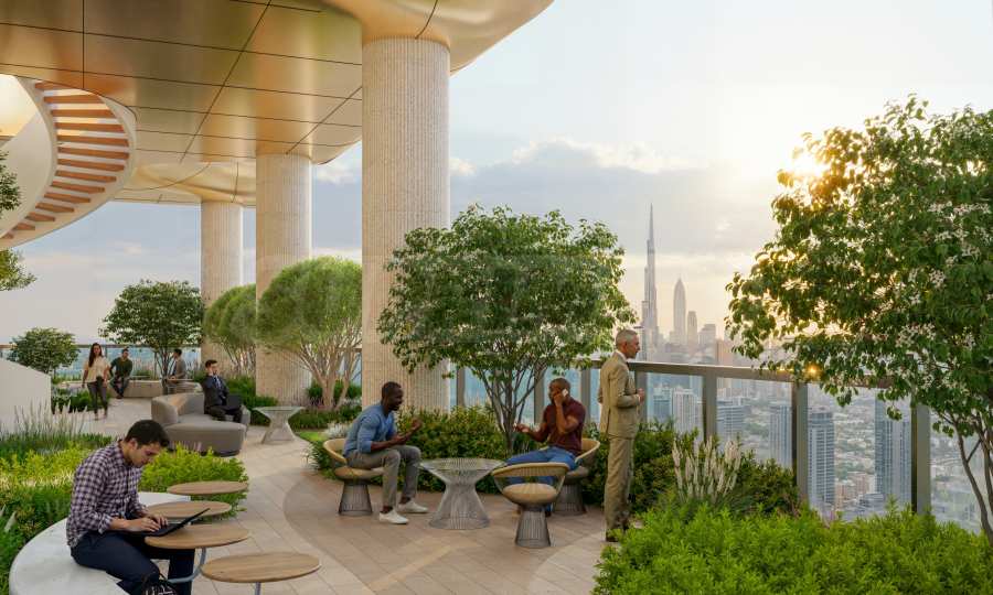 Sobha SkyParks ist mehr als nur ein Gebäude – es ist eine neue Dimension von Luxus und urbanem Leben. Mit seinen 450 Metern Höhe zählt es zu den höchsten und beeindruckendsten Wolkenkratzern Dubais. Vom Boden aus ist die Spitze kaum sichtbar, doch von den obersten Etagen eröffnet sich ein atemberaubendes Panorama – die Stadt liegt Ihnen zu Füßen, und der Himmel ist Ihr ständiger Begleiter.