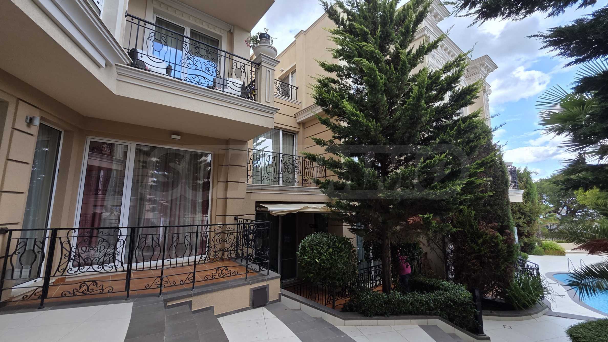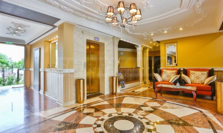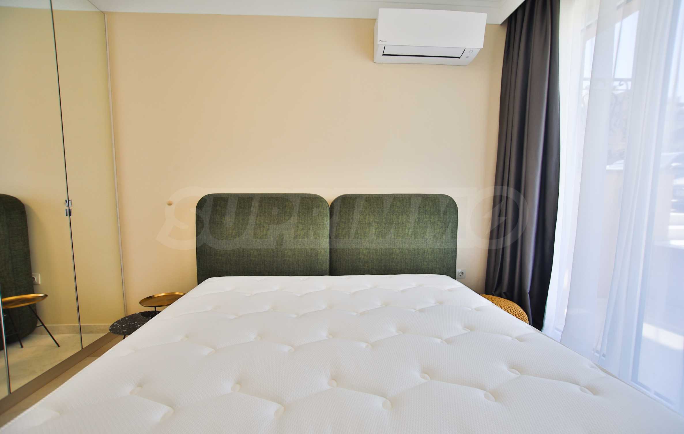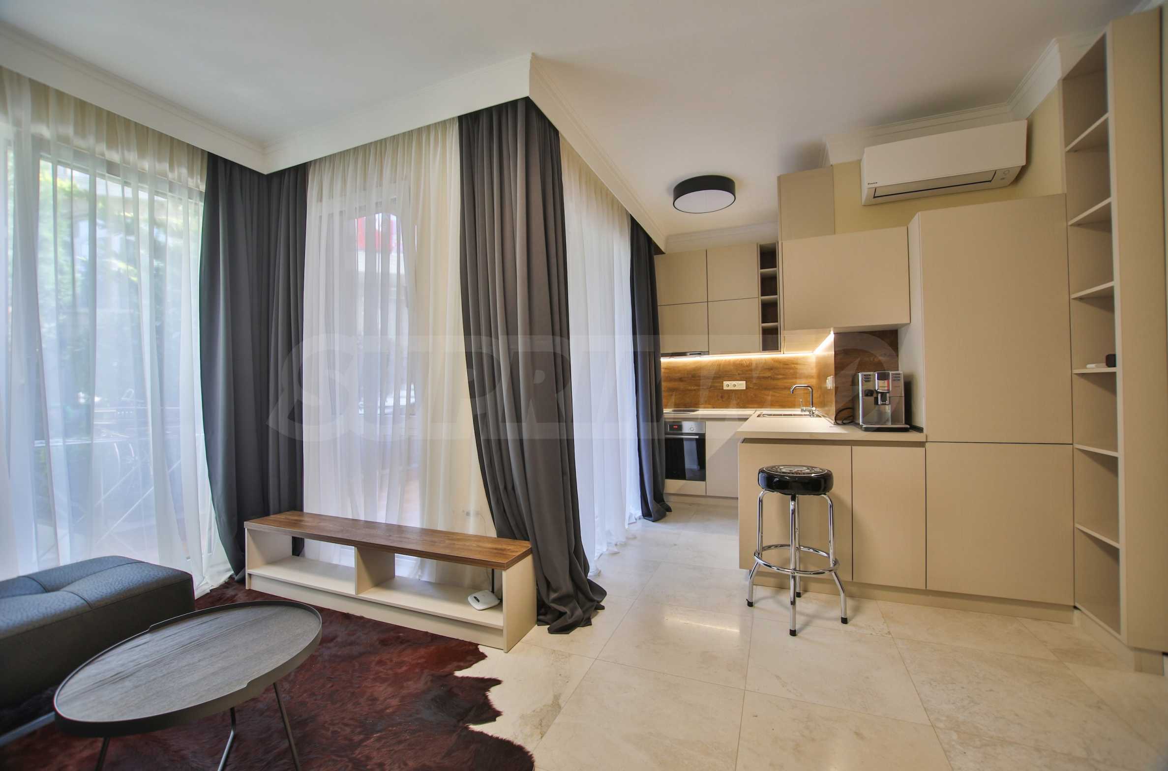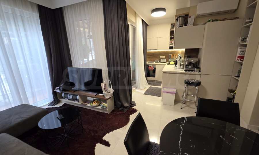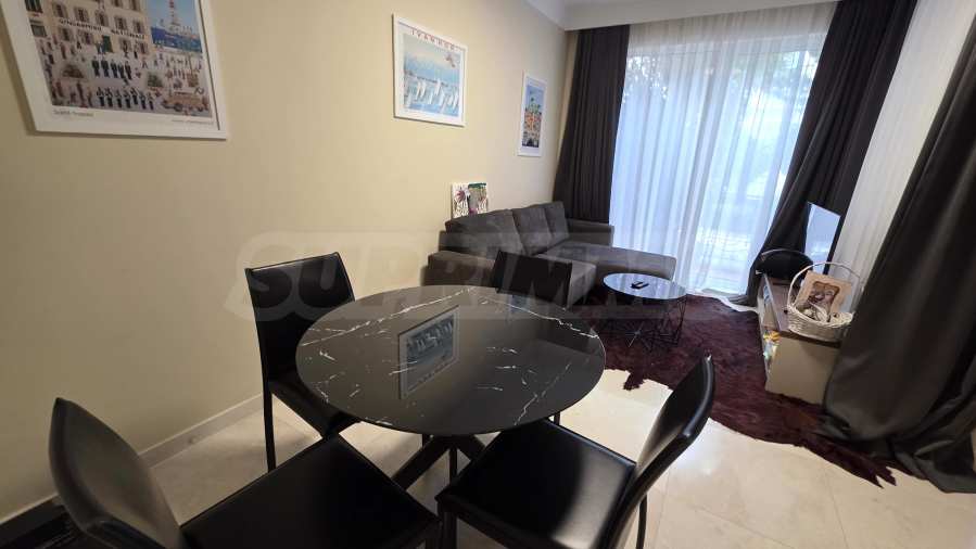 Wir bieten exklusiv zum Verkauf diese luxuriös eingerichtete Zwei-Zimmer-Wohnung mit einem Schlafzimmer an, gelegen in einem der wohl prestigeträchtigsten und schönsten Wohngebäude des künstlerischen Badeortes Lozenets.