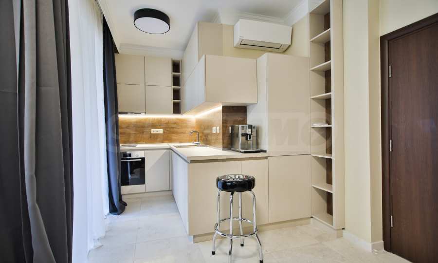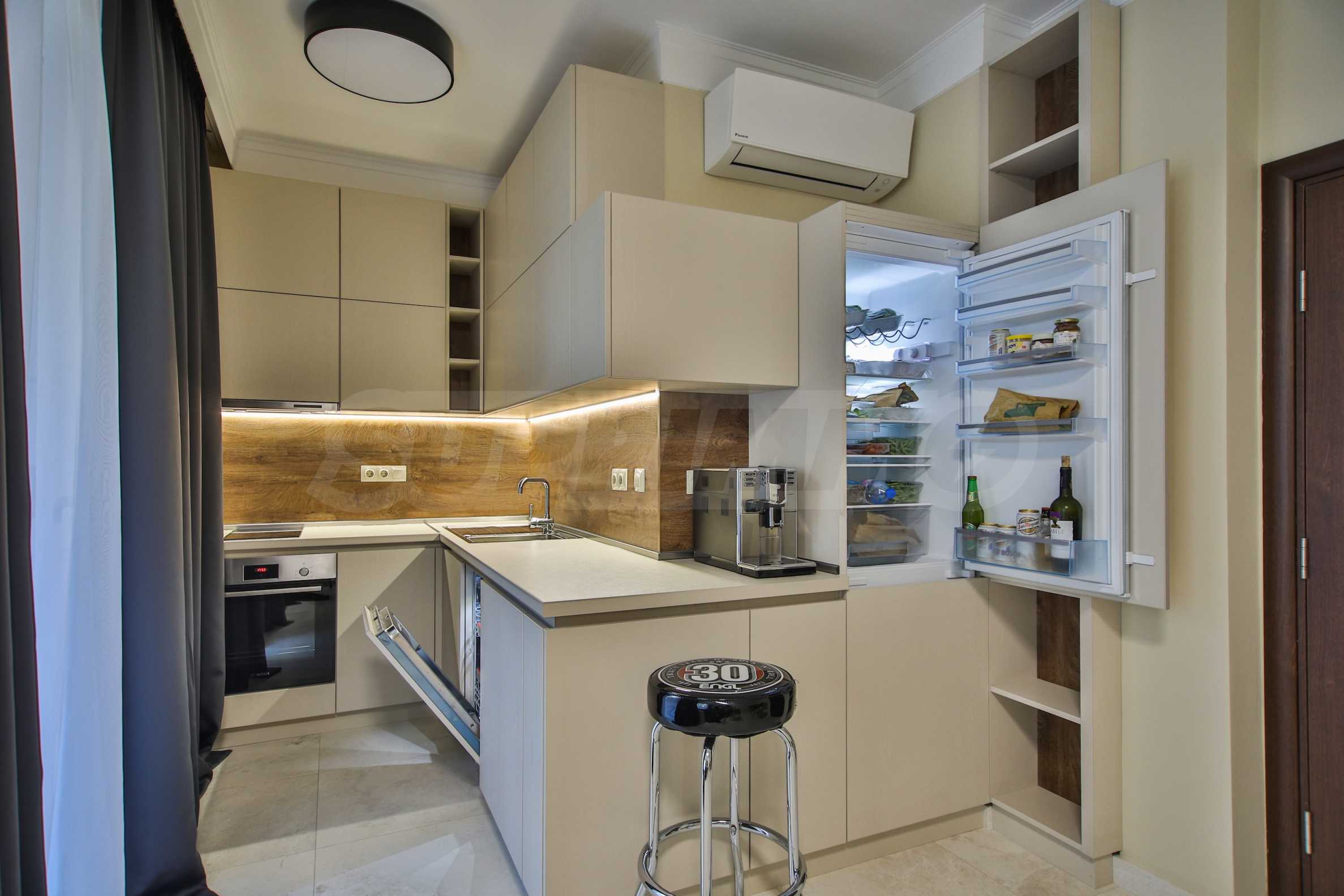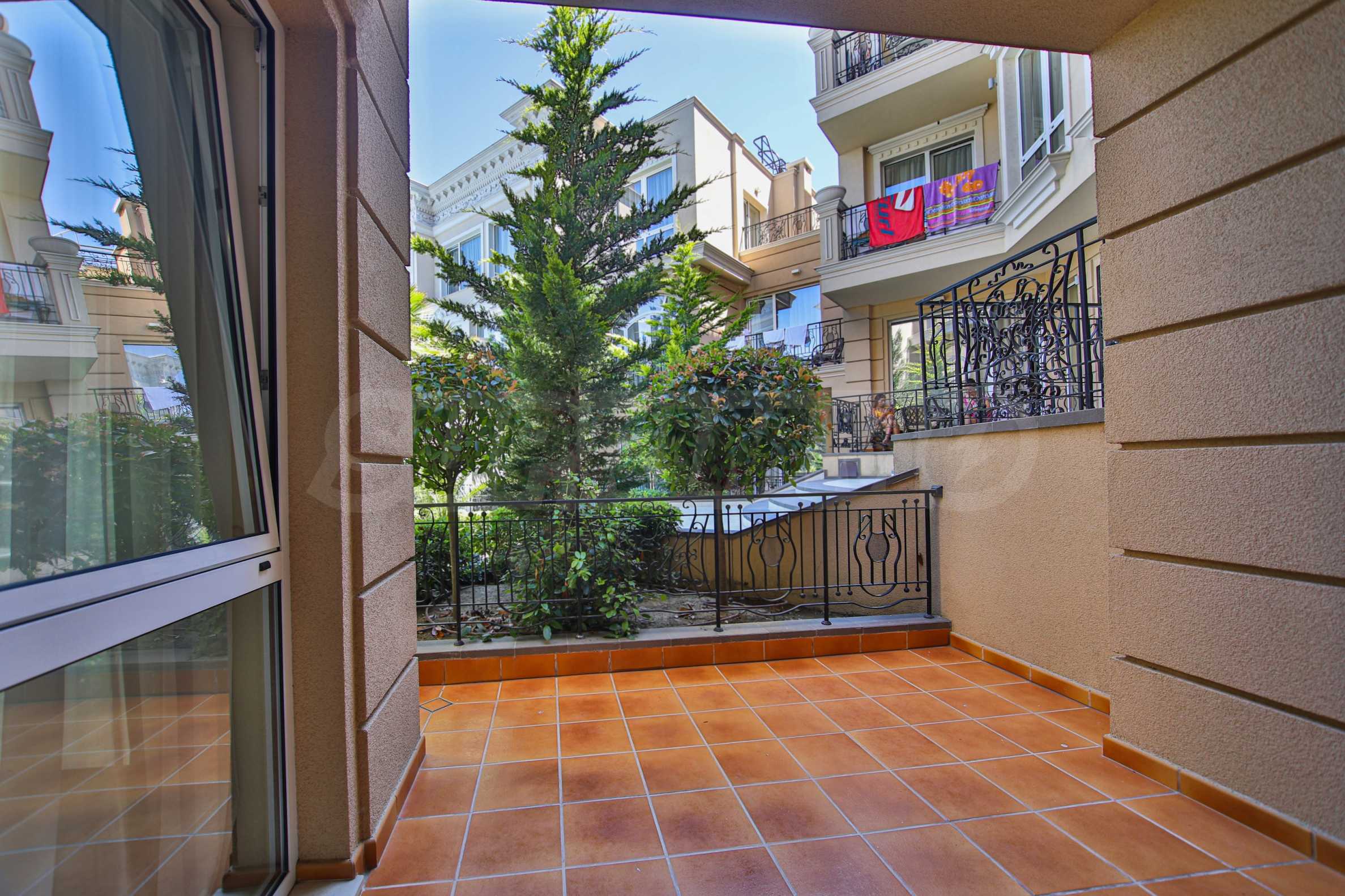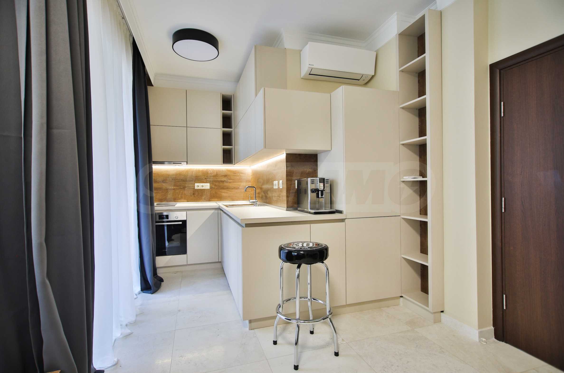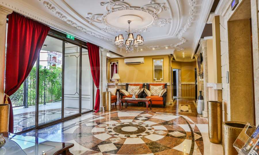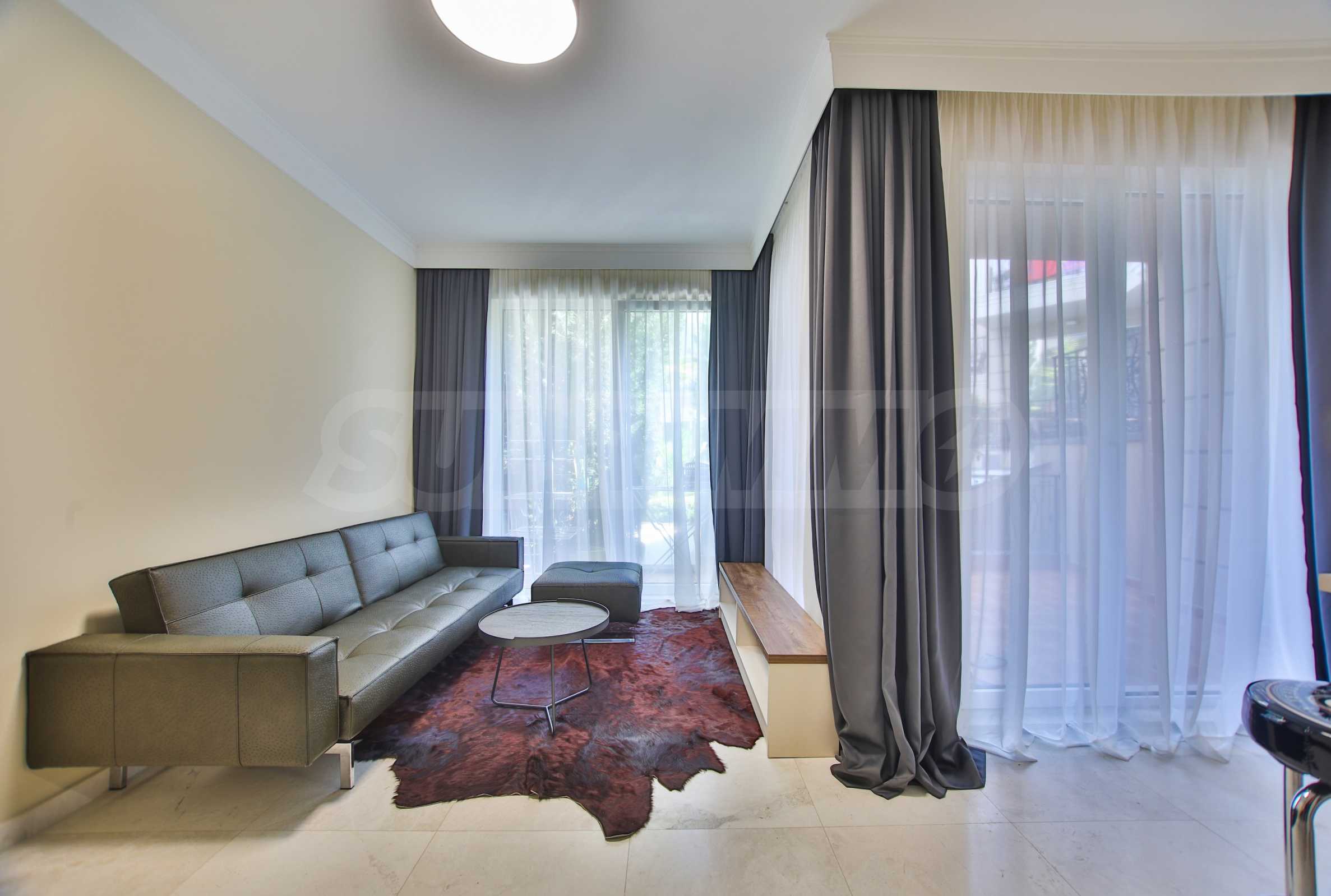 Wir bieten exklusiv zum Verkauf diese luxuriös eingerichtete Zwei-Zimmer-Wohnung mit einem Schlafzimmer an, gelegen in einem der wohl prestigeträchtigsten und schönsten Wohngebäude des künstlerischen Badeortes Lozenets.