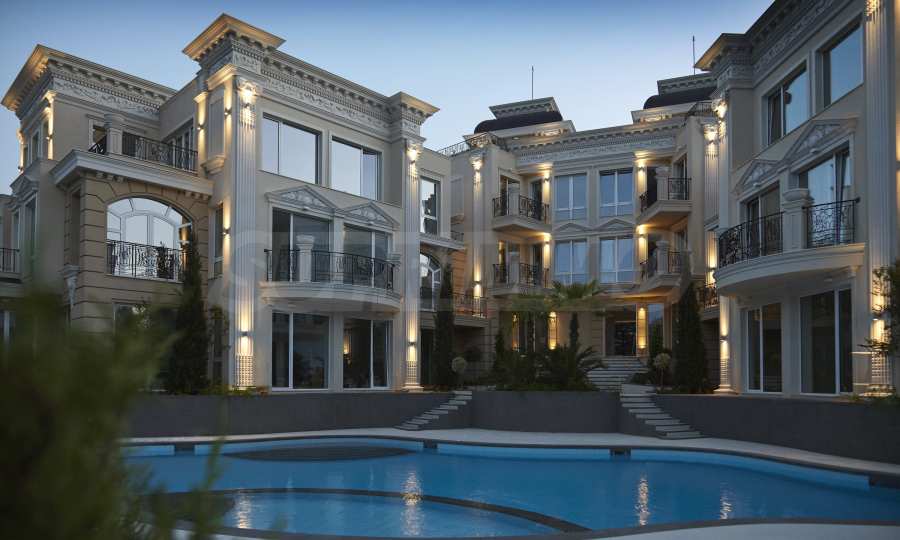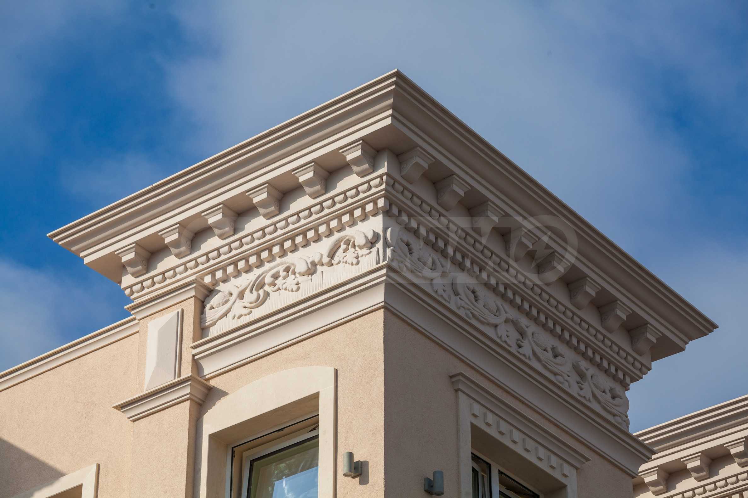 Verwendet wurden erstklassige Materialien – Naturstein an den Fassaden, Marmorböden und Travertin in den Gemeinschaftsbereichen.