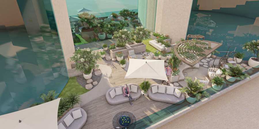 Für Ihre Fitness stehen Ihnen ein modern ausgestattetes Fitnessstudio, ein Padel- und ein Tennisplatz zur Verfügung, und zur Entspannung ein Spa-Bereich, ein Wellnessbereich und ein Whirlpool. In den oberen Etagen erwartet Sie ein Zen-Garten mit Panoramablick, der Ihnen ein seltenes Gefühl von Ruhe und Harmonie mit der Natur schenkt.