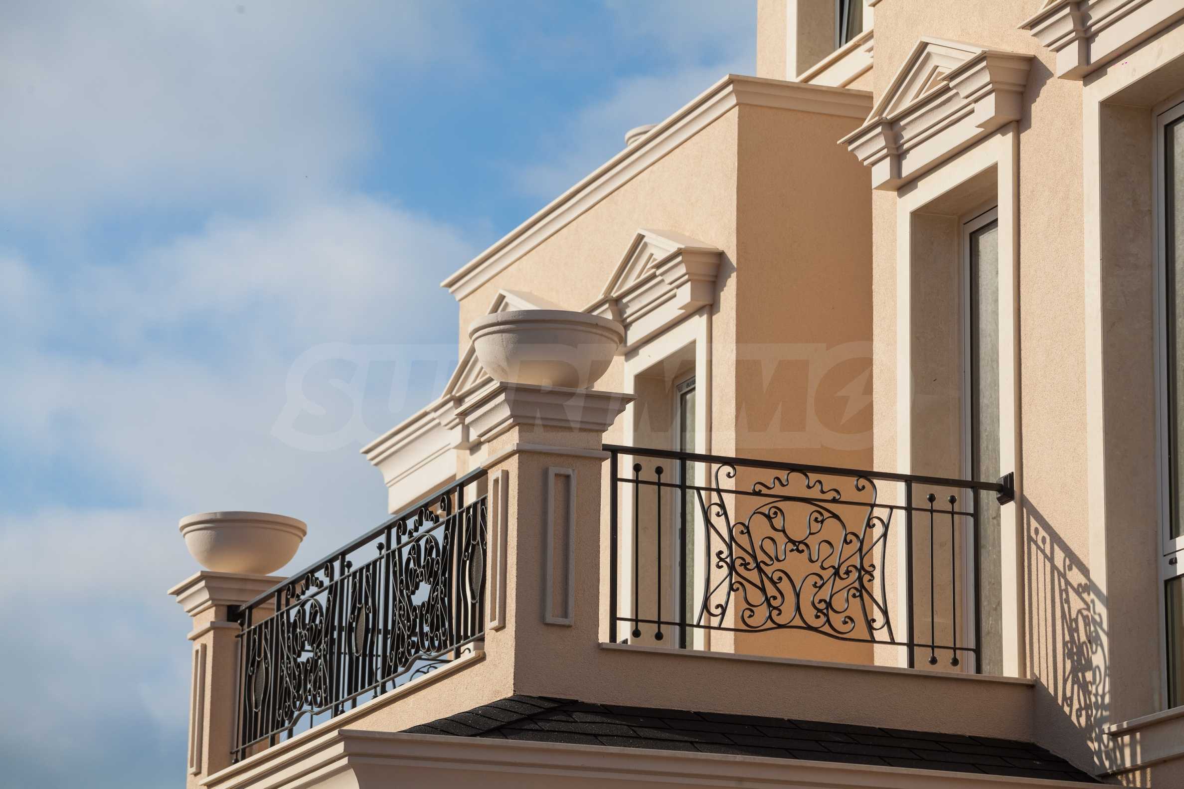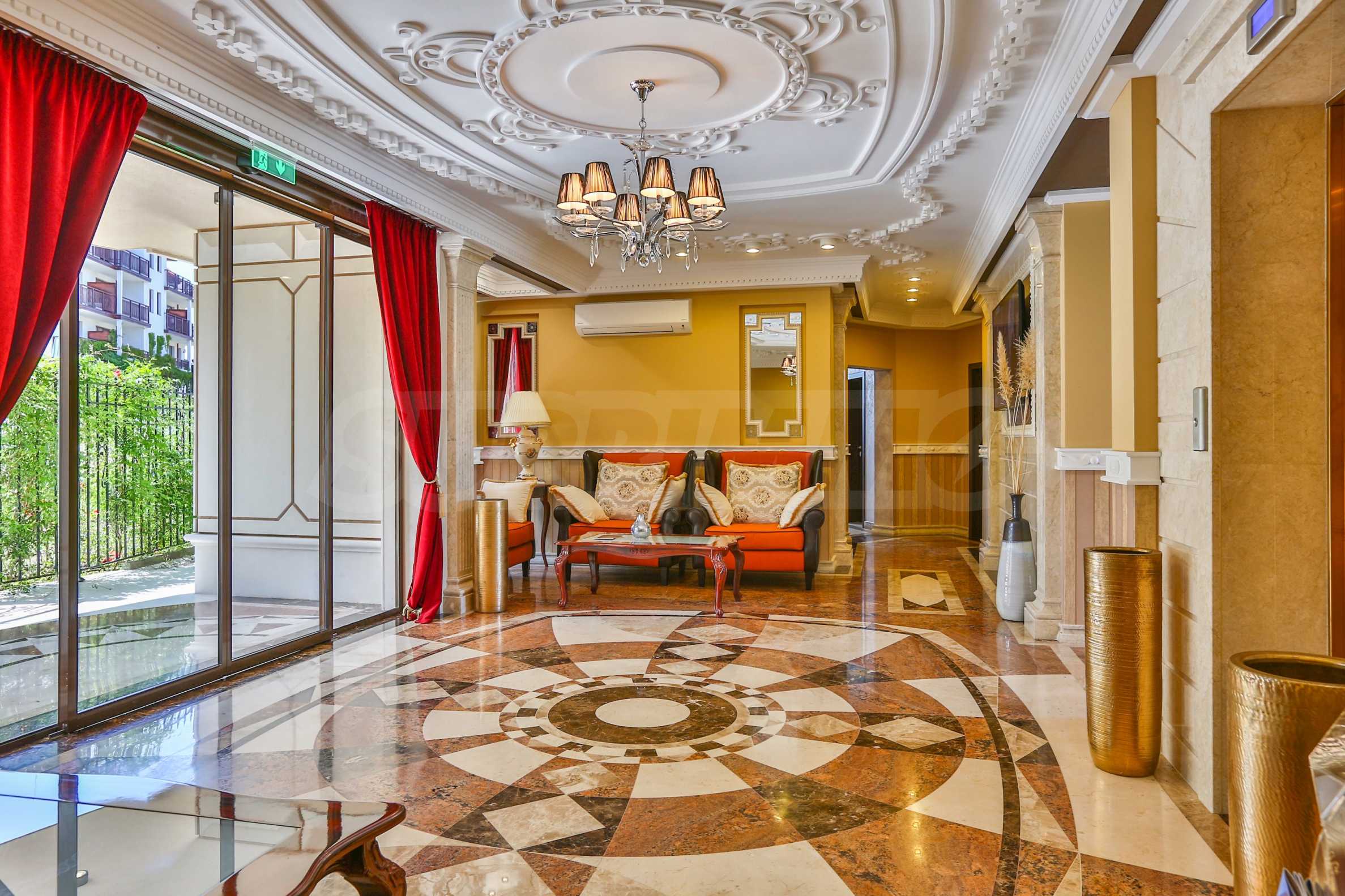 Die elegante Belle Époque Beach Residence zeichnet sich durch klassische Formen aus – ein Symbol für zeitlose Eleganz. Solch hochwertige Bauweise und anspruchsvolles Design der Fassade und Gemeinschaftsbereiche findet man nur selten an der bulgarischen Schwarzmeerküste. Verwendet wurden ausschließlich Materialien und Veredelungen von höchster Qualität internationaler Hersteller. Besonders hervorzuheben ist der Einsatz von Naturstein – sowohl an der Fassade als auch in den Gemeinschaftsbereichen, wo Marmor und andere Natursteine dominieren. Die Lobby und Rezeption wurden nach einem speziellen Designerprojekt gestaltet. Die Apartments selbst sind ebenfalls mit hochwertigen Natursteinbelägen ausgestattet.