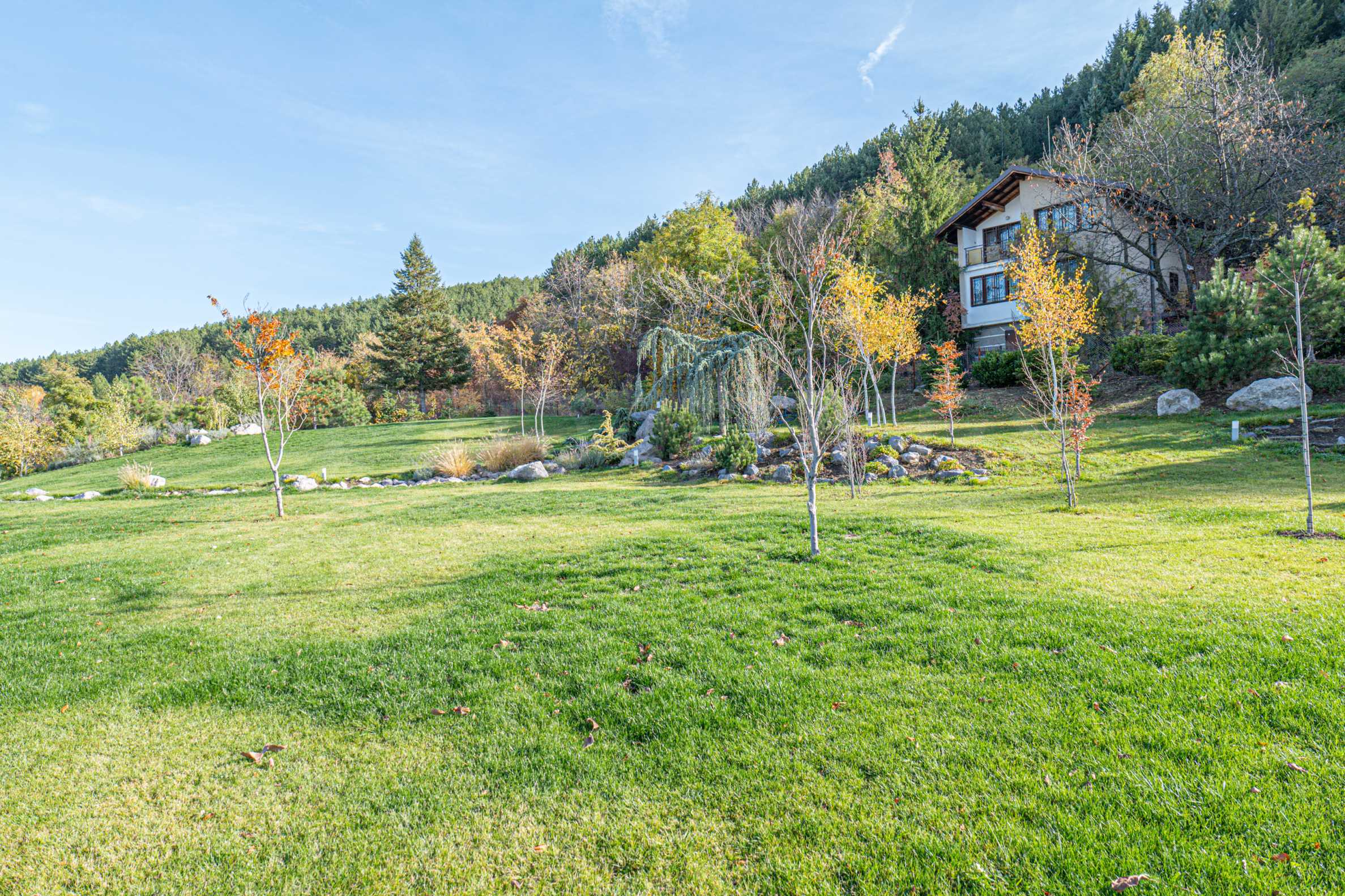 Wir präsentieren Ihnen ein außergewöhnliches Anwesen – ein neues Haus in einer wunderschönen, 2 Hektar großen Parkanlage im Dorf Lozen bei Sofia. Das Haus ist Teil einer eleganten, geschlossenen Anlage mit drei separaten Häusern, jedes mit eigenem Garten und Zugang zu den gemeinschaftlichen Grünflächen. Die Anlage bietet eine einzigartige Atmosphäre der Ruhe und Natur – mit einem See, einem kleinen Fluss, einem Wasserfall, einem Whirlpool und einer üppigen Landschaftsgestaltung, die das ganze Jahr über für Entspannung und Komfort sorgt. Die Lage am Waldrand garantiert frische Luft und einen herrlichen Ausblick. In unmittelbarer Nähe befinden sich alle Annehmlichkeiten des täglichen Lebens – Geschäfte, öffentliche Verkehrsmittel, Schule etc.