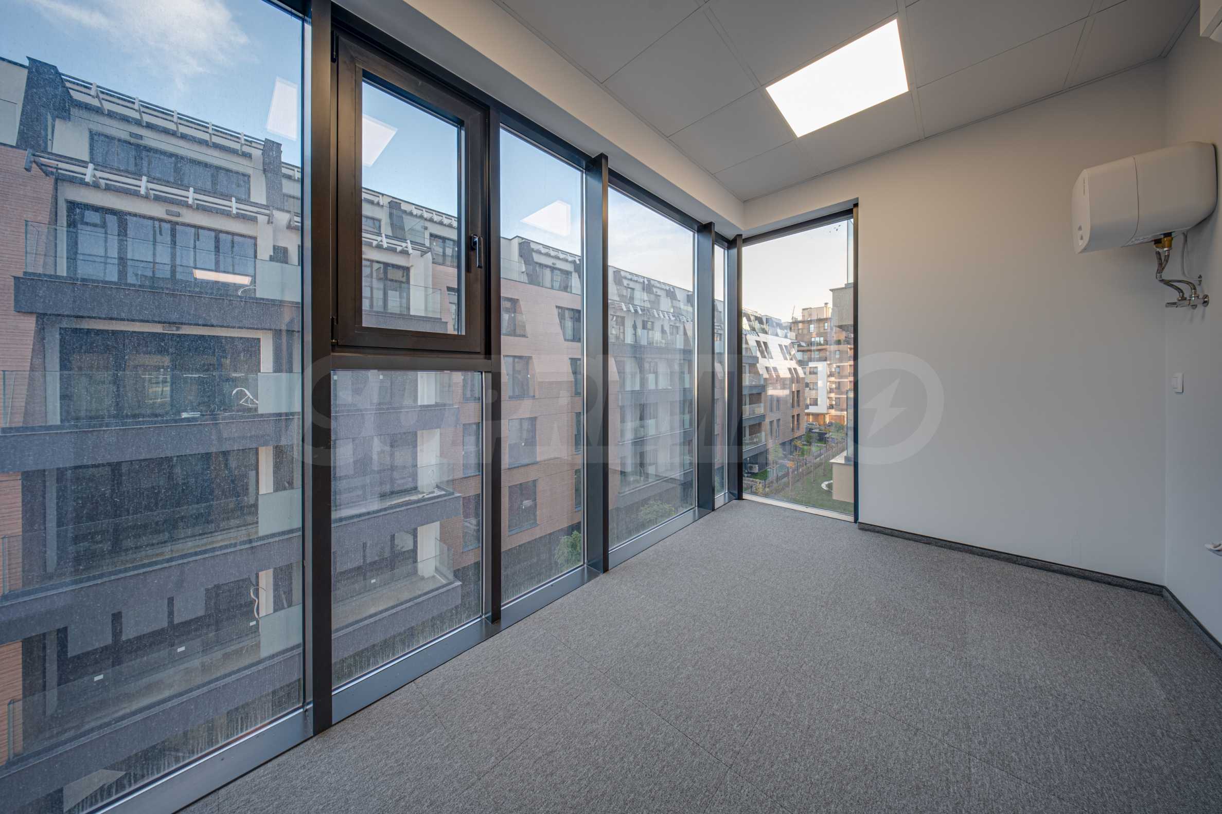 Auf jeder Etage befinden sich zwei Büros , die zusammengelegt werden können (Ausnahme: Büro Nr. 1, das die gesamte erste Etage einnimmt). Die einzelnen Büroflächen variieren zwischen 159,14 und 259,65 m². Jedes Büro verfügt über zwei Badezimmer und Serverräume; die größeren Büros bieten zusätzlich eine separate Küche.