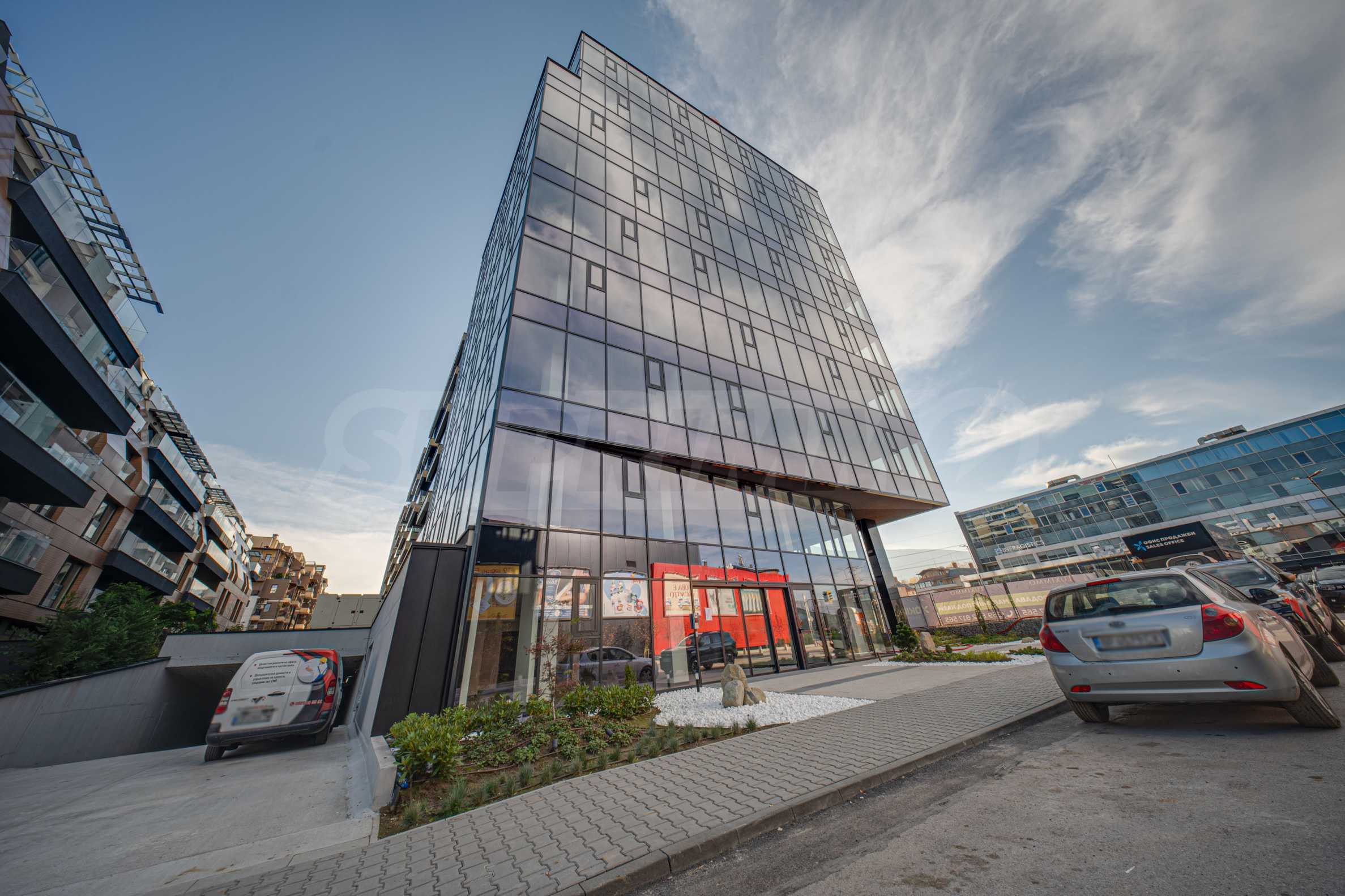 Das OKINAWA Boutique ist ein luxuriöses, multifunktionales Gebäude (Wohn-, Geschäfts- und Büroflächen) in bester Lage am Simeonovsko Shose Boulevard – in unmittelbarer Nähe des größten Einkaufszentrums der Luxuskette „Fantastico“. Der Bürotrakt befindet sich in zweiter Reihe des Prachtboulevards der Hauptstadt, erstreckt sich über neun Etagen und verfügt über einen separaten Eingang sowie zwei Aufzüge.