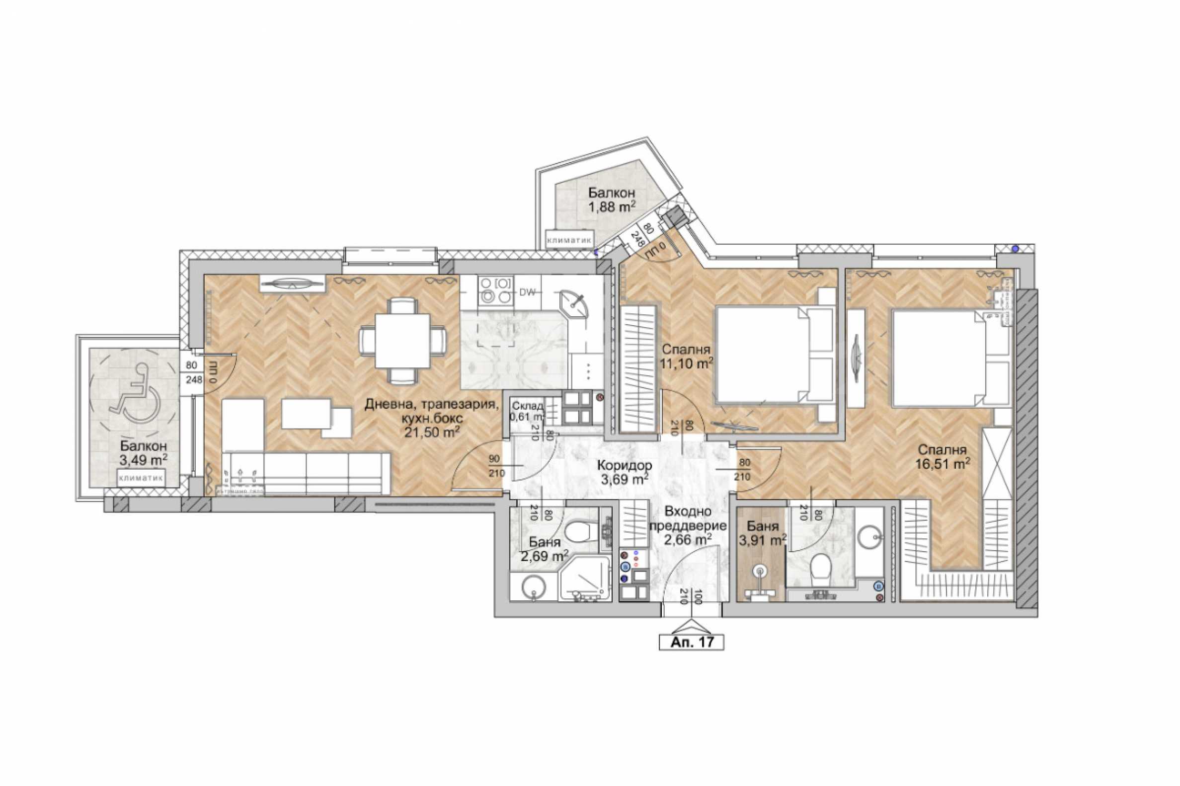 Das Gebäude umfasst 59 Apartments – Ein-Zimmer-, Zwei-Zimmer- und Studio-Apartments –, die mit viel Liebe zum Detail gestaltet wurden und auf maximalen Komfort und Funktionalität ausgerichtet sind. Die Apartments sind so konzipiert, dass sie den unterschiedlichen Bedürfnissen und Vorlieben ihrer zukünftigen Bewohner gerecht werden.