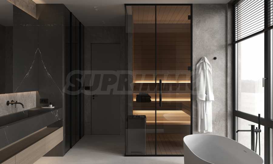 Wir präsentieren Ihnen ein außergewöhnliches Anwesen – ein neues Haus in einer wunderschönen, 2 Hektar großen Parkanlage im Dorf Lozen bei Sofia. Das Haus ist Teil einer eleganten, geschlossenen Anlage mit drei separaten Häusern, jedes mit eigenem Garten und Zugang zu den gemeinschaftlichen Grünflächen. Die Anlage bietet eine einzigartige Atmosphäre der Ruhe und Natur – mit einem See, einem kleinen Fluss, einem Wasserfall, einem Whirlpool und einer üppigen Landschaftsgestaltung, die das ganze Jahr über für Entspannung und Komfort sorgt. Die Lage am Waldrand garantiert frische Luft und einen herrlichen Ausblick. In unmittelbarer Nähe befinden sich alle Annehmlichkeiten des täglichen Lebens – Geschäfte, öffentliche Verkehrsmittel, Schule etc.