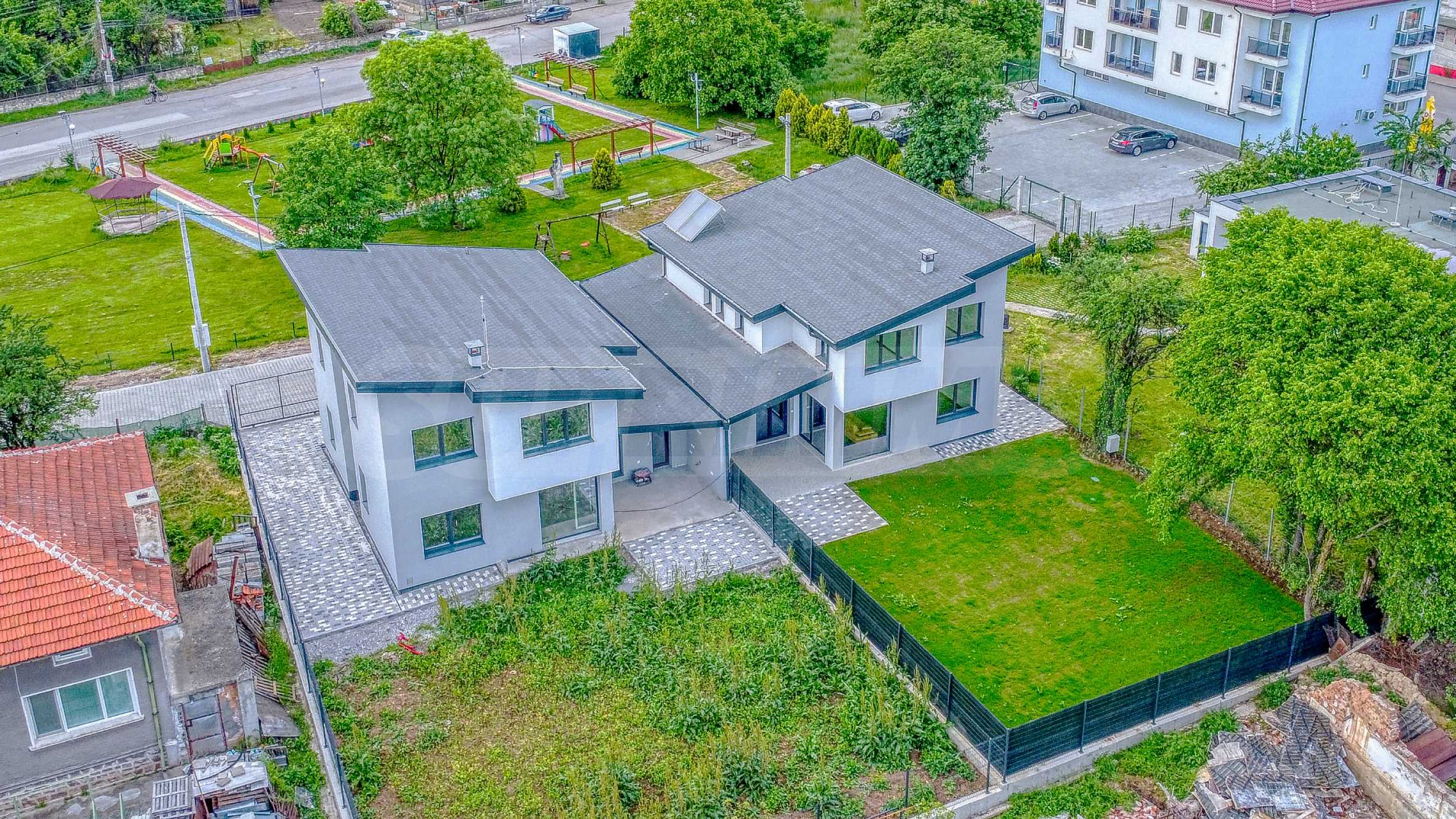 Wir freuen uns, Ihnen ein Designerhaus mit privatem Garten im Dorf Ravno Pole, nur wenige Meter vom Ortskern entfernt, präsentieren zu dürfen. Das Anwesen ist über eine neu angelegte Straße hervorragend erreichbar und verfügt über einen kleinen Park direkt davor, der für Gemütlichkeit und Ruhe sorgt.