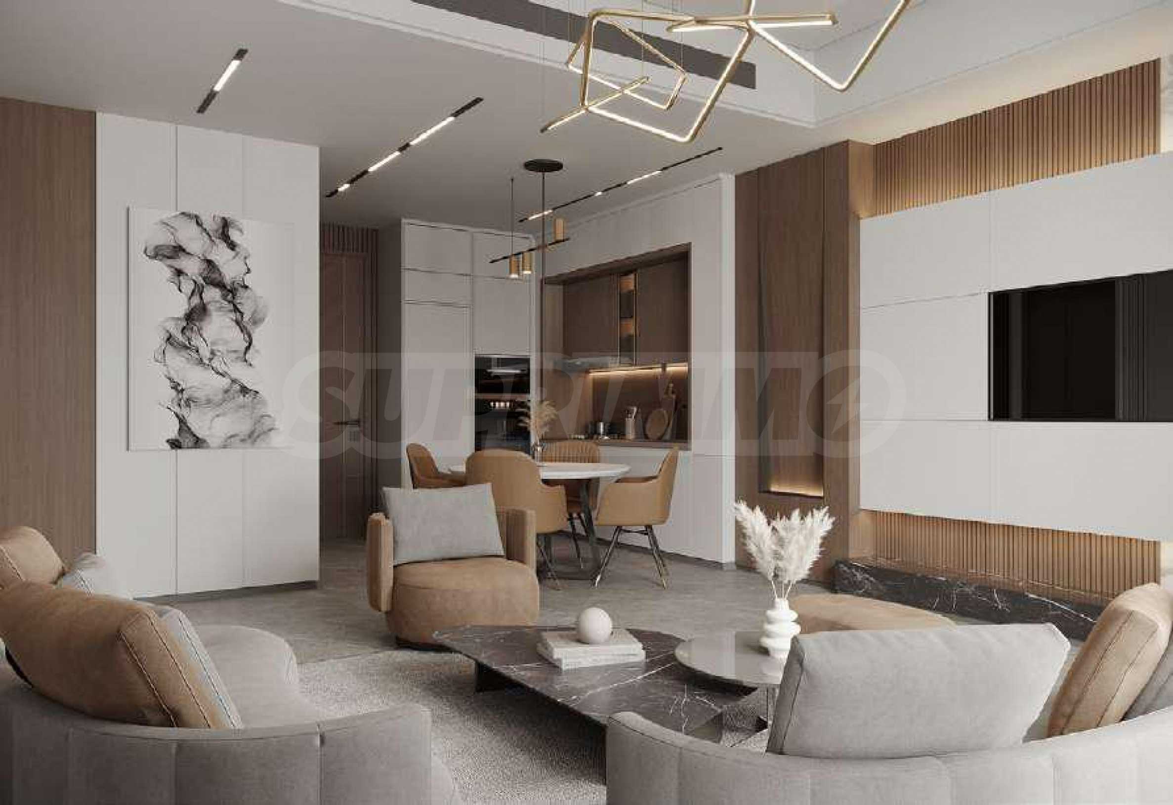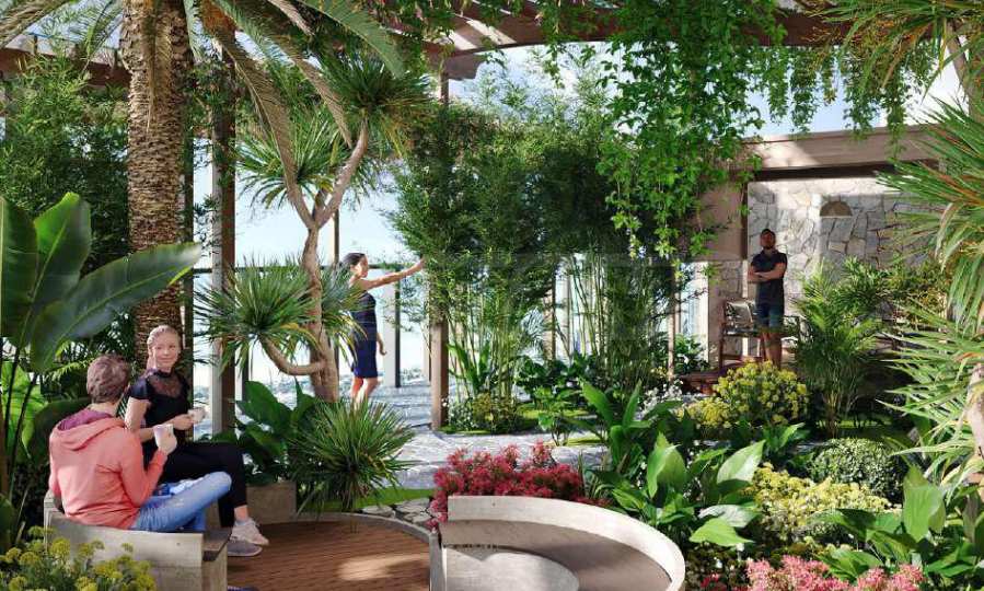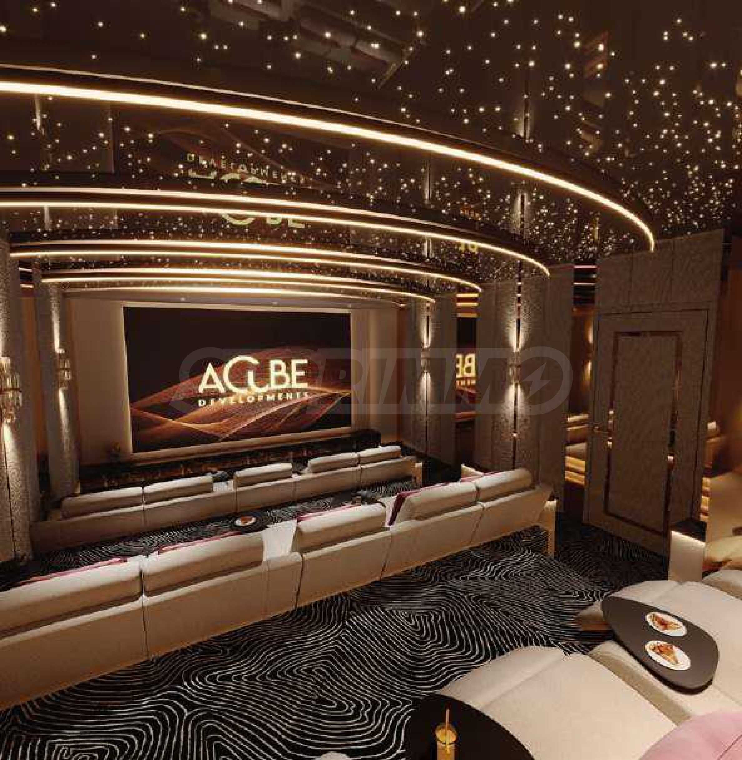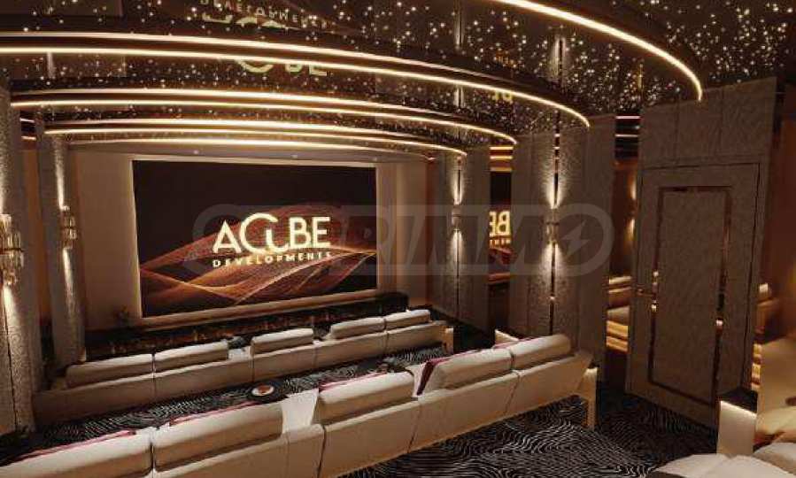 Electra bietet außerdem ein Kino für Erwachsene, und das wahre Highlight des Projekts sind die Außenbereiche für Freizeit und Unterhaltung – ein großzügiger Pool mit verschiedenen Wasserspielen, Ruhezonen, Grillmöglichkeiten und gemütliche Ecken für Mittag- oder Abendessen im Freien. Inmitten des Grüns finden Sie zudem einen Yoga-Bereich mit Blick auf den nahegelegenen Golfplatz sowie eine Minigolfanlage – ein stilvoller Ort für Spiele und gesellige Stunden mit Familie und Nachbarn.