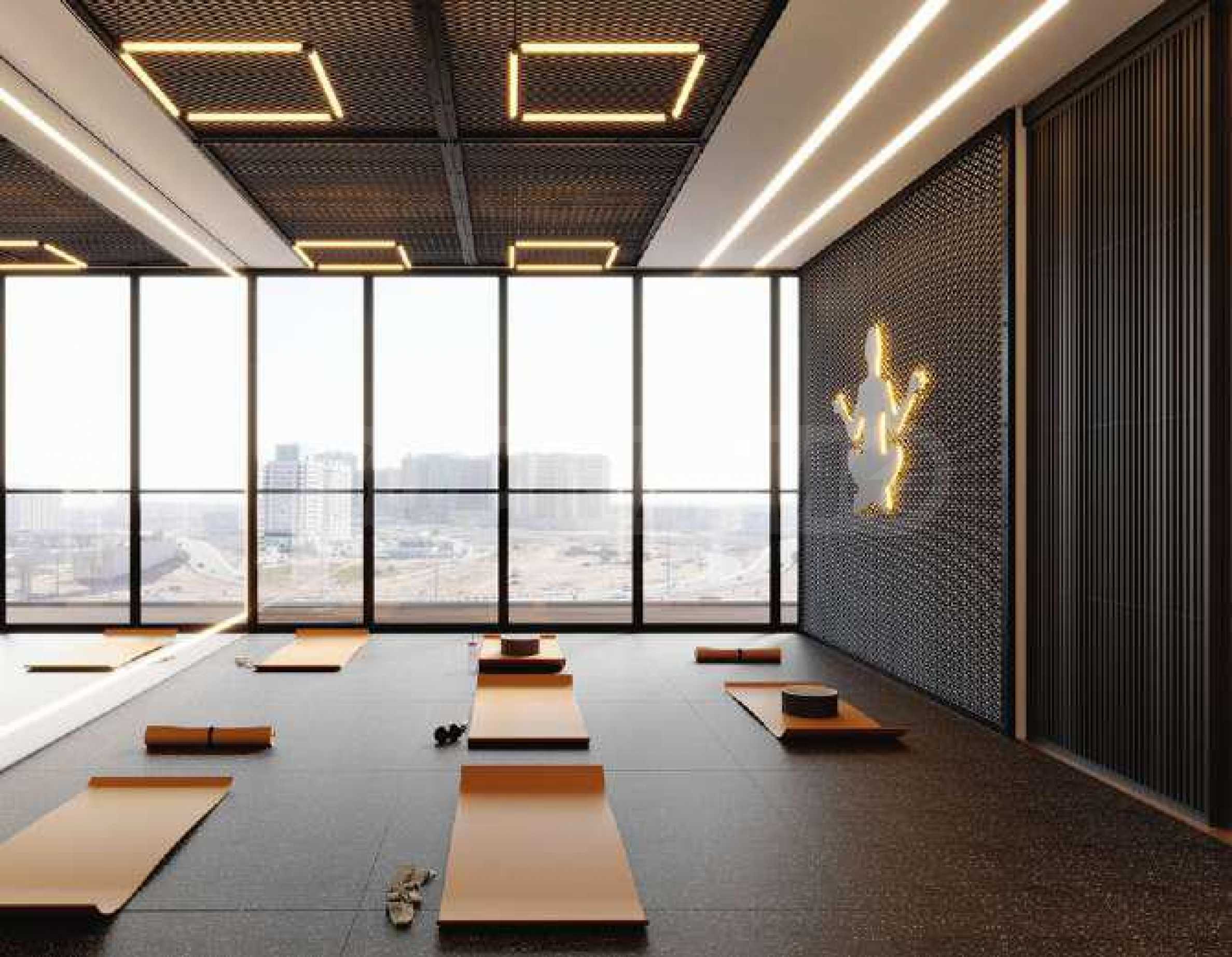 Das Gebäude bietet eine Vielzahl an Annehmlichkeiten, die auf die Bedürfnisse eines modernen Lebensstils zugeschnitten sind – ein voll ausgestattetes Fitnessstudio, ein Yogastudio und ein Entspannungsbereich mit Sauna, Dampfbad und Whirlpool. Sie schaffen perfekte Bedingungen für körperliche Aktivität und Erholung von Körper und Geist.