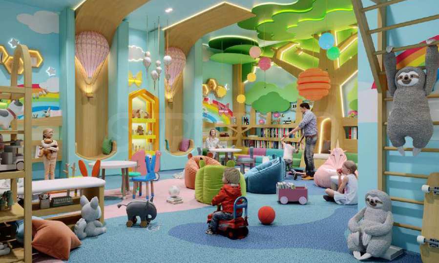 Für die jüngsten Bewohner gibt es spezielle Bereiche – einen Außenspielplatz, ein Spielzimmer, ein Kinderkino und ein separates Schwimmbad. Hier können Kinder in einer sicheren und anregenden Umgebung spielen, wachsen und ihre Fantasie entwickeln.