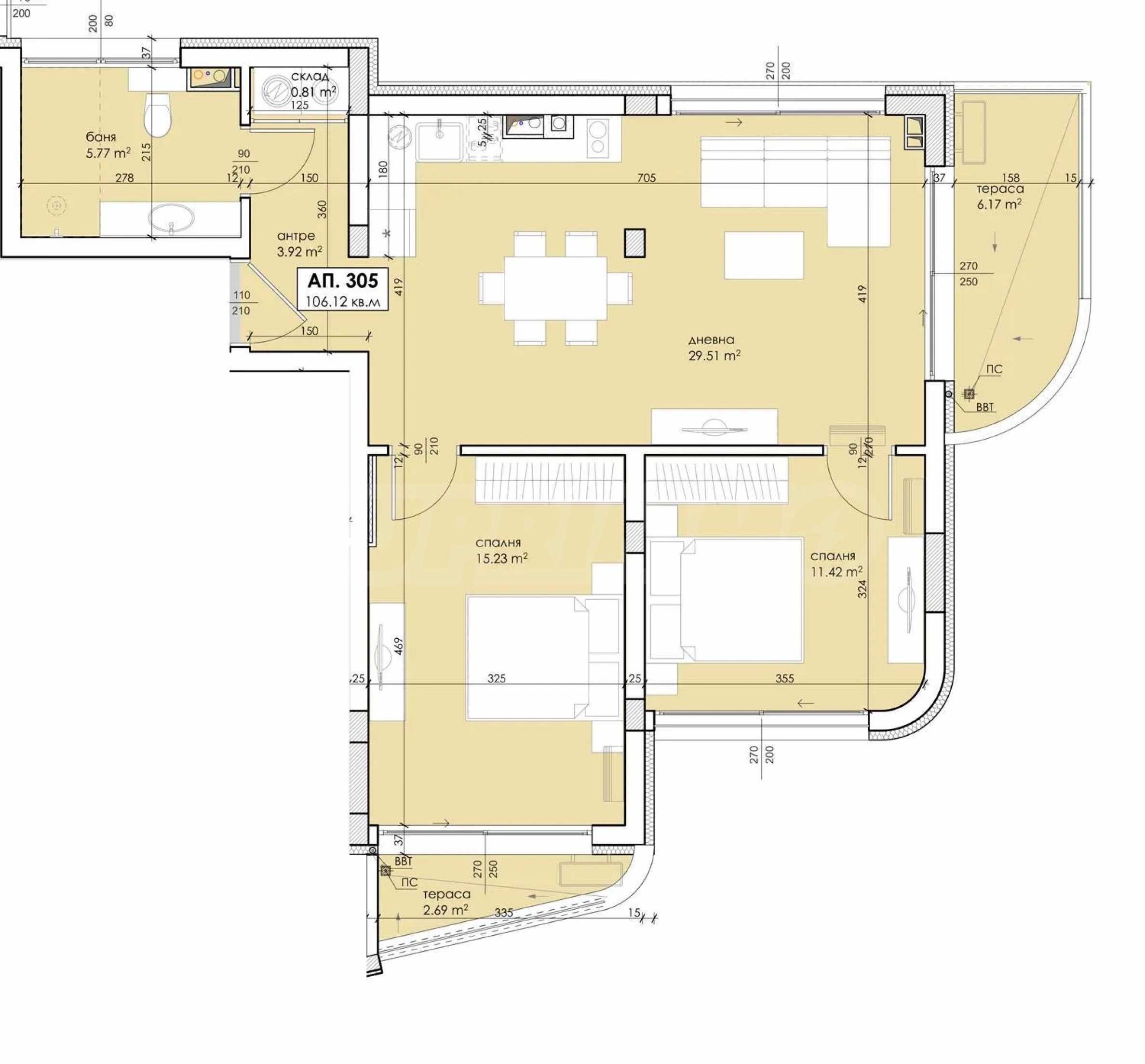 Die Wohnung wird gemäß dem bulgarischen Zivilgesetzbuch in folgendem Ausbaugrad vermietet: