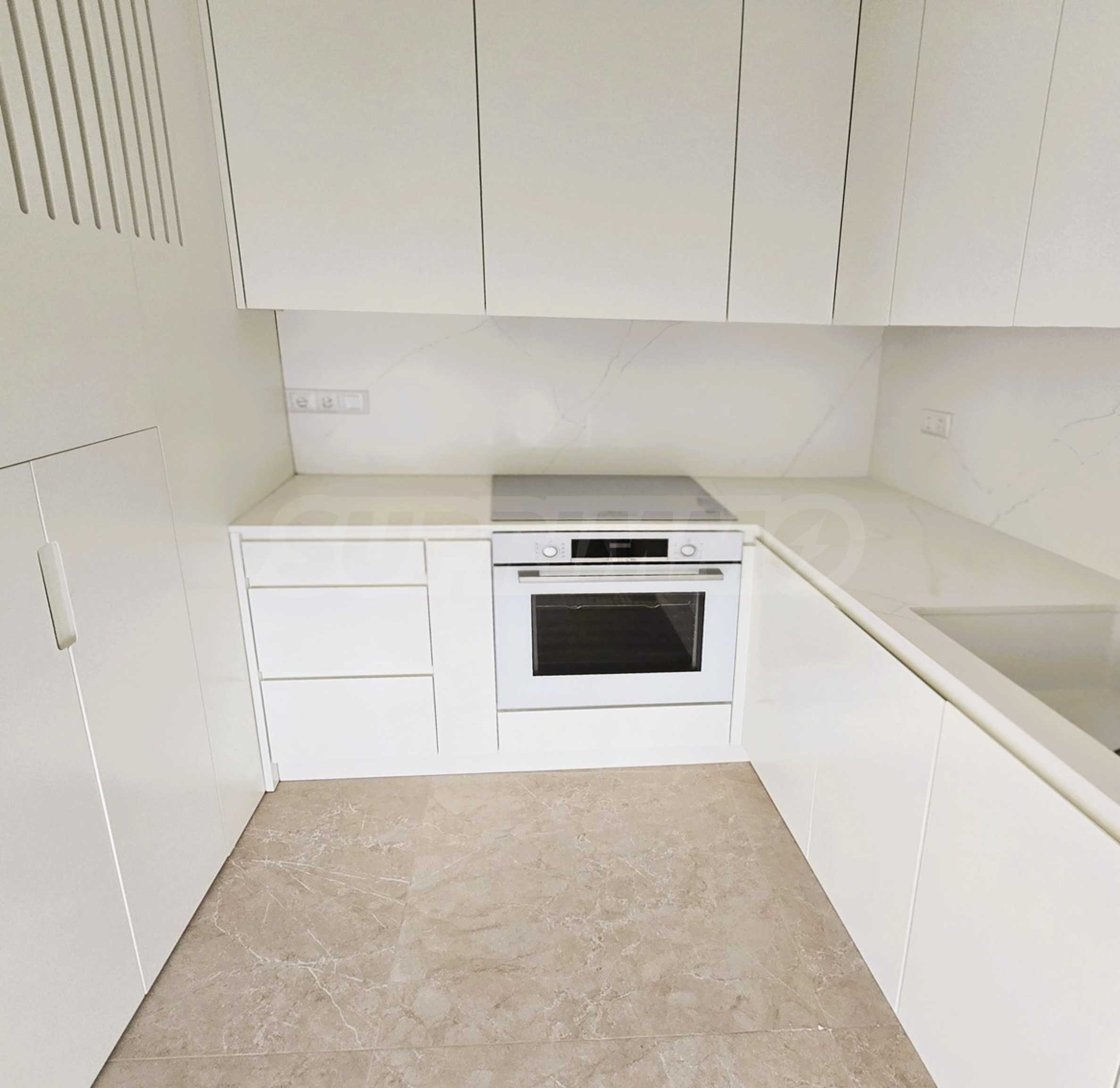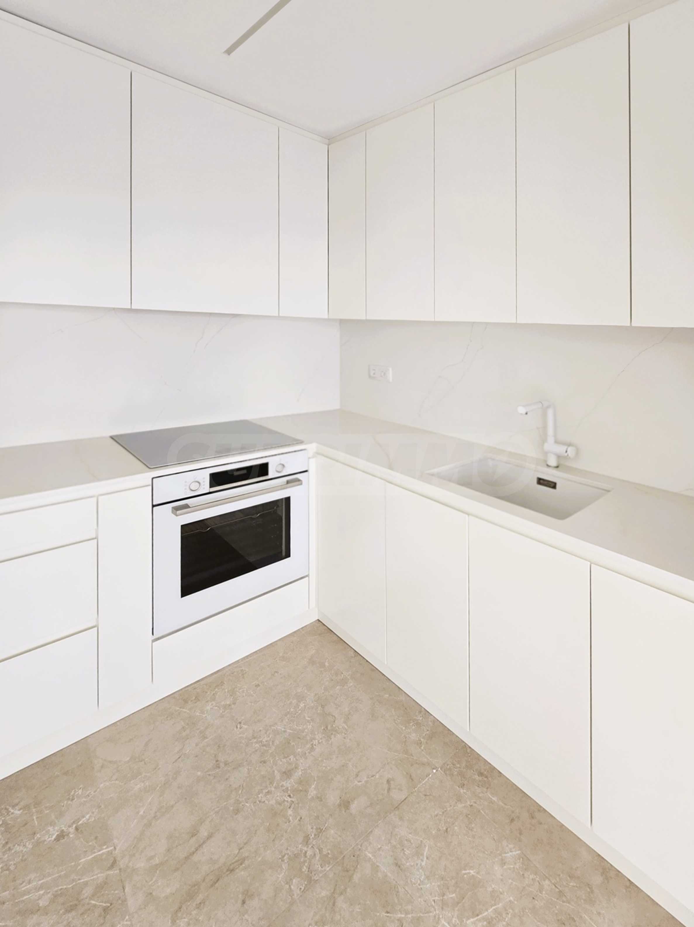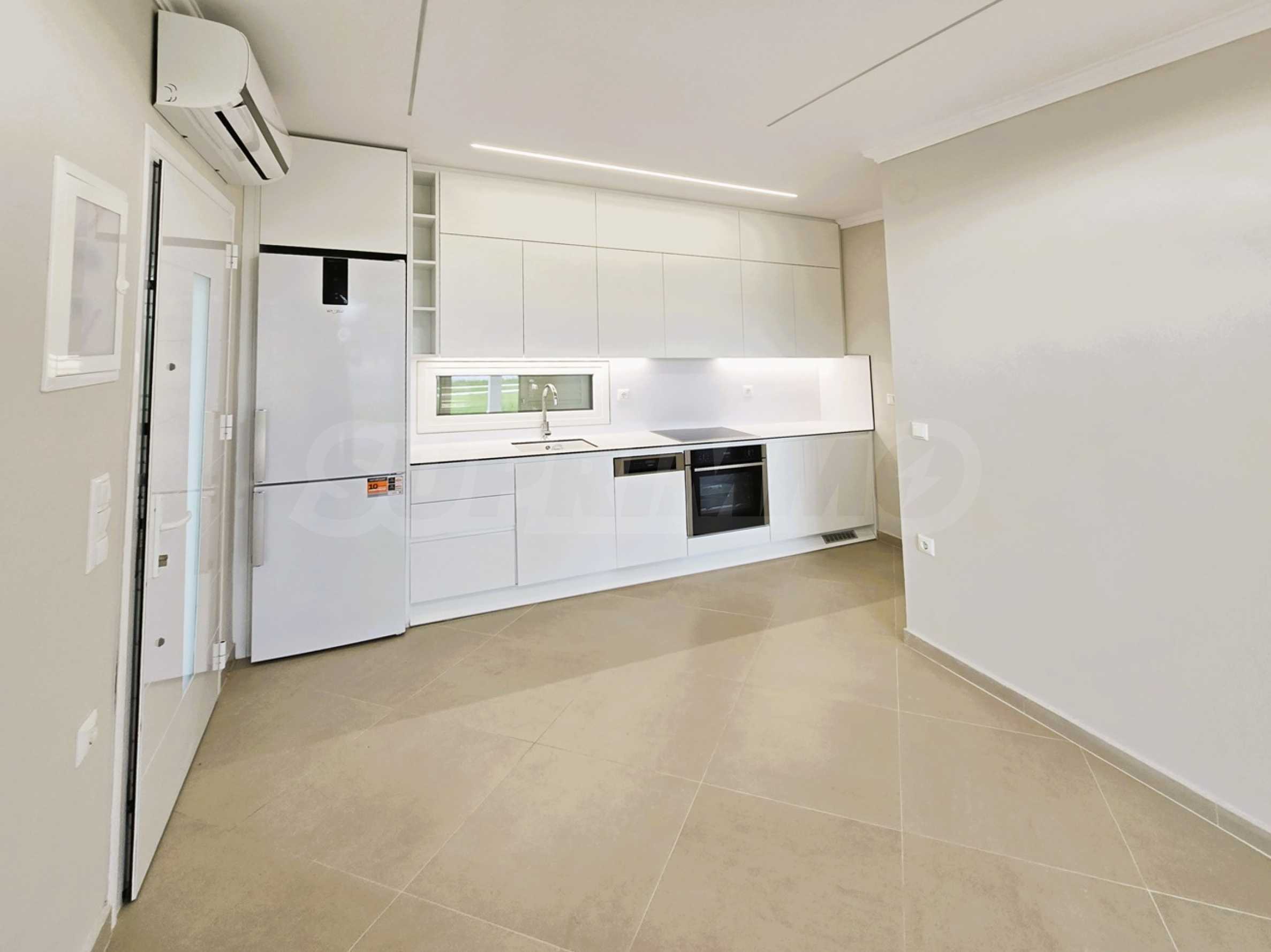 Erste Ebene: Großzügiges Wohnzimmer mit Kochnische, zwei voll ausgestattete Schlafzimmer und zwei Badezimmer.