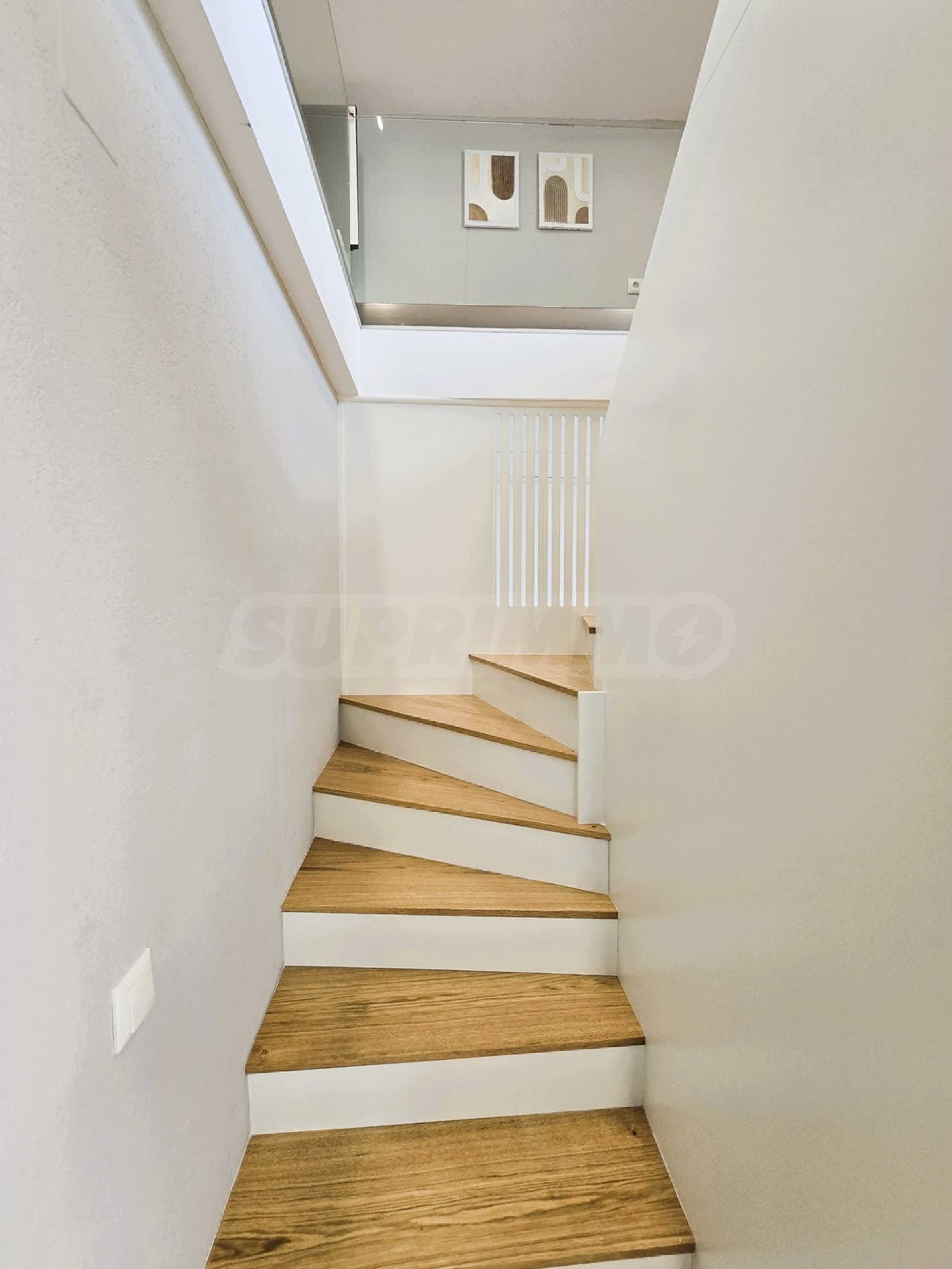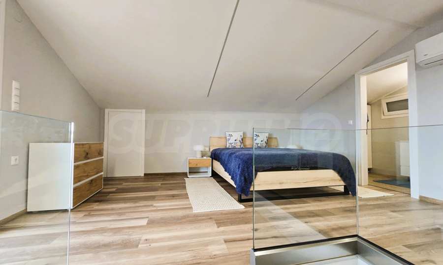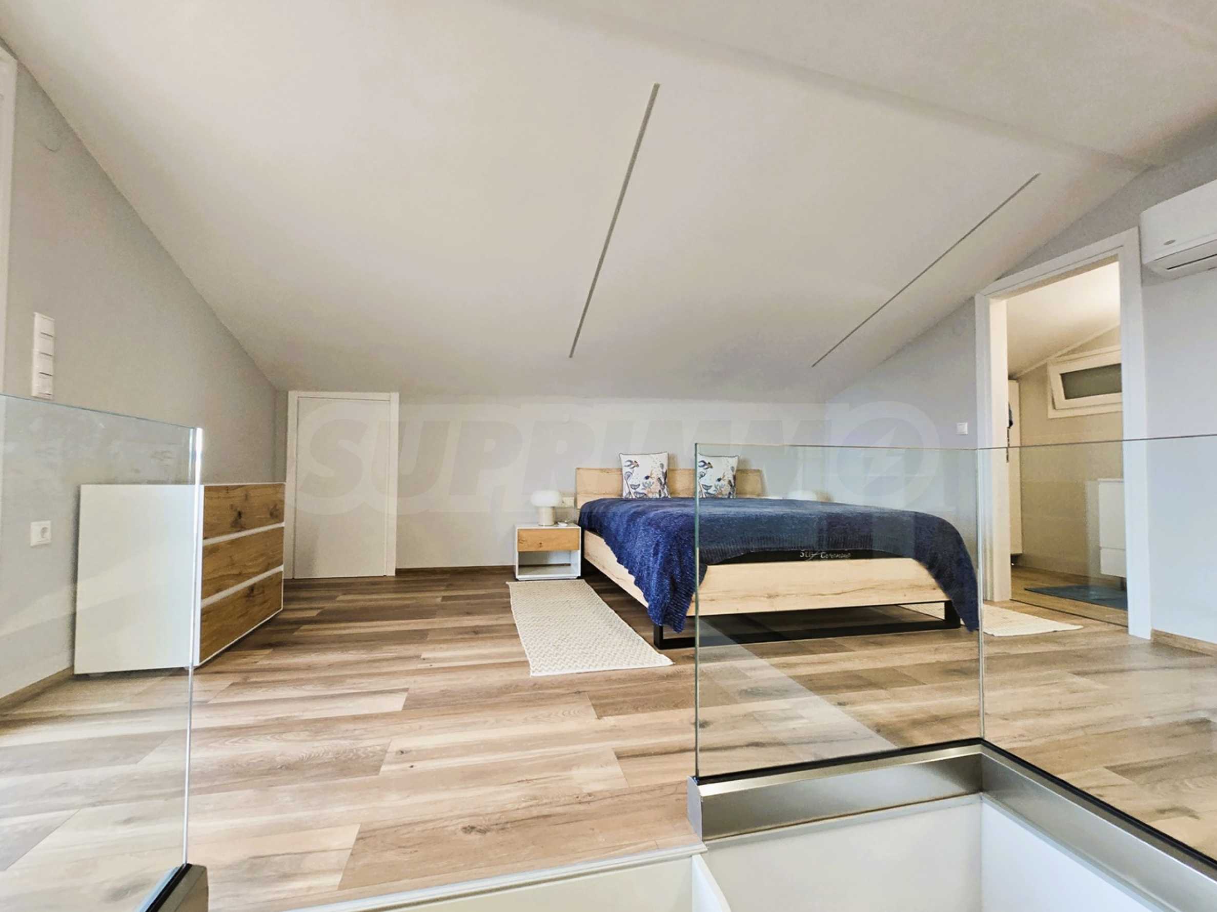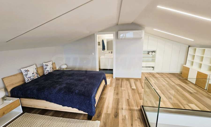 Zweite Ebene: Separates Hauptschlafzimmer mit angrenzendem Badezimmer.