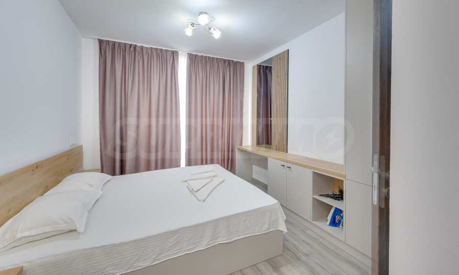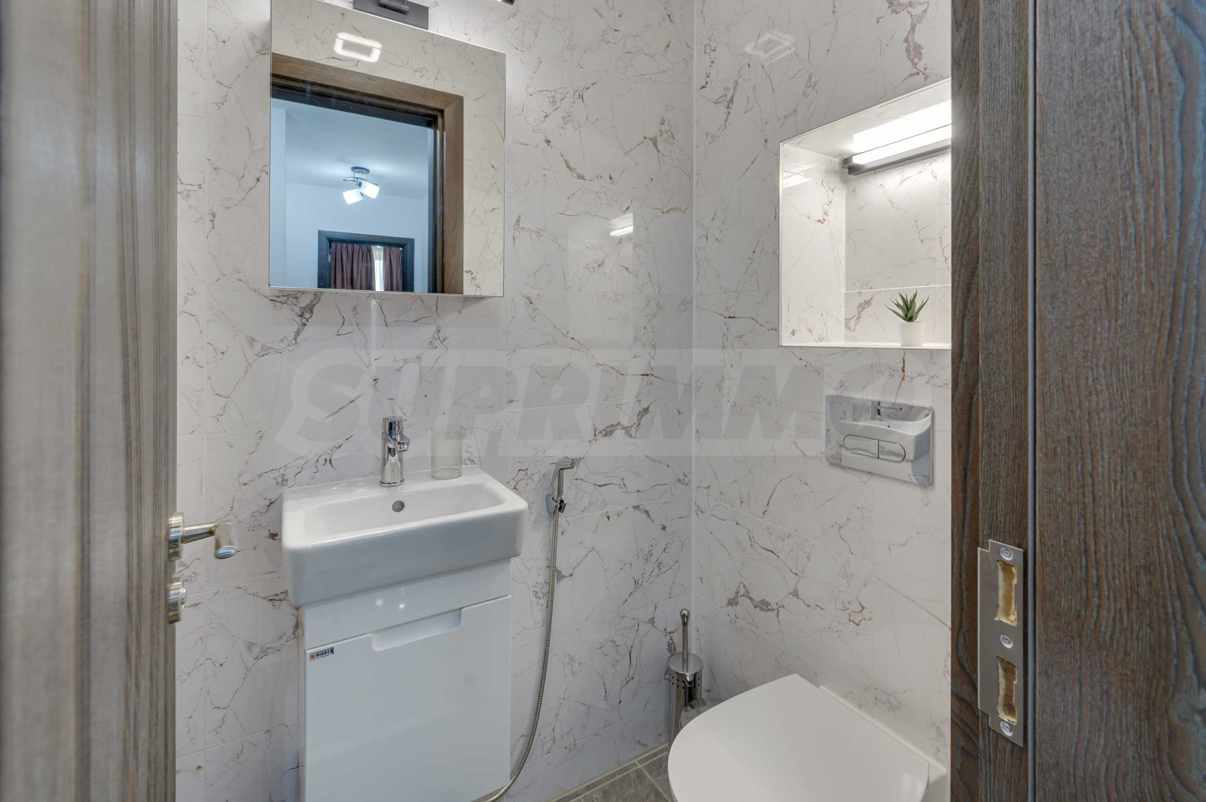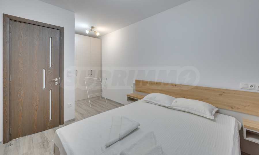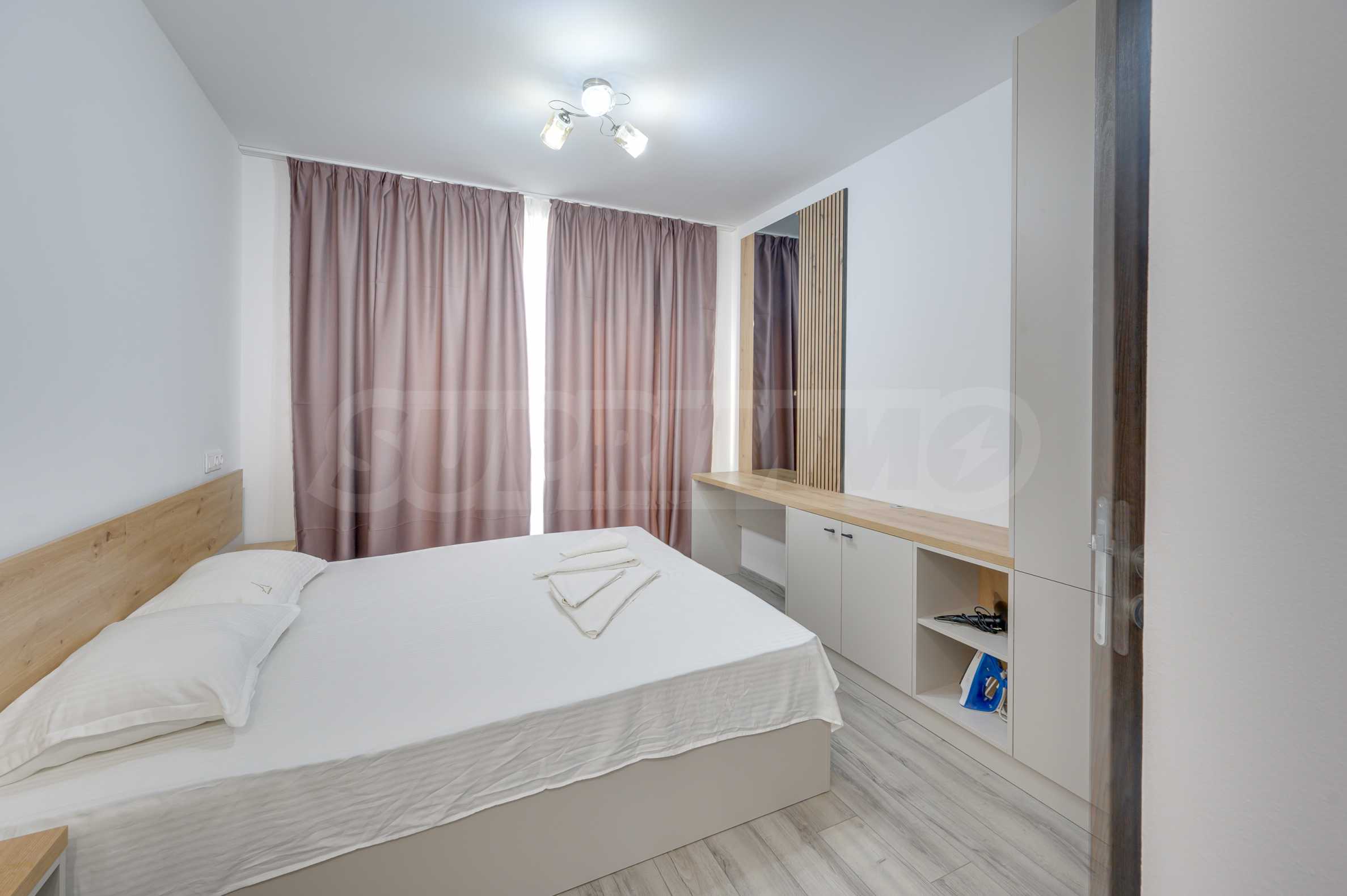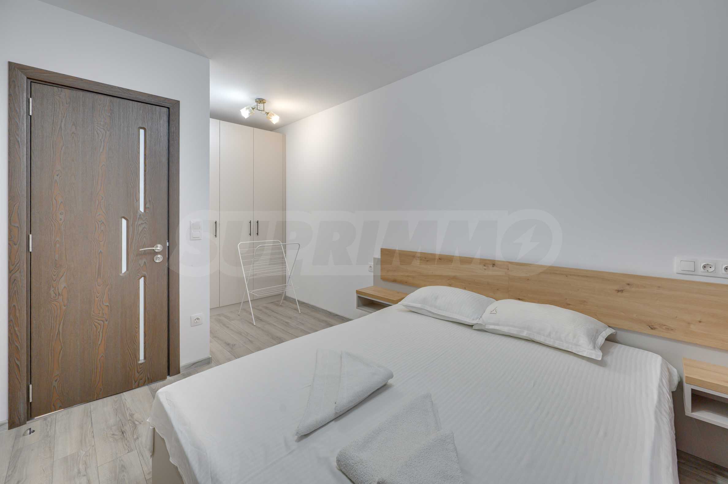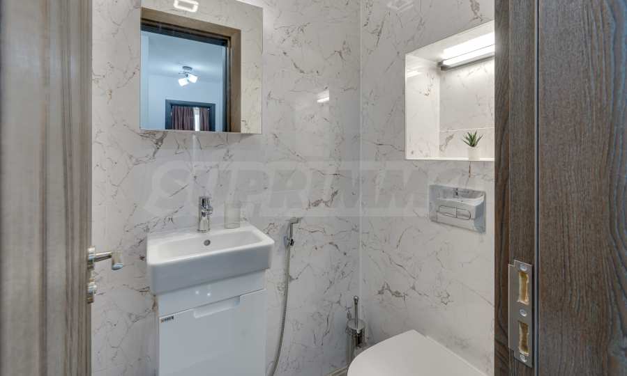 Die Wohnung besticht durch ihre funktionale und durchdachte Raumaufteilung. Sie besteht aus einem geräumigen Wohnzimmer mit Essbereich und voll ausgestatteter Küche, zwei gemütlichen Schlafzimmern, einem Badezimmer mit WC, einem separaten WC und zwei Terrassen. Die Hauptterrasse bietet einen herrlichen Panoramablick auf das Witoscha-Gebirge und vermittelt zu jeder Tageszeit ein Gefühl von Weite und Ruhe.