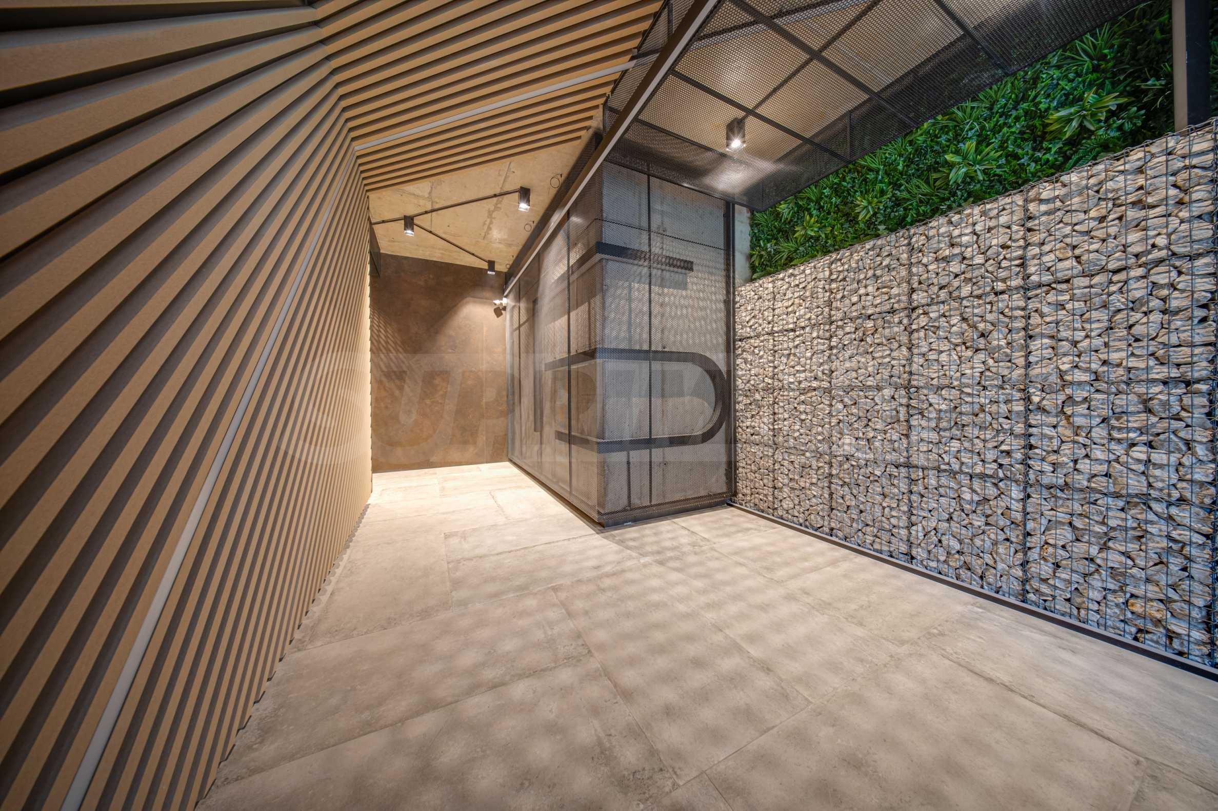 Boden - polierter Beton, Wände - Sichtbeton, feuerbeständige Trennwände zwischen den Garagen AQUAFIRE, auf einer Stahlbetonkonstruktion aus UA-Profilen;