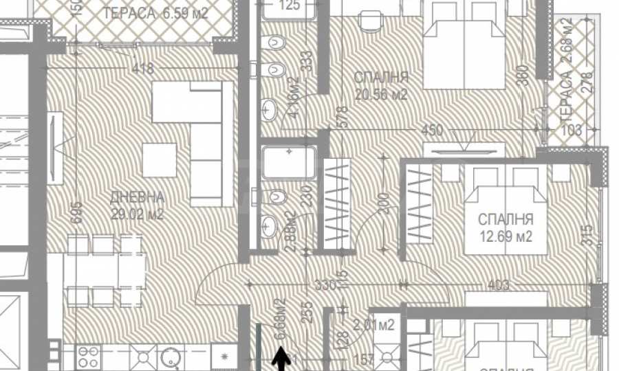 Zum Objekt gehört die Option, einen Tiefgaragenstellplatz zum Preis von 33.000 Euro (64.541,40 BGN) zu erwerben.