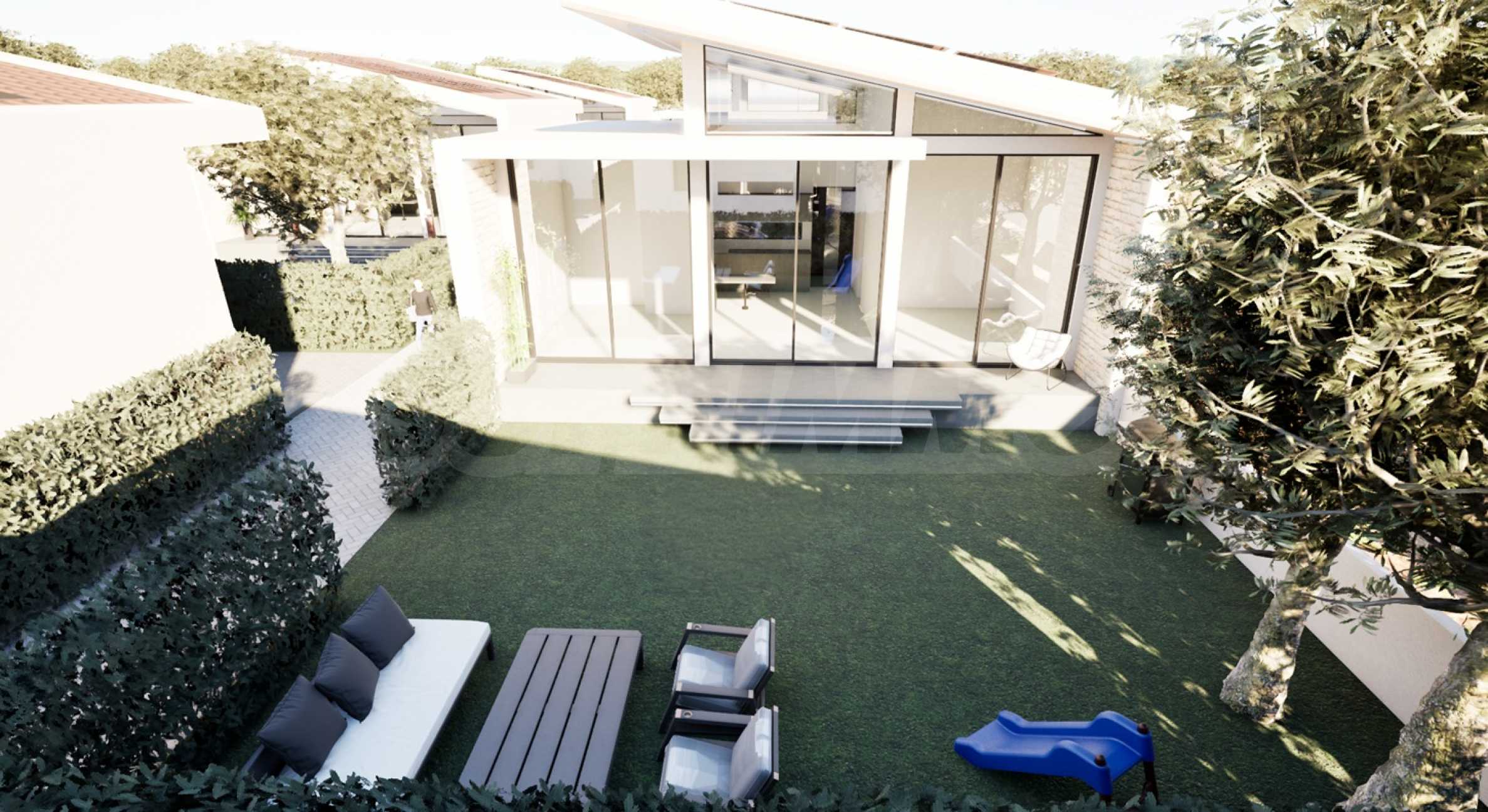 Verschmelzen Sie mit der Natur. Jedes Haus verfügt über einen bezaubernden 90 m² großen Garten – eine grüne Oase, die eine natürliche Erweiterung des Wohnraums darstellt. Hier kann jeder seinen Kaffee in der Morgensonne, einen Cocktail, einen Drink am Abend oder nachts unter dem Sternenhimmel genießen oder einfach im behaglichen, offenen Wohnzimmer entspannen und die Meeresbrise spüren.