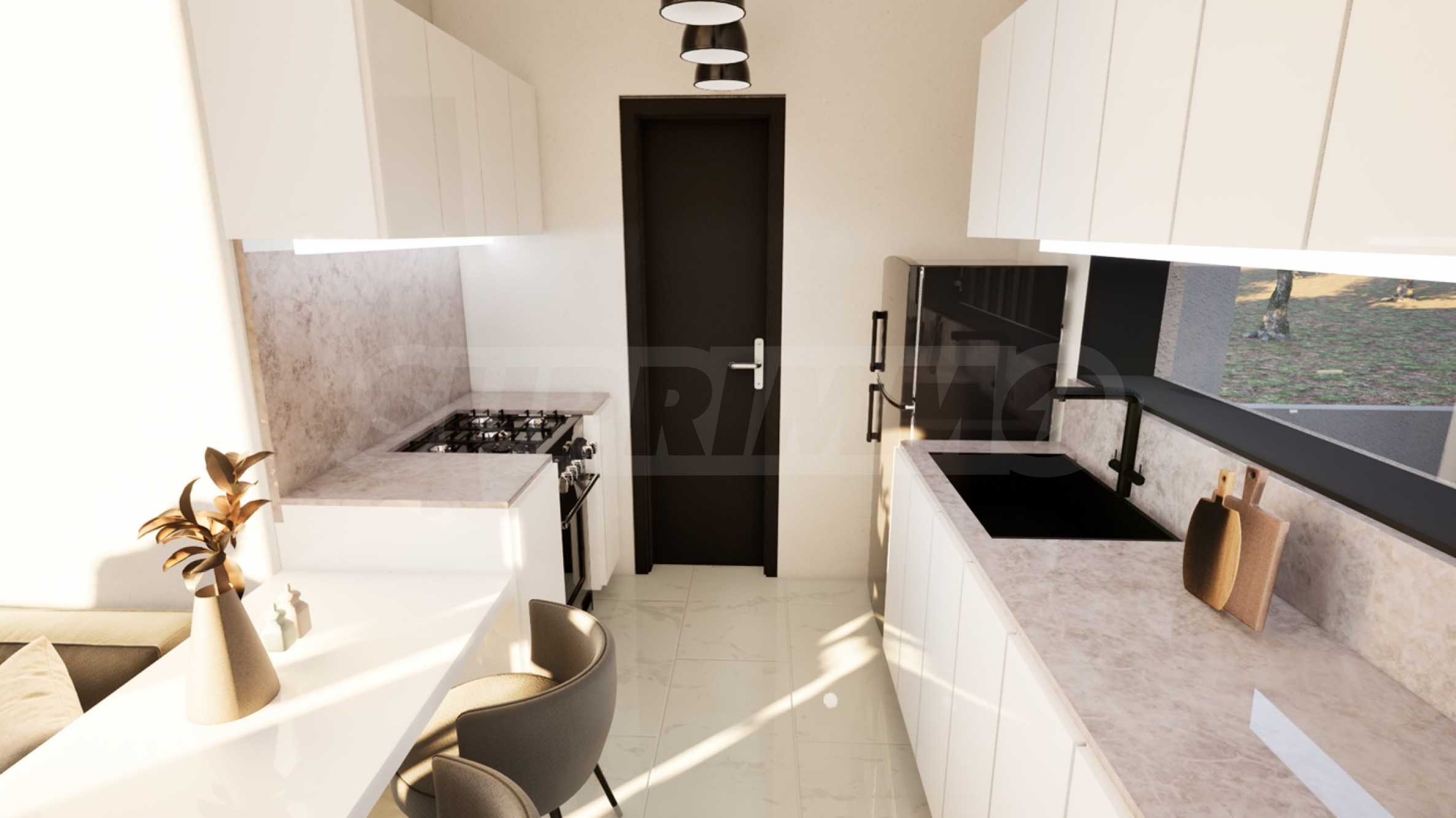 Voll ausgestattete Küche und Badezimmer