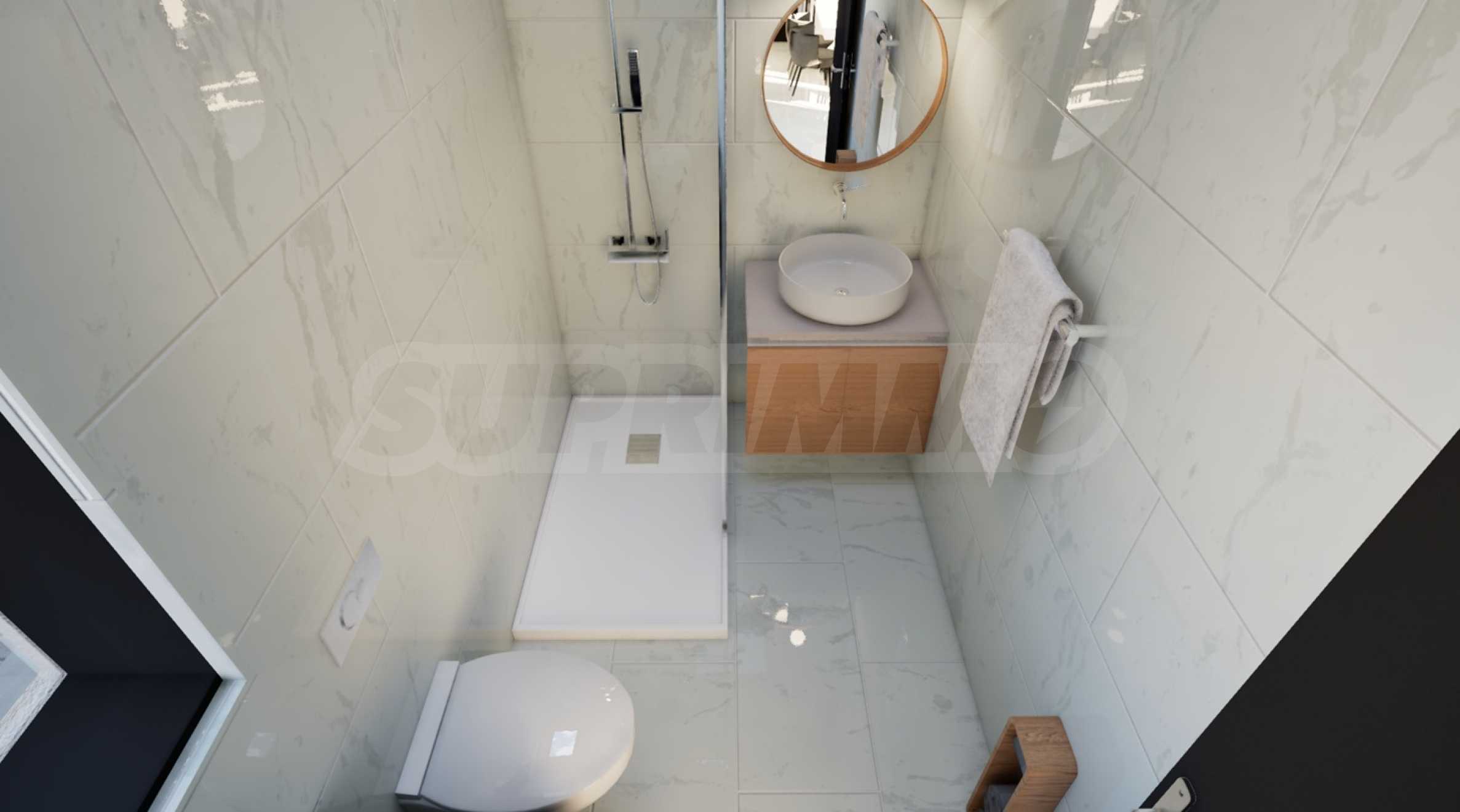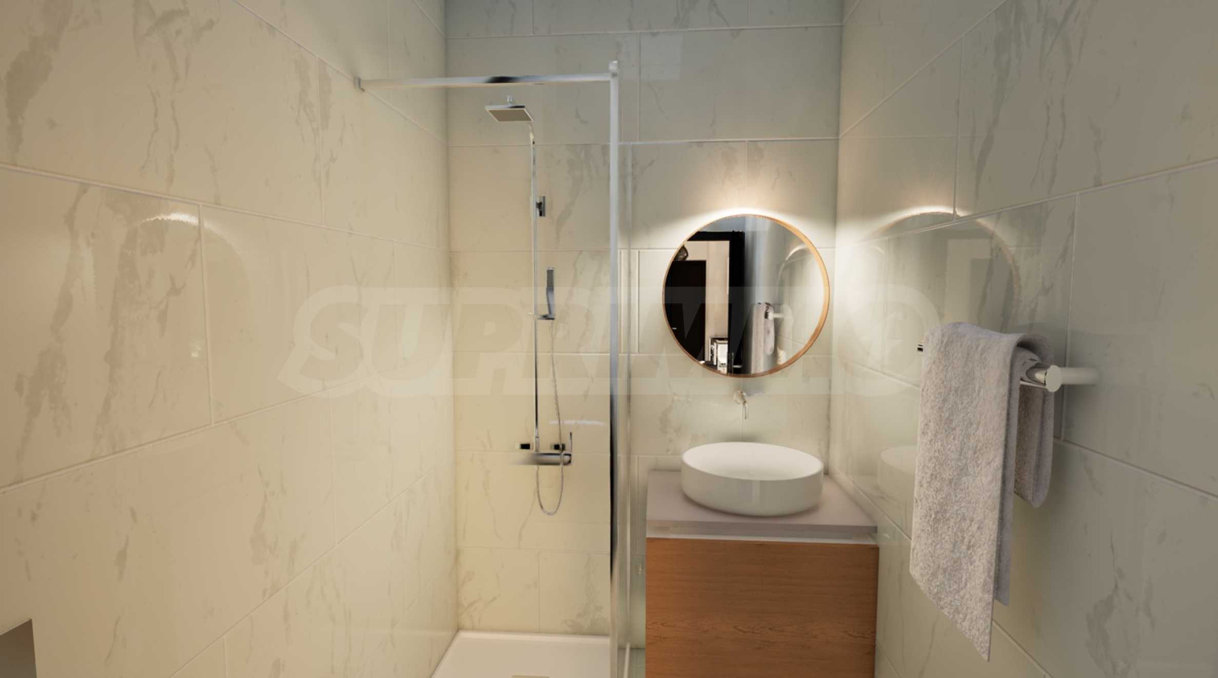 Voll ausgestattete Küche und Badezimmer