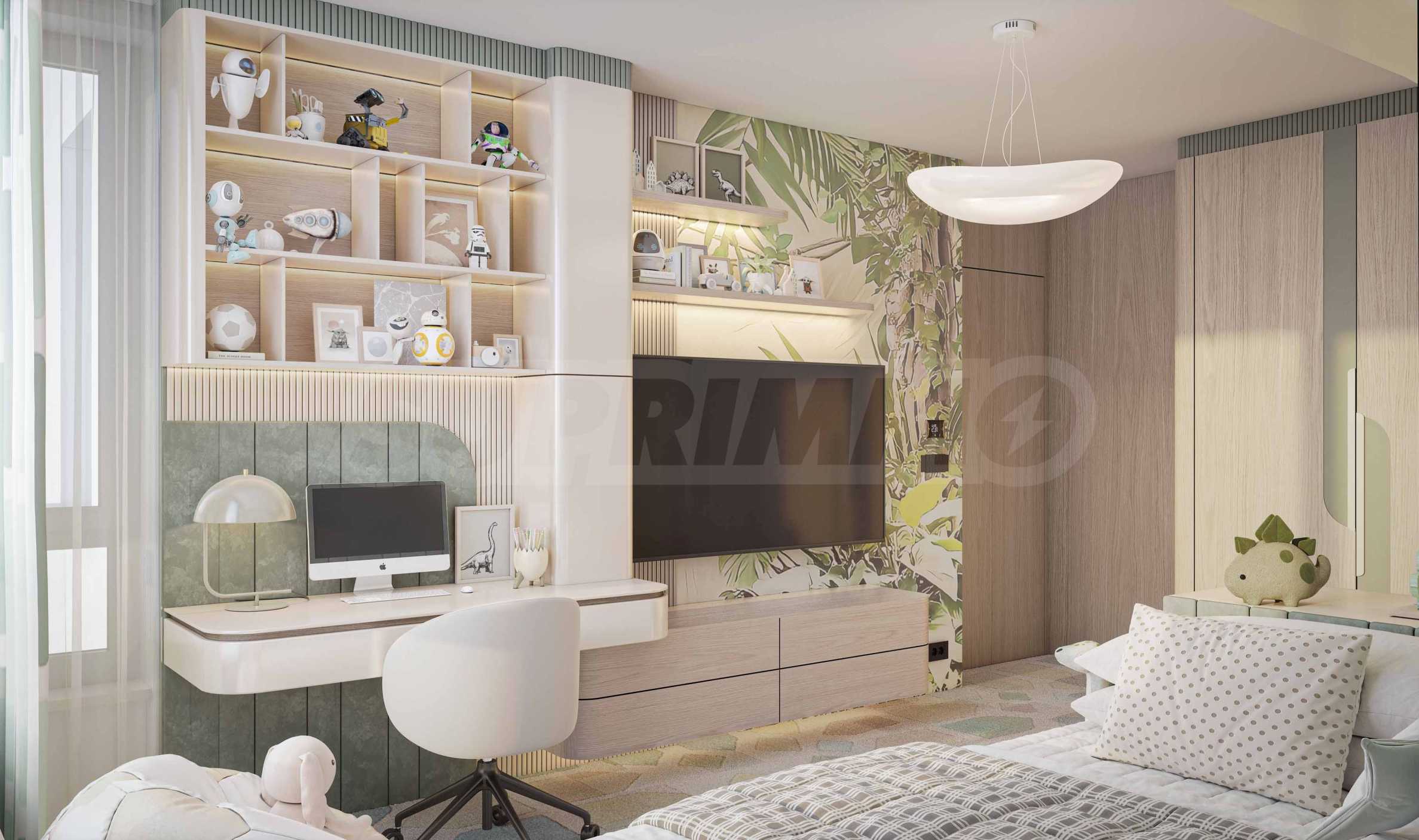 Synerga Premium Complex – ein Wohnraum, inspiriert von Natur und Stadt. Der Komplex bietet eine eigene, üppig gestaltete Parkanlage mit Spazierwegen, ruhigen Ecken zum Entspannen und Bereichen für gemeinsame Familienzeit in der Natur. Diese Grünfläche schafft Ruhe und Sicherheit und macht das Zuhause so zu einem Ort der Harmonie mit der Natur.