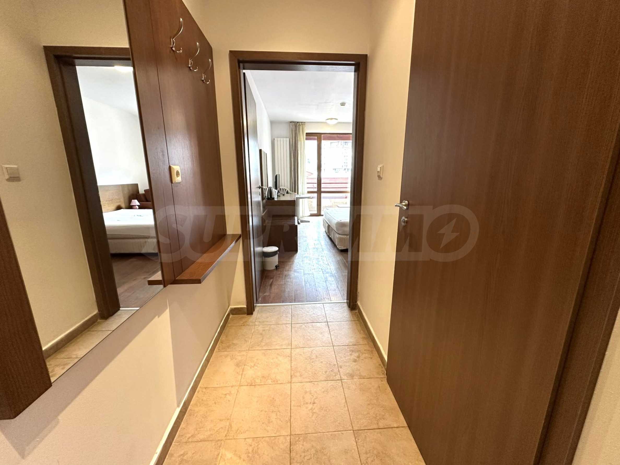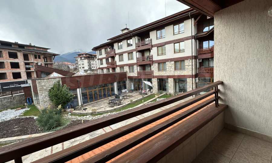 Das Apartment bietet einen Blick auf den Innenhof der Anlage und das Pirin-Gebirge.