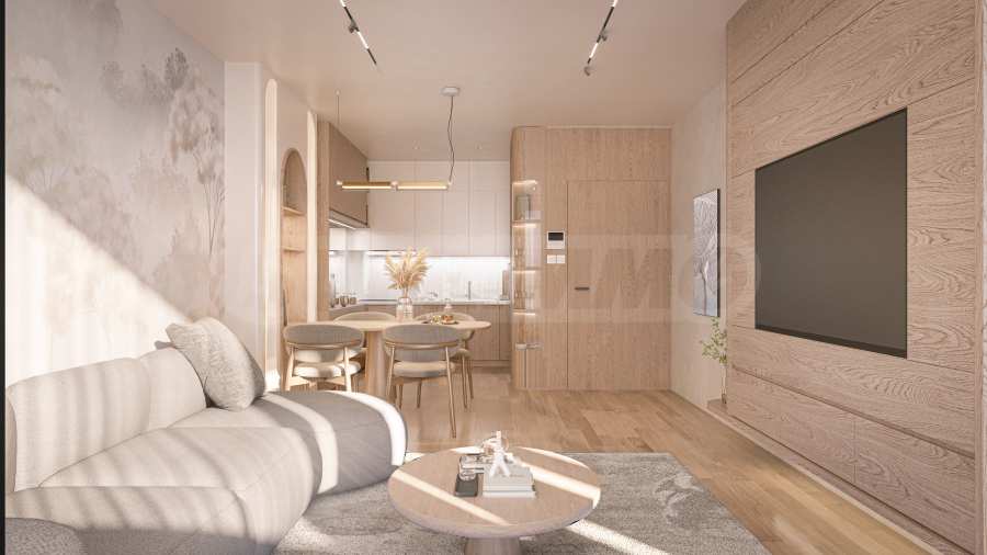 Die Wohnung Nr. A1503 befindet sich im 15. Stock und bietet dank ihrer Südausrichtung einen Panoramablick auf die Stadt und das Witoscha-Gebirge. Auf einer Nettofläche von 70,25 m² verteilen sich: Eingangsbereich, Badezimmer/WC, geräumiges Wohnzimmer mit Küche und Essbereich, Schlafzimmer sowie eine Terrasse, die von beiden Zimmern aus zugänglich ist.