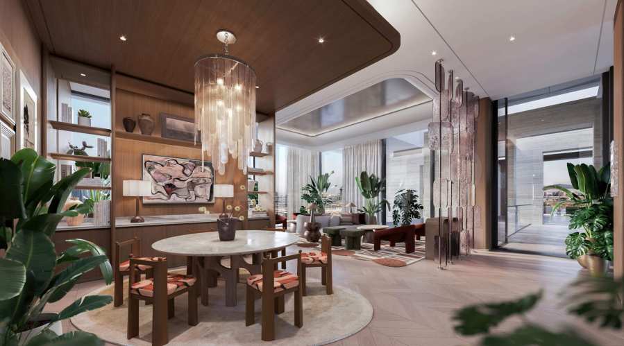 Das Herzstück des Komplexes ist das Clubhaus ein vierstöckiges Gebäude, das ganz den Annehmlichkeiten, der Unterhaltung und dem sozialen Umfeld der Bewohner gewidmet ist. Die Innenräume sind in mehrere Themenbereiche unterteilt: