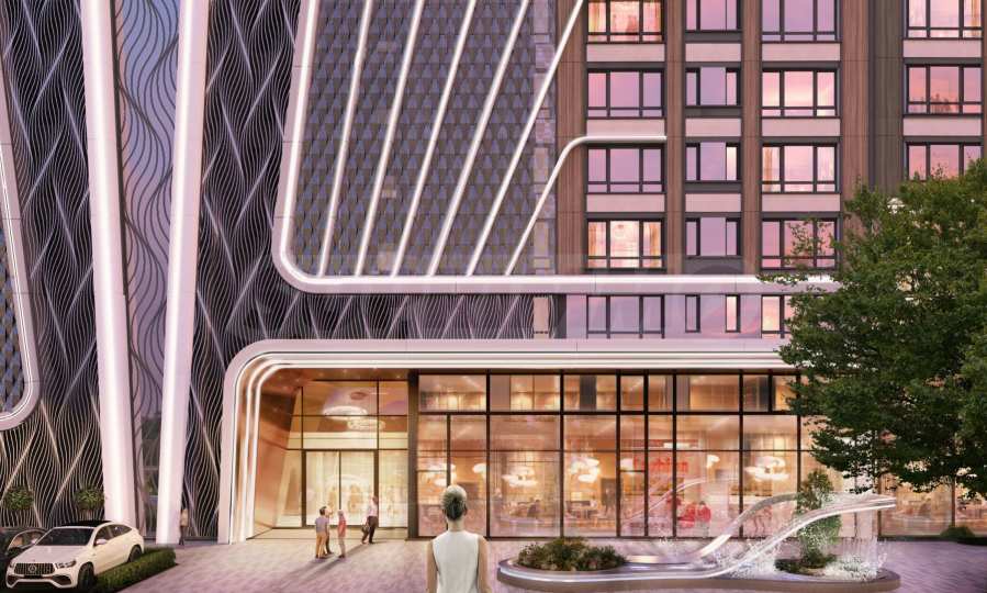 Das Gebäude besticht durch dynamische vertikale und diagonale Linien, die Bewegung und Energie vermitteln. Dadurch wirkt es äußerst modern und lebendig. Die Materialkombination schafft Harmonie zwischen futuristischer Vision und natürlicher Wärme. Der Eingangsbereich mit seinen großen Fenstern und Lichtakzenten ist beeindruckend. Die integrierte LED-Beleuchtung entlang der Fassadenkonturen betont nicht nur die architektonische Form, sondern erzeugt insbesondere nachts einen brillanten und repräsentativen Effekt. So wird das Gebäude zu einem urbanen Wahrzeichen.