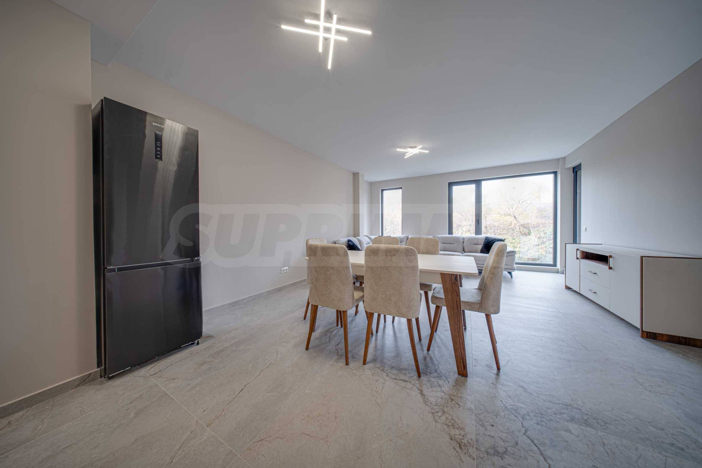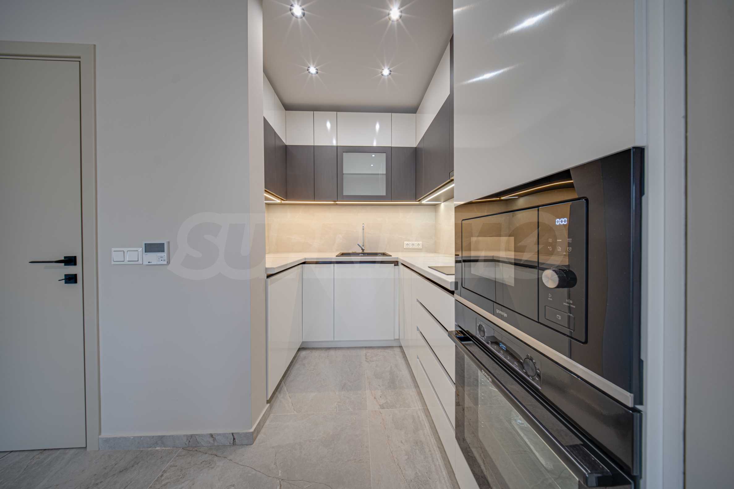 Die Böden bestehen aus hochwertigen Granitfliesen und Naturparkett, die Wände sind mit Latex in neutralen Farben gestrichen, und die hochwertigen Möbel und Geräte sind individuell gestaltet.