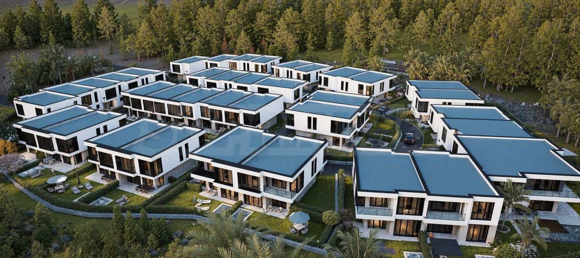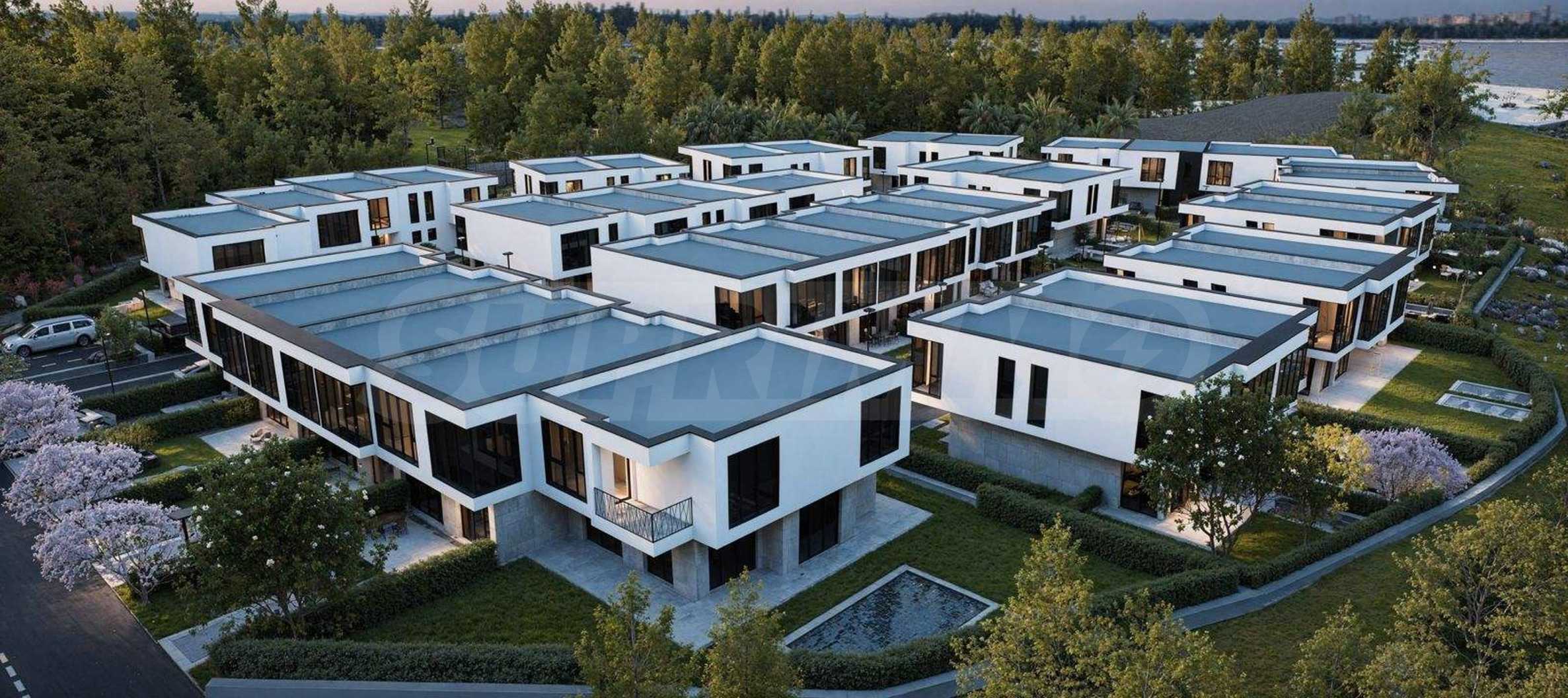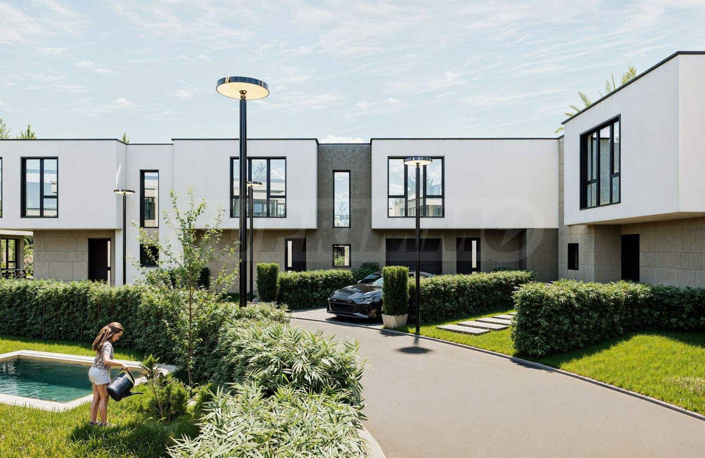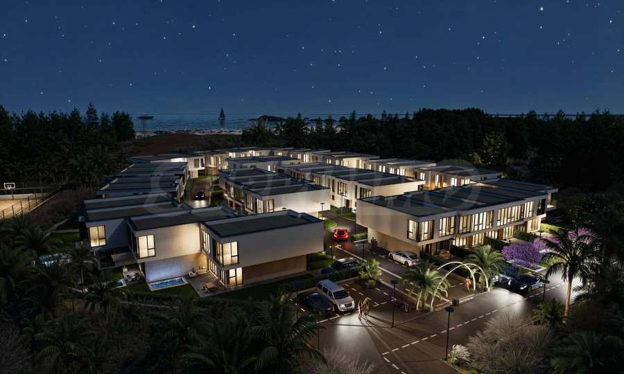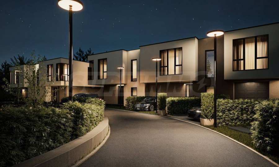 Der Komplex besteht aus 39 zweistöckigen Häusern mit einer Gesamtfläche von 165 m² bis 204 m² und einem privaten Garten von 175 m² bis 211 m². Die Infrastruktur auf dem Gelände ist vollständig ausgebaut: asphaltierte Straßen, Gehwege und Straßenbeleuchtung, Videoüberwachung der Gemeinschaftsbereiche sowie ein Internetmodul zur Fernzugriffskontrolle mit individuellem Zugangscode für jeden Eigentümer.