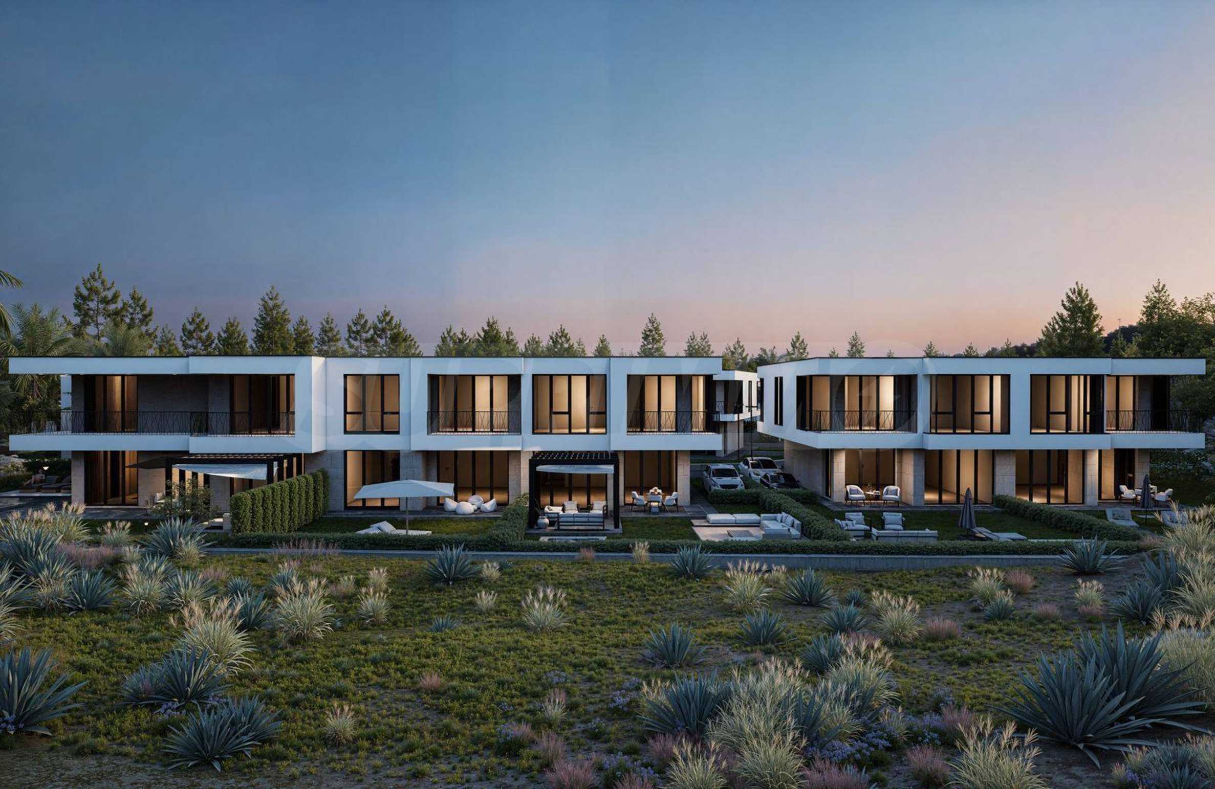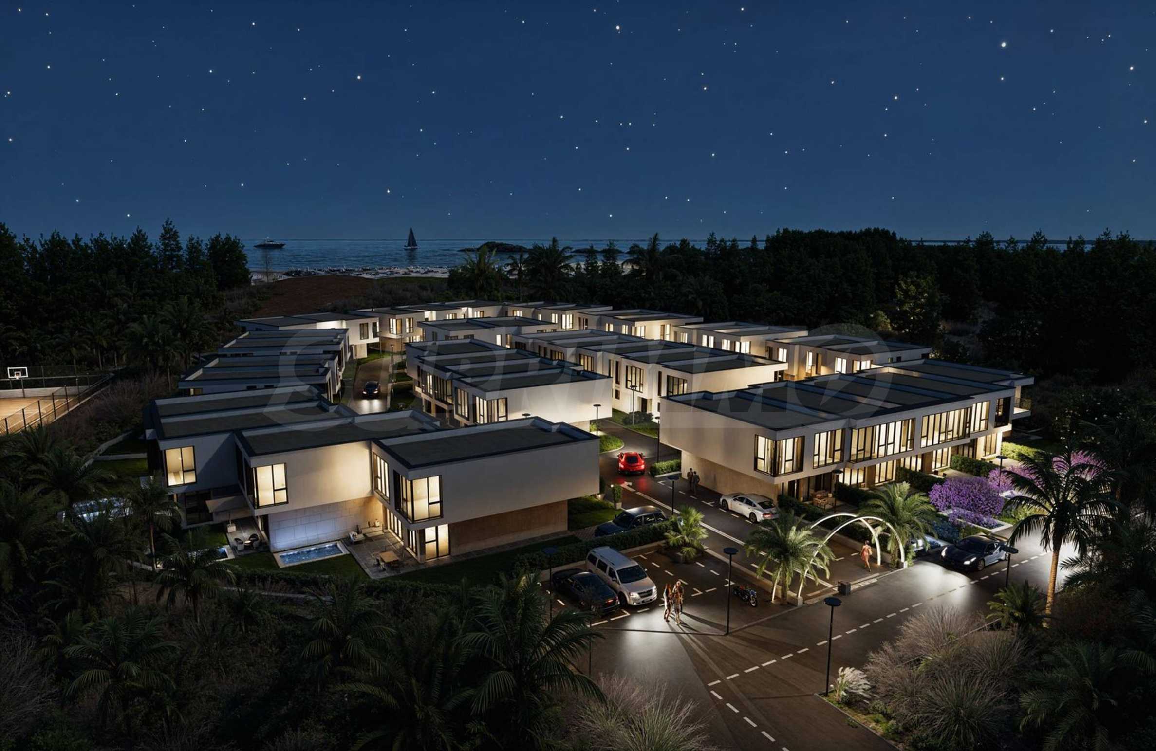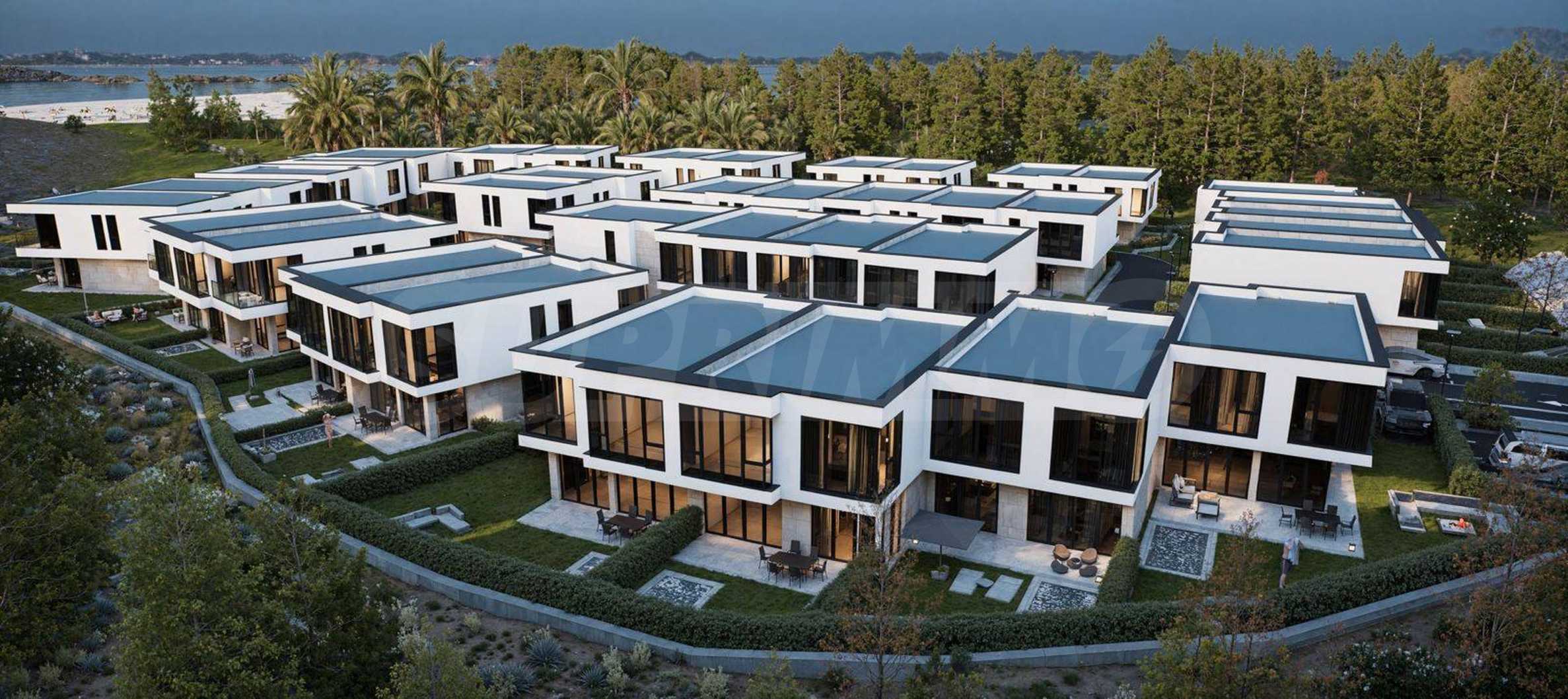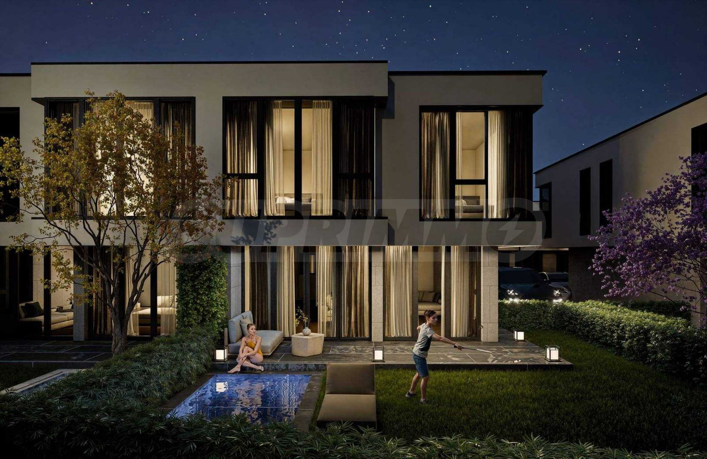 Der Komplex besteht aus 39 zweistöckigen Häusern mit einer Gesamtfläche von 165 m² bis 204 m² und einem privaten Garten von 175 m² bis 211 m². Die Infrastruktur auf dem Gelände ist vollständig ausgebaut: asphaltierte Straßen, Gehwege und Straßenbeleuchtung, Videoüberwachung der Gemeinschaftsbereiche sowie ein Internetmodul zur Fernzugriffskontrolle mit individuellem Zugangscode für jeden Eigentümer.