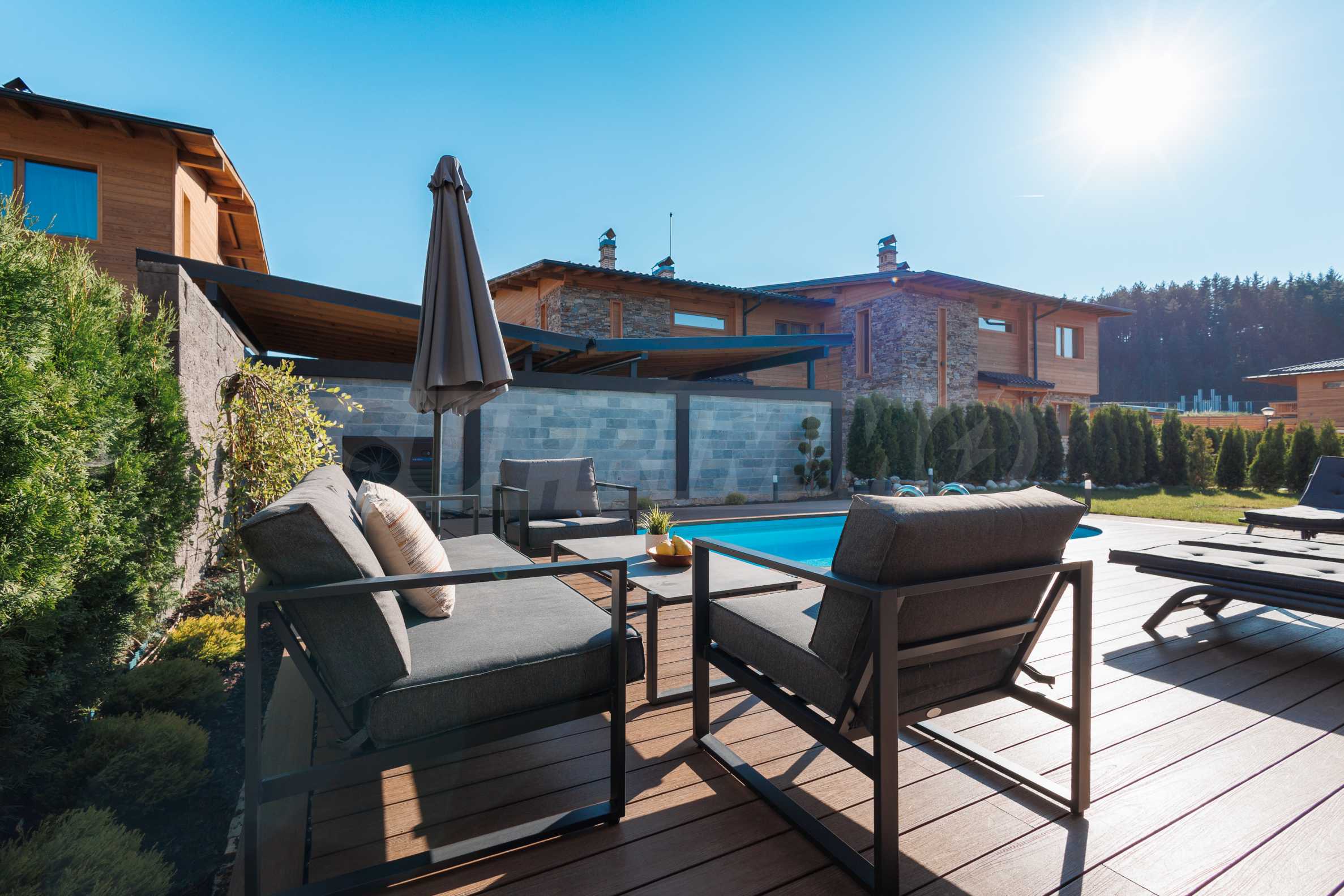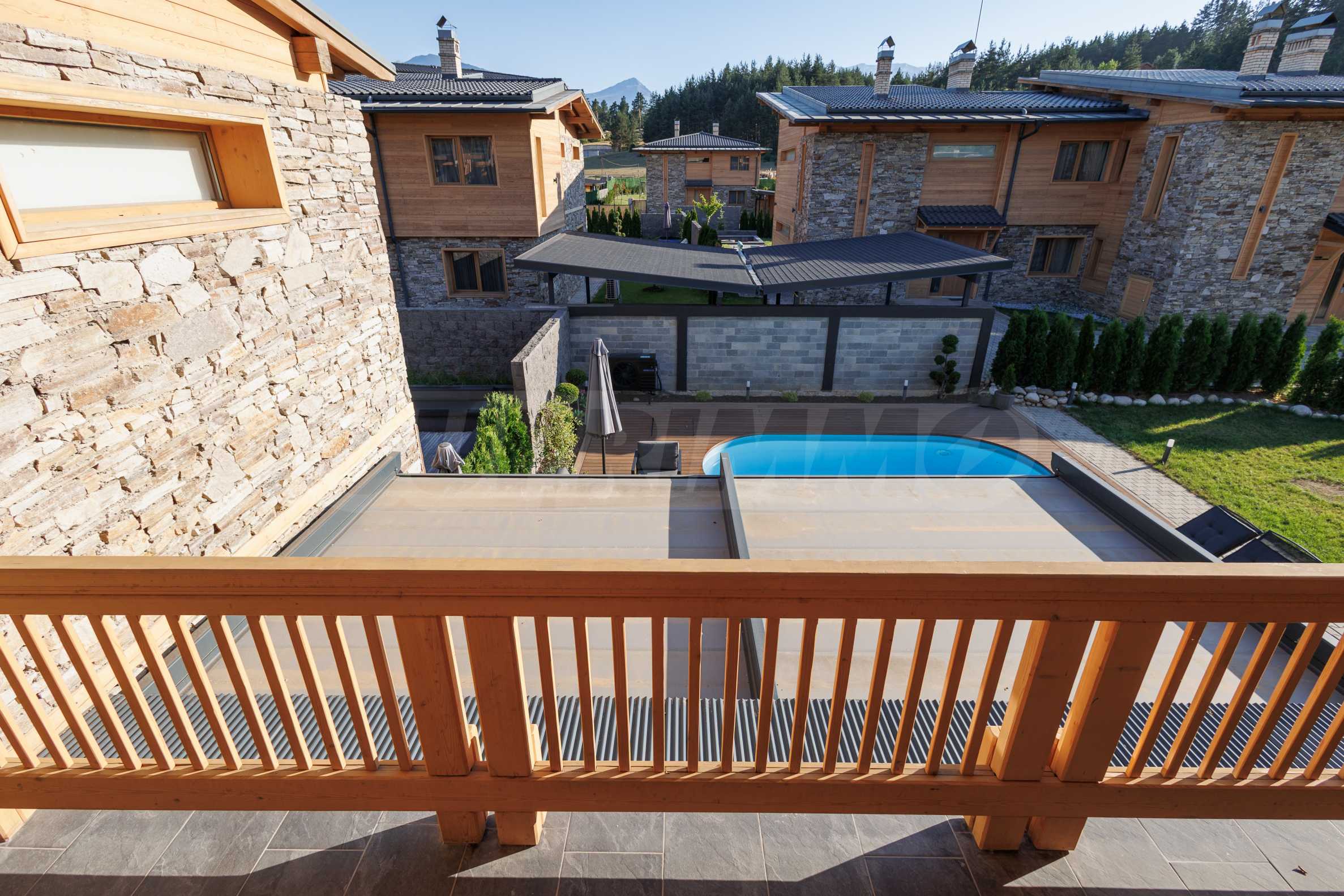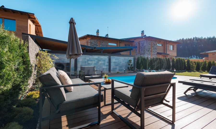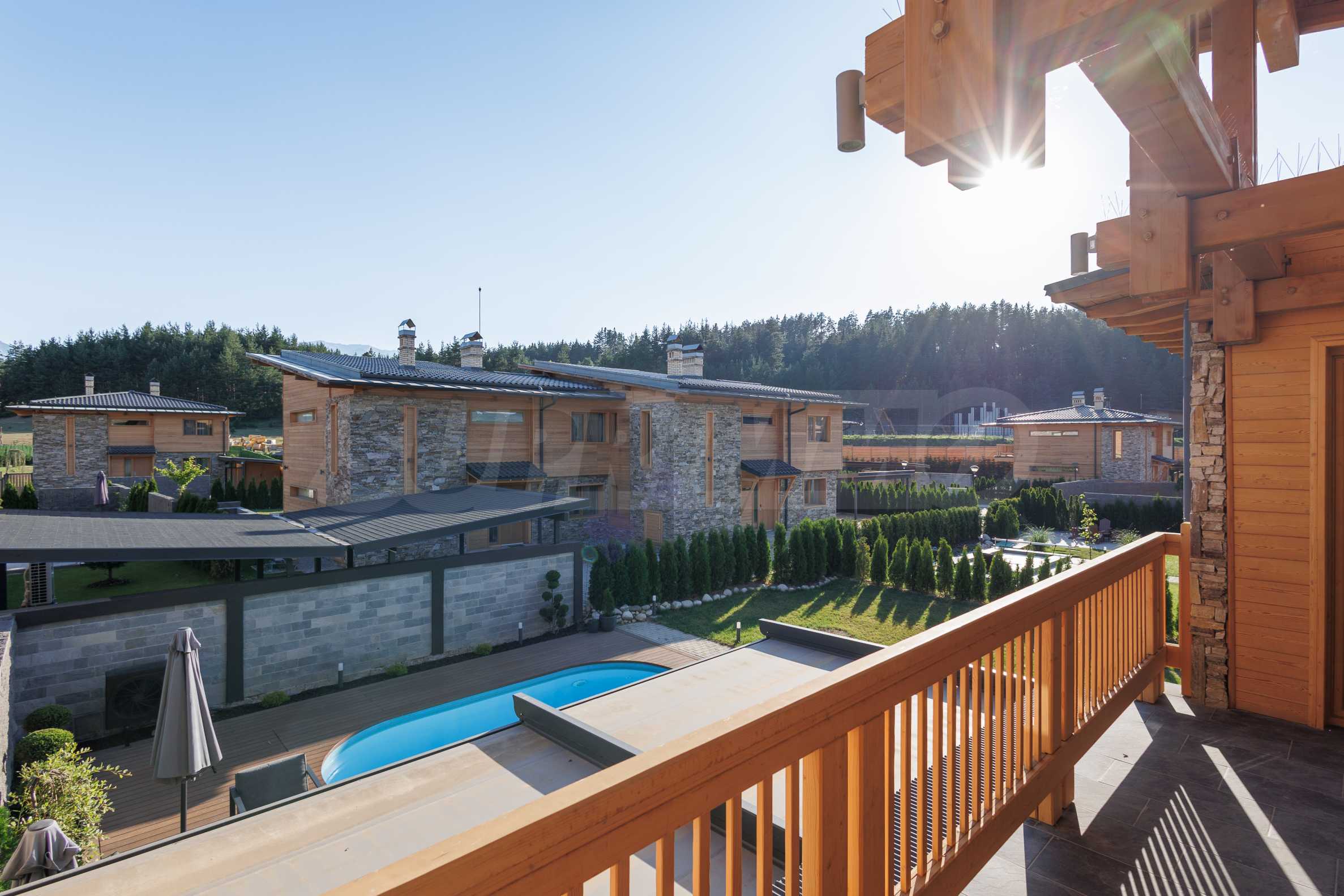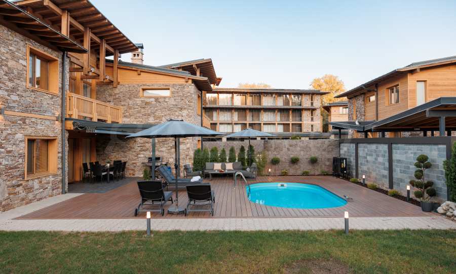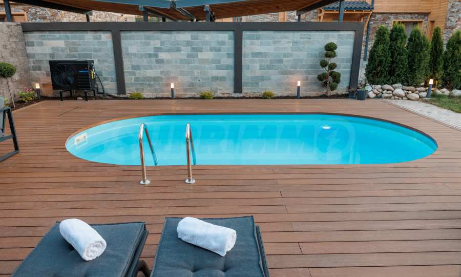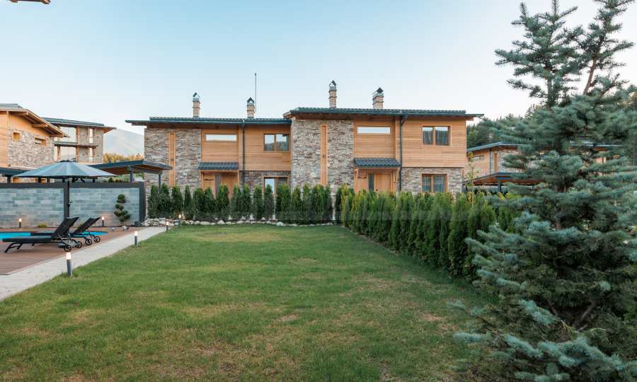 Wir präsentieren Ihnen exklusiv zum Verkauf eine äußerst attraktive Immobilie im Dorf Banya – ein freistehendes, möbliertes Haus mit eigenem Landschaftsgarten und Mineralwasserpool, Teil einer gepflegten und beliebten Ferienanlage mit Toranlage, nur wenige Autominuten vom Skigebiet Bansko entfernt.