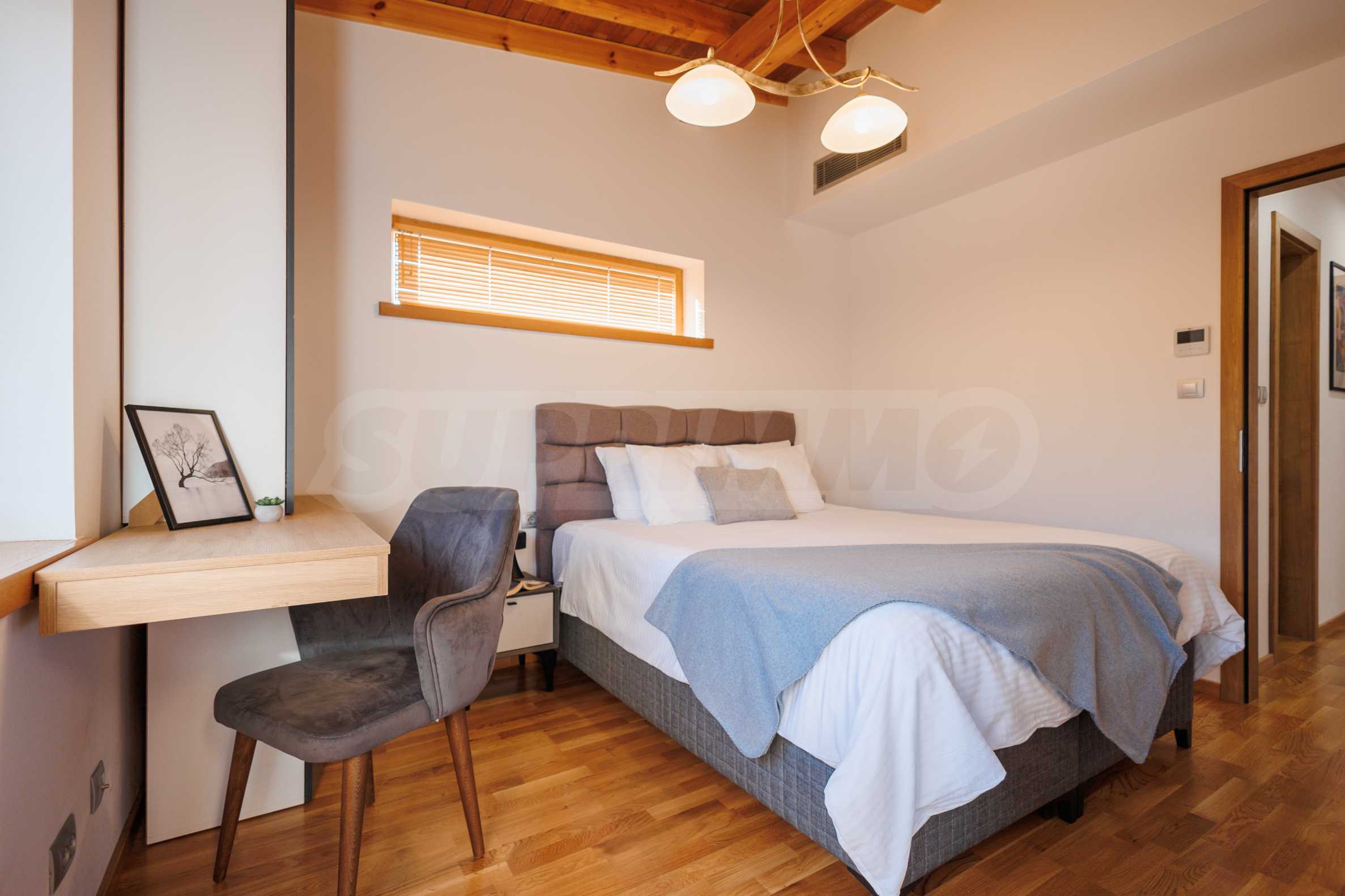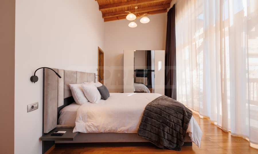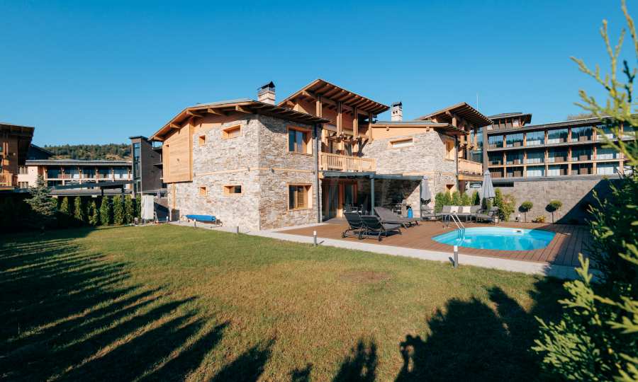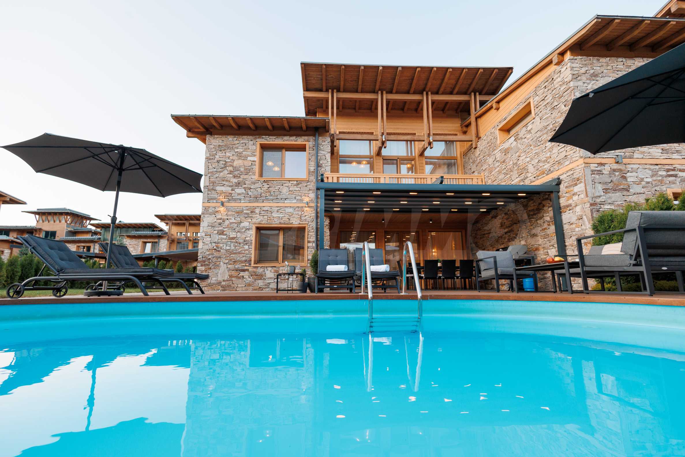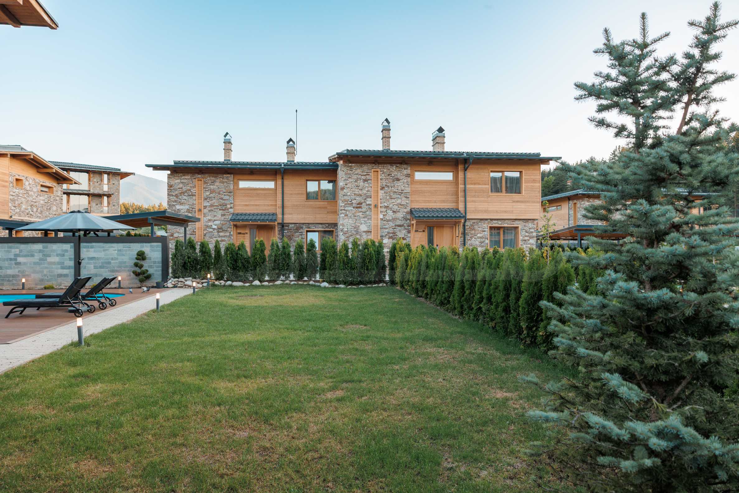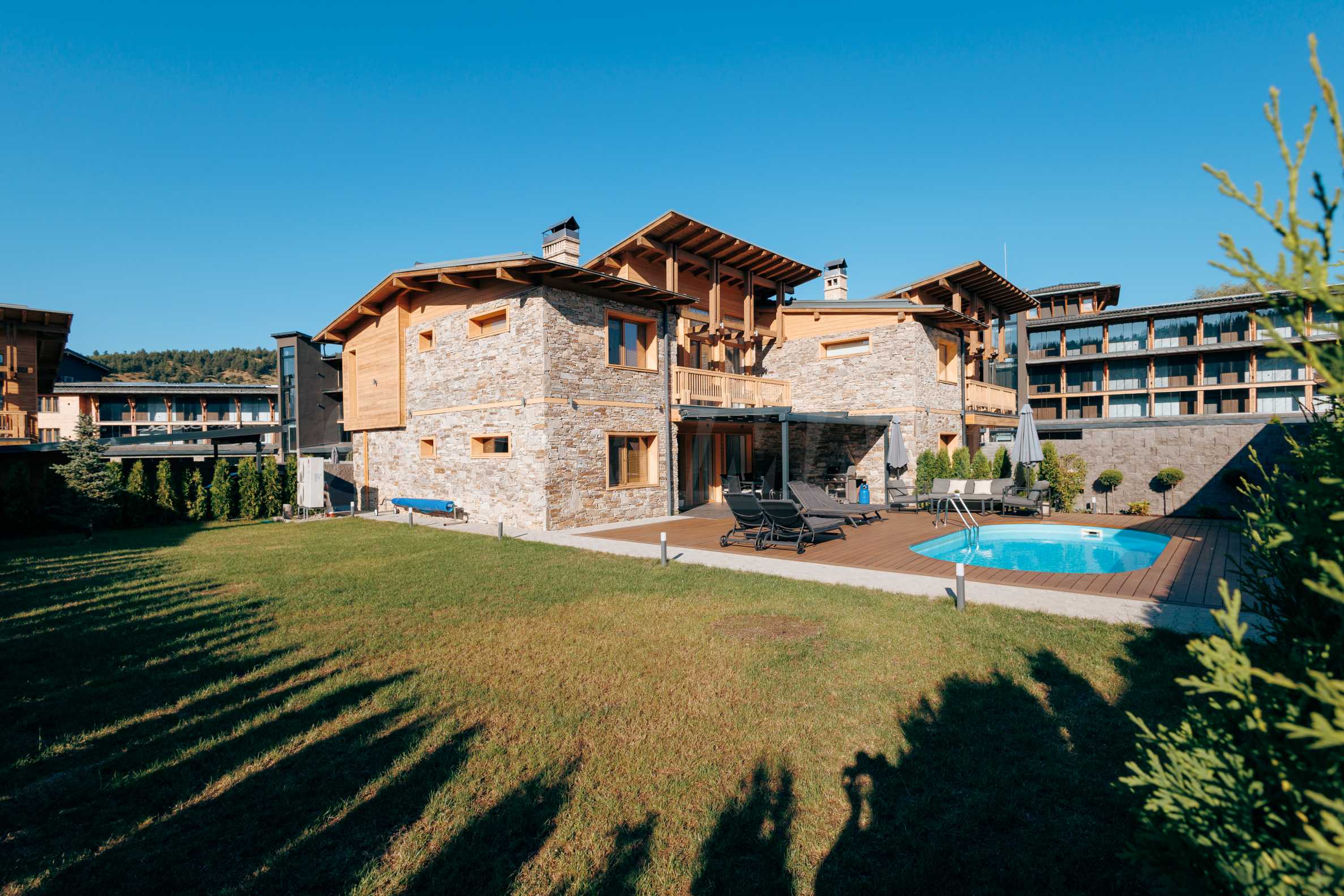 Wir präsentieren Ihnen exklusiv zum Verkauf eine äußerst attraktive Immobilie im Dorf Banya – ein freistehendes, möbliertes Haus mit eigenem Landschaftsgarten und Mineralwasserpool, Teil einer gepflegten und beliebten Ferienanlage mit Toranlage, nur wenige Autominuten vom Skigebiet Bansko entfernt.