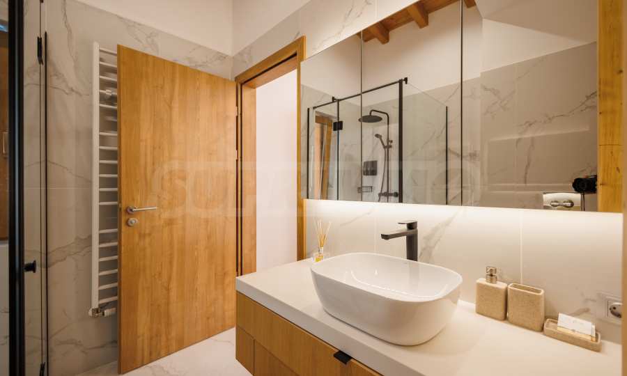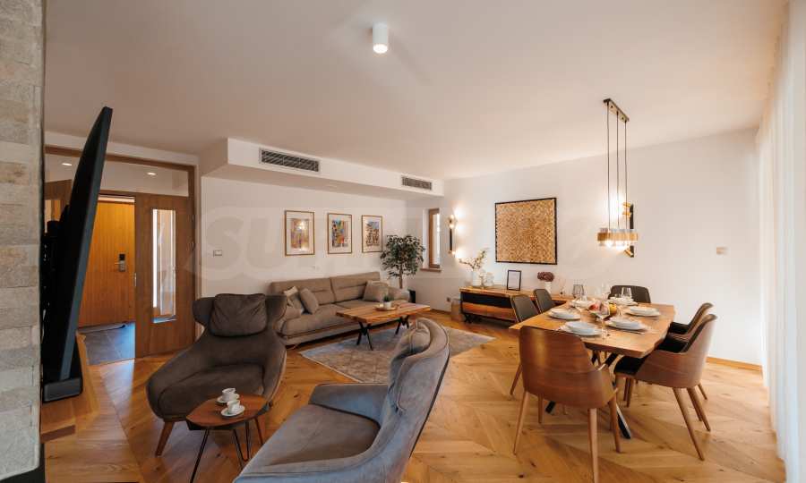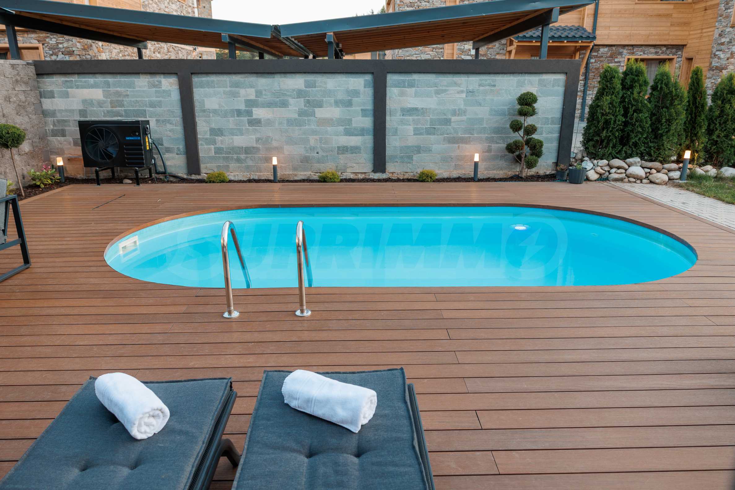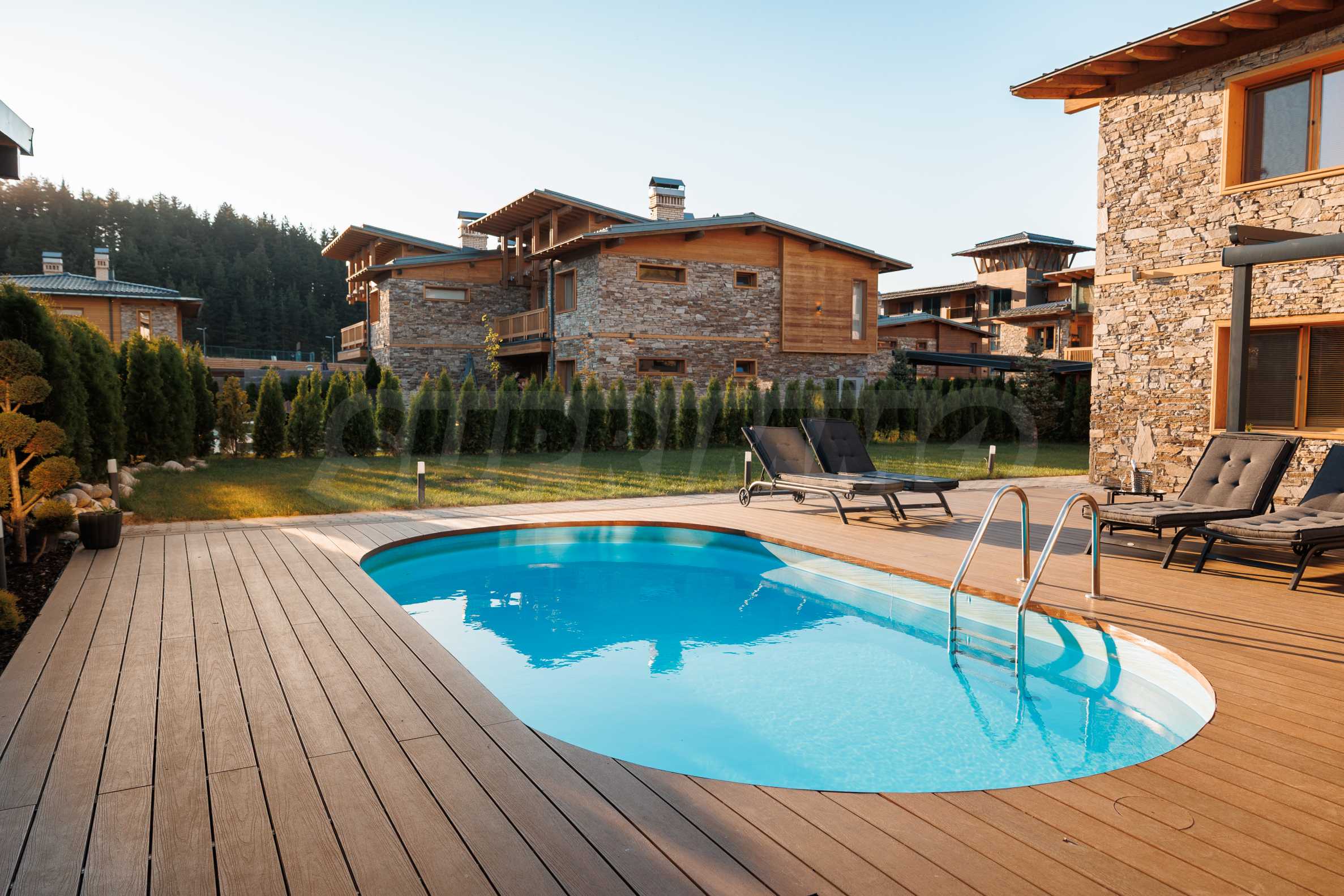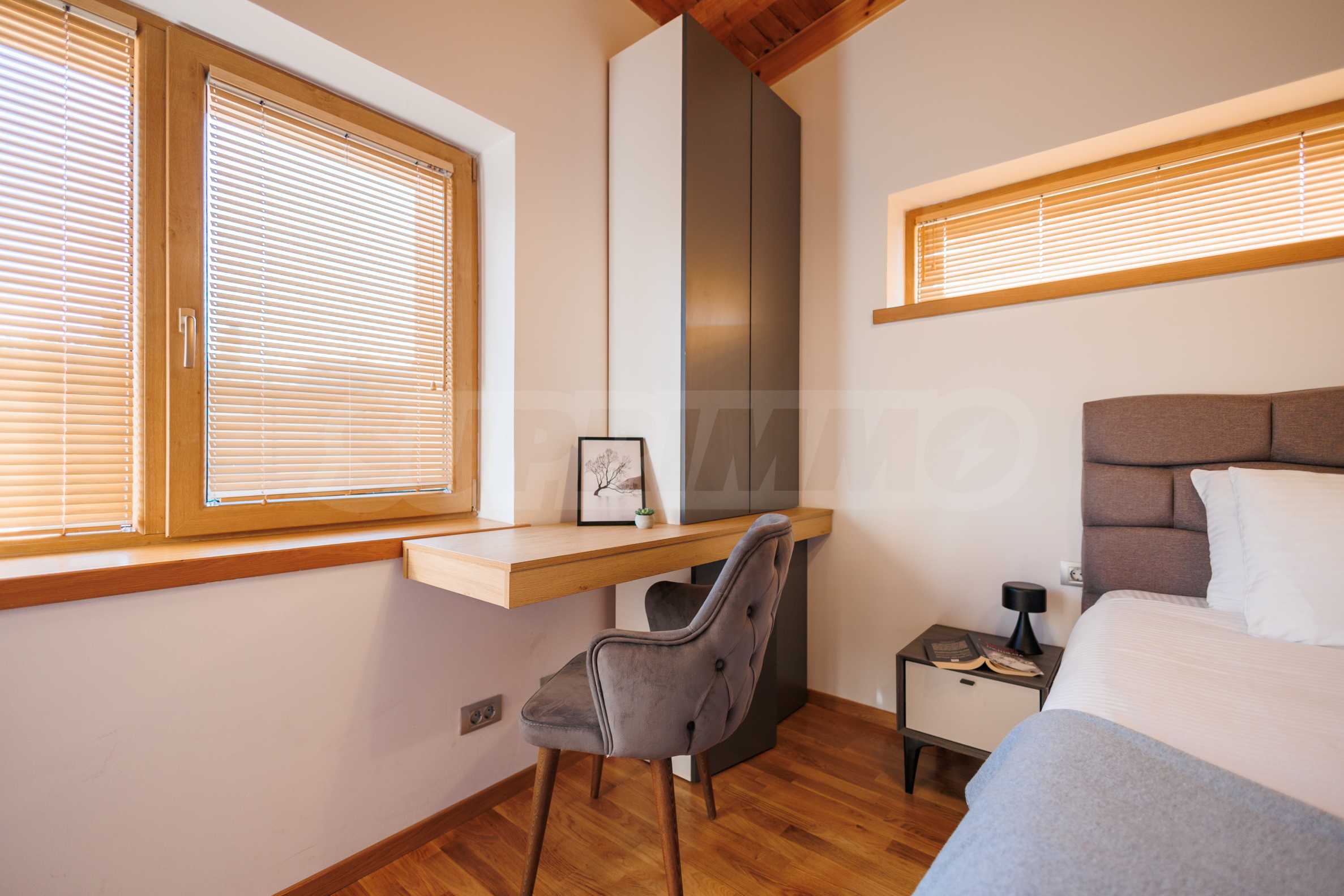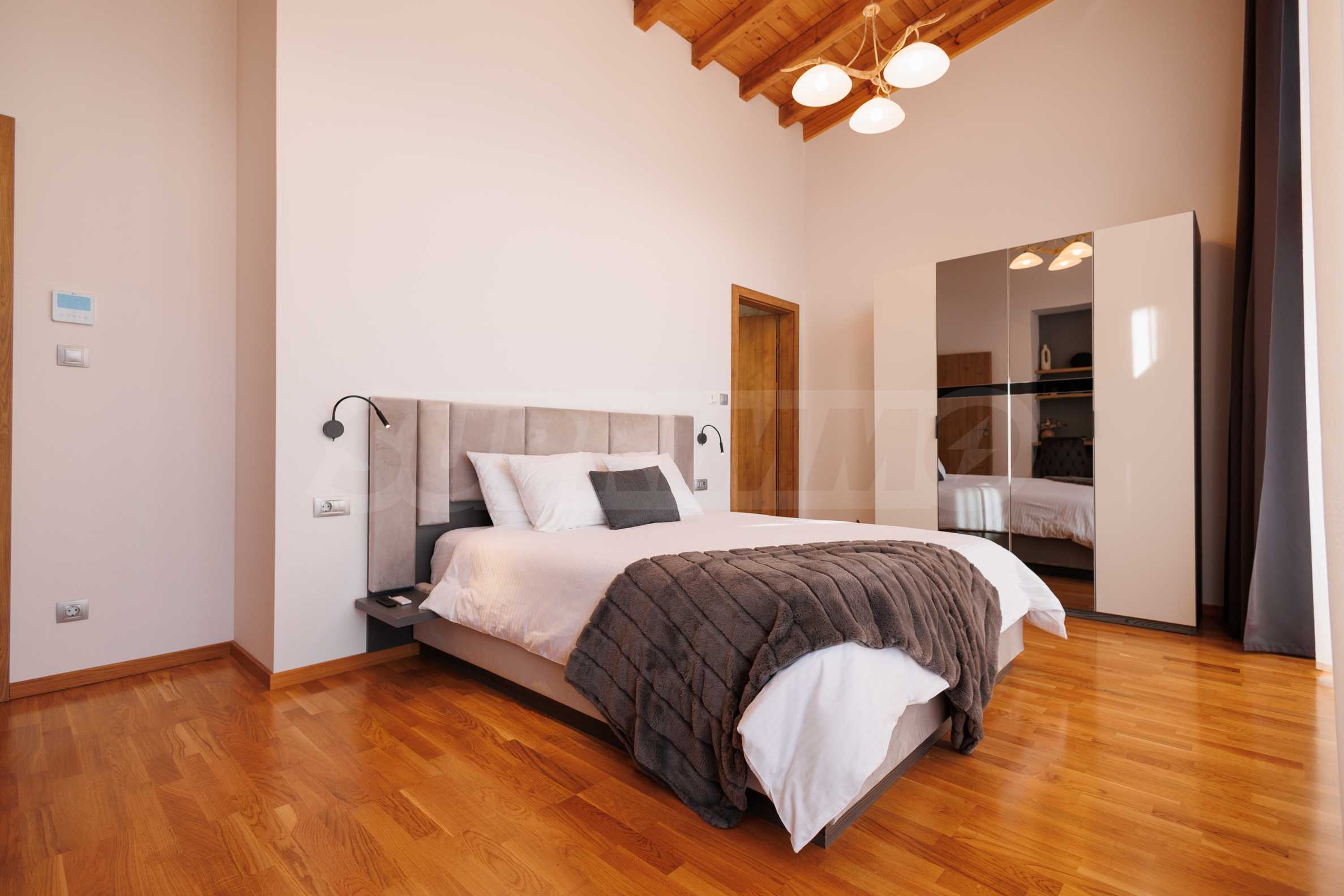 Wir präsentieren Ihnen exklusiv zum Verkauf eine äußerst attraktive Immobilie im Dorf Banya – ein freistehendes, möbliertes Haus mit eigenem Landschaftsgarten und Mineralwasserpool, Teil einer gepflegten und beliebten Ferienanlage mit Toranlage, nur wenige Autominuten vom Skigebiet Bansko entfernt.
