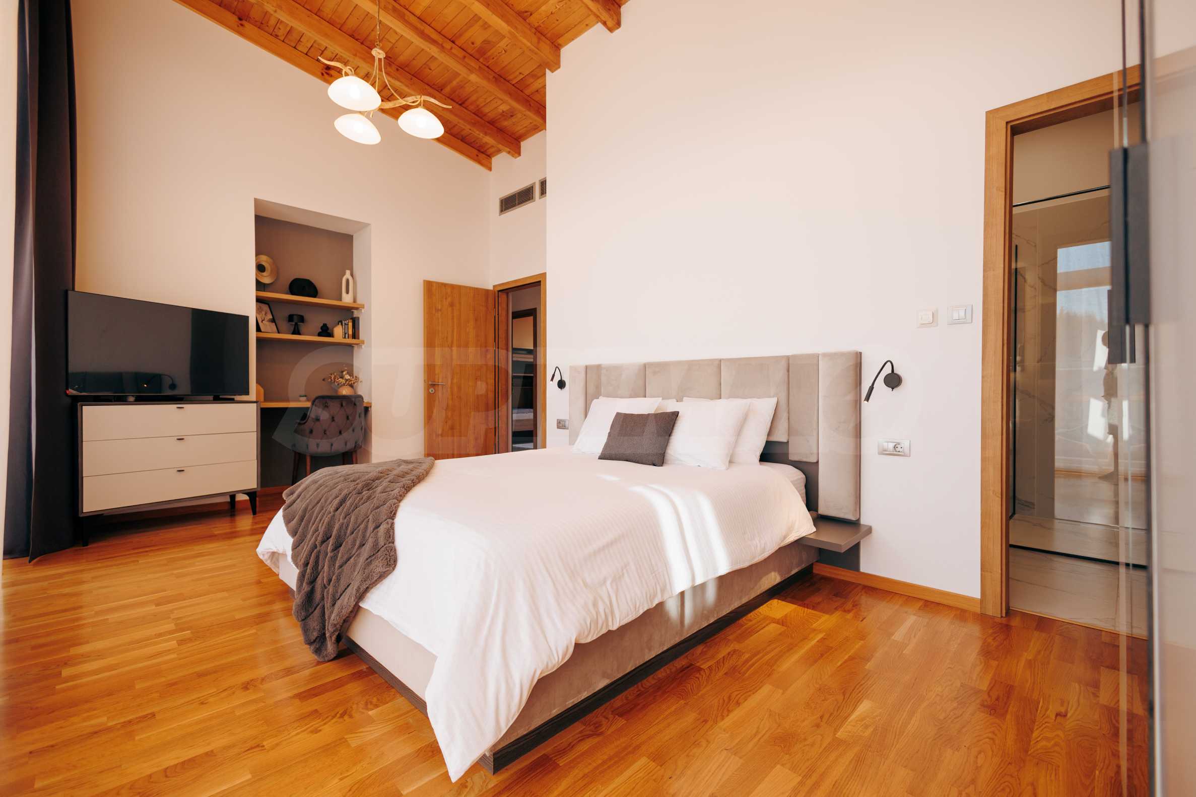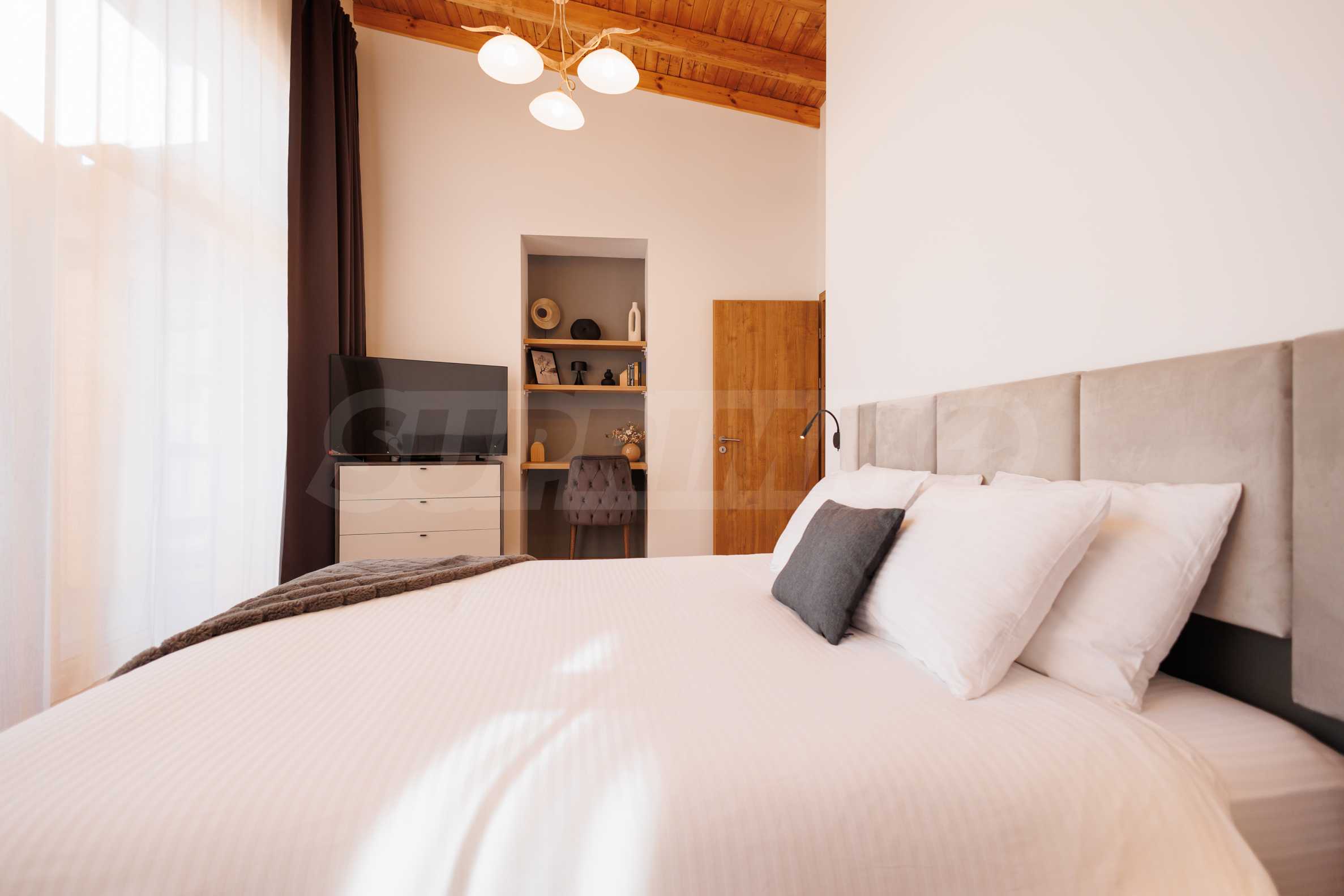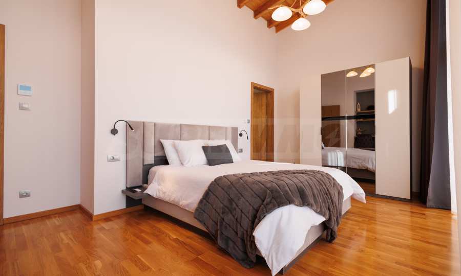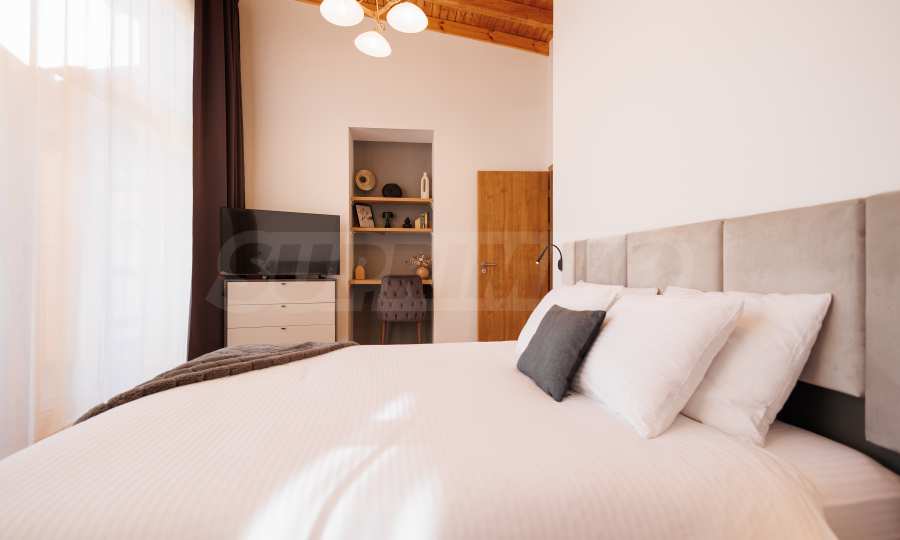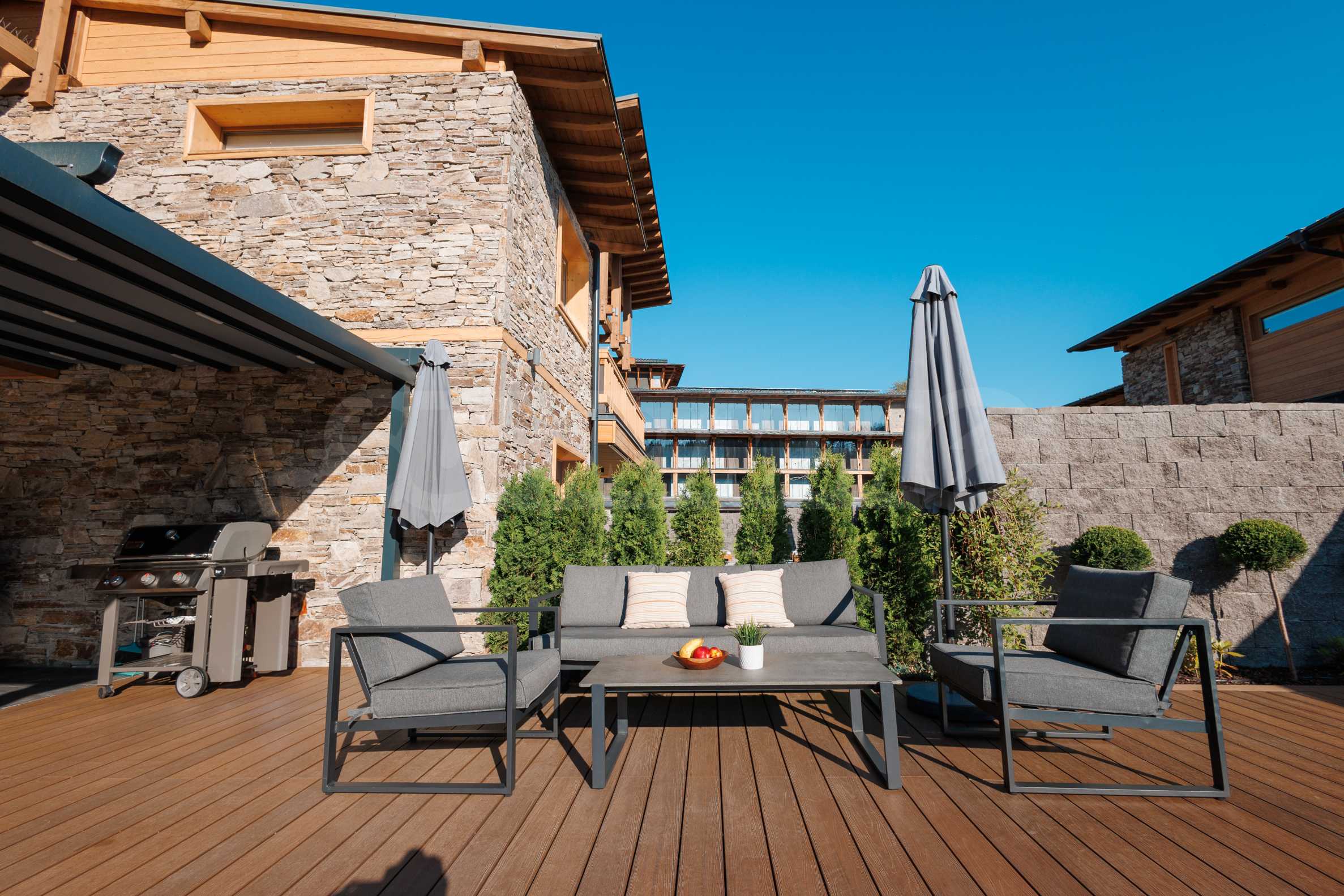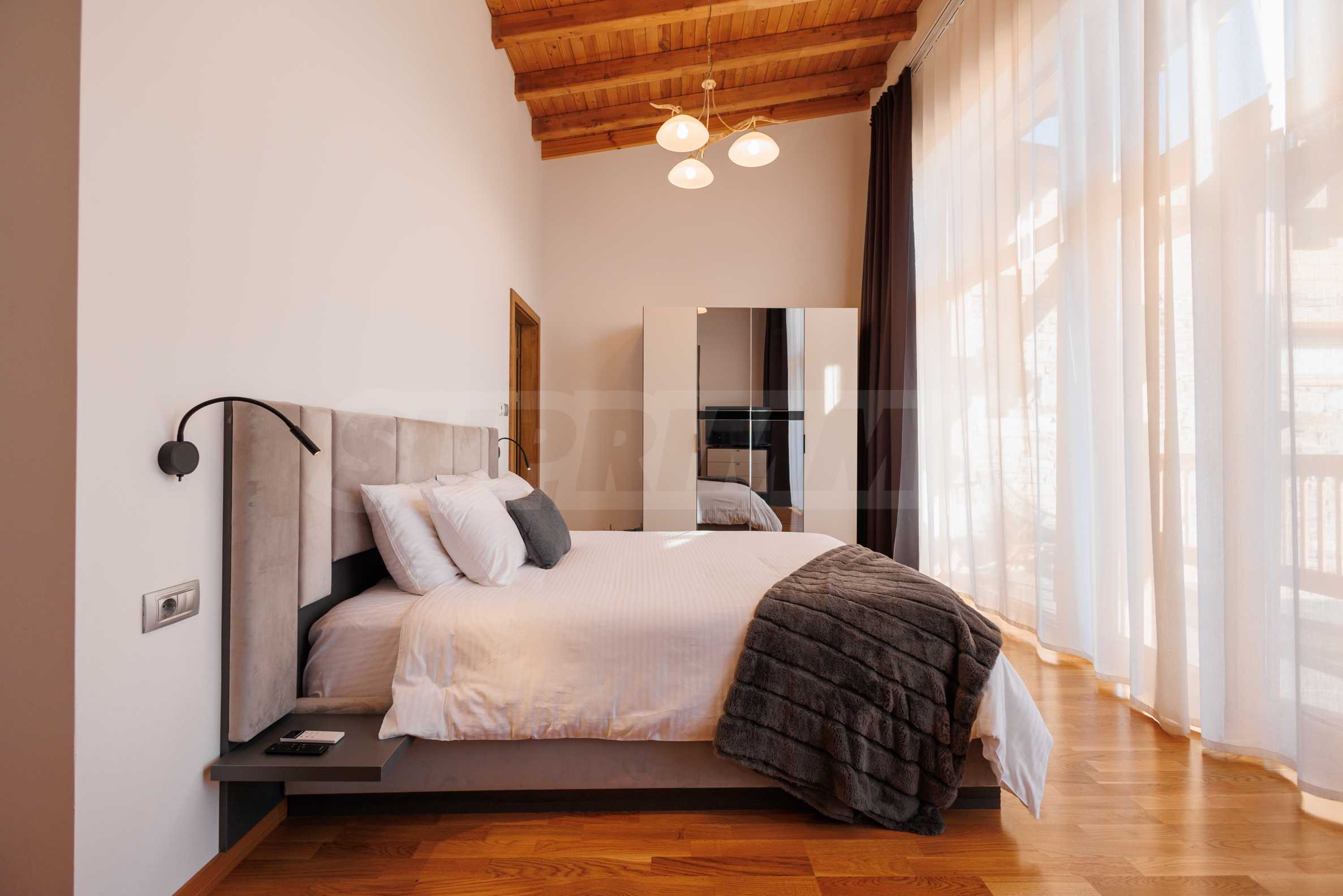 Wir präsentieren Ihnen exklusiv zum Verkauf eine äußerst attraktive Immobilie im Dorf Banya – ein freistehendes, möbliertes Haus mit eigenem Landschaftsgarten und Mineralwasserpool, Teil einer gepflegten und beliebten Ferienanlage mit Toranlage, nur wenige Autominuten vom Skigebiet Bansko entfernt.